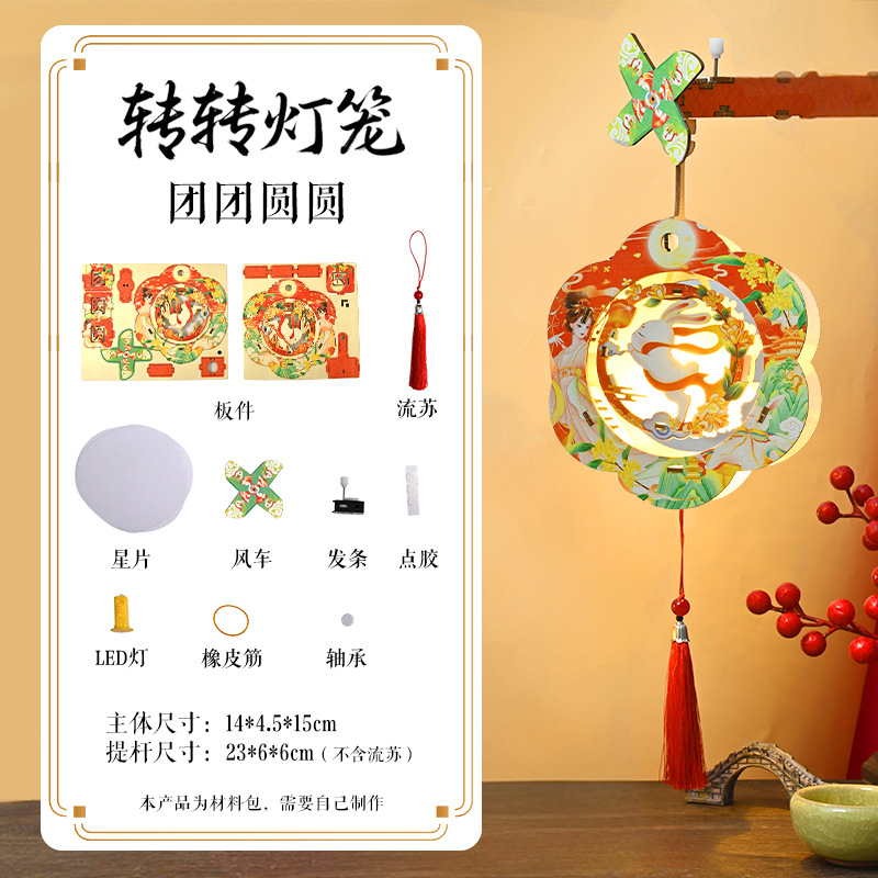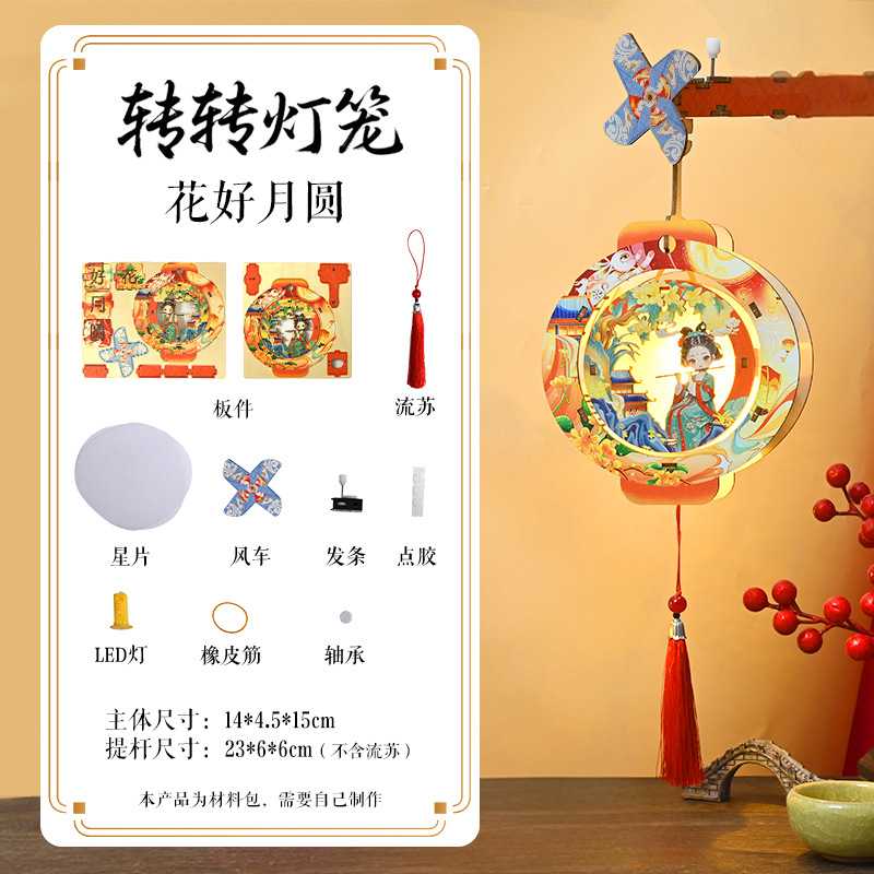 元宵节马年转花灯笼手工diy材料春节新年diy花灯儿童手提发光风车