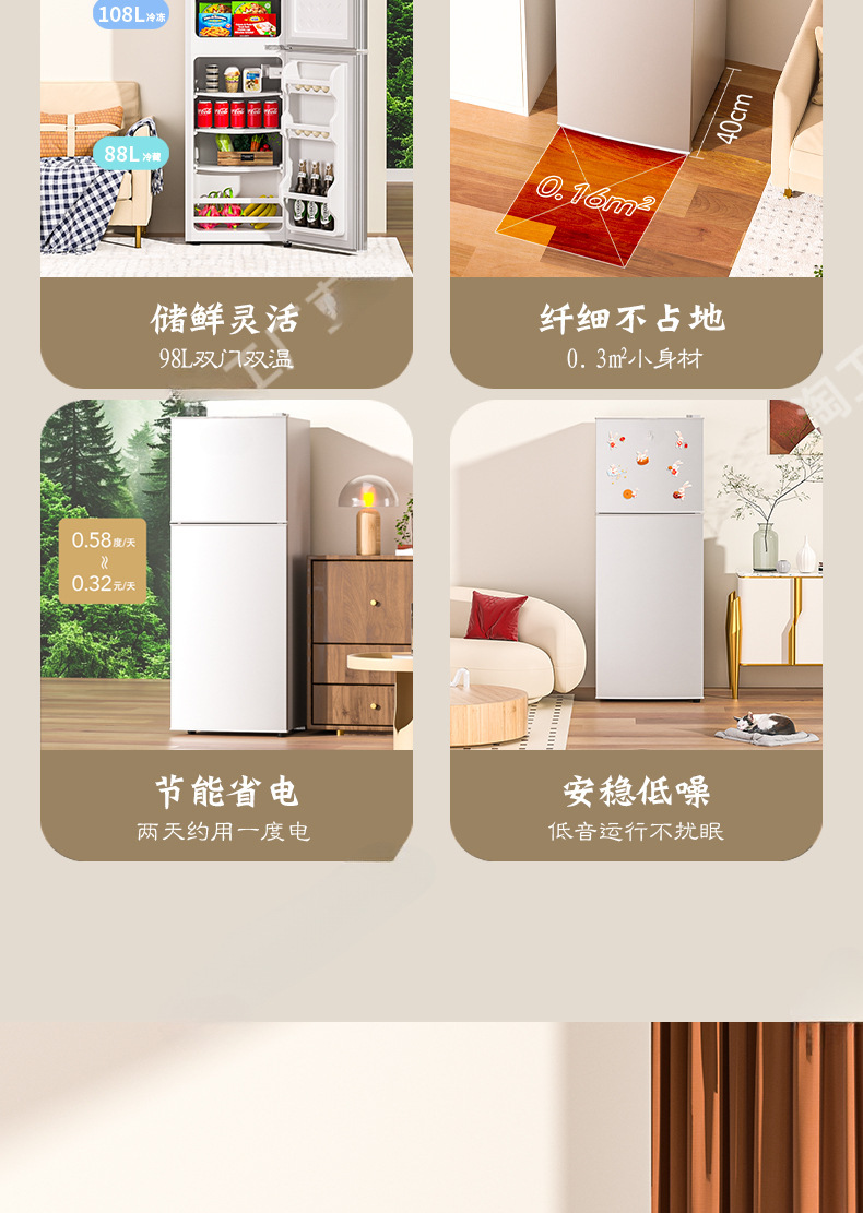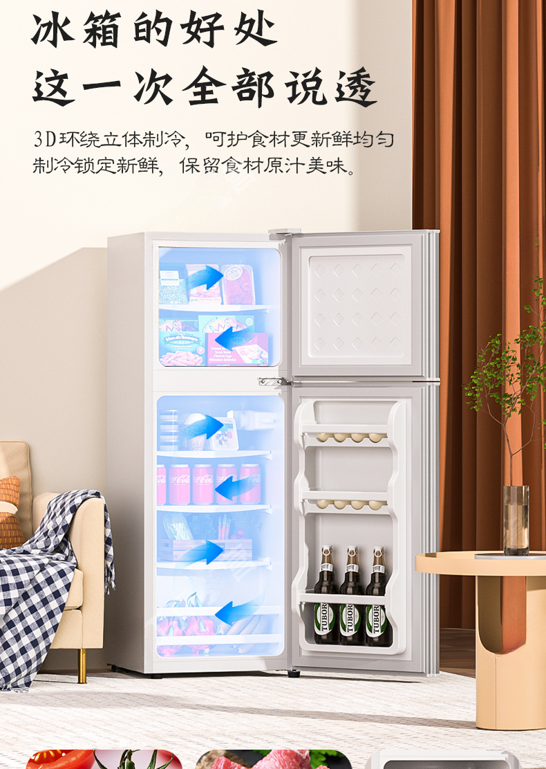 冰箱一级能效小冰箱家用小型租房宿舍迷你省电办公室双开门电冰箱