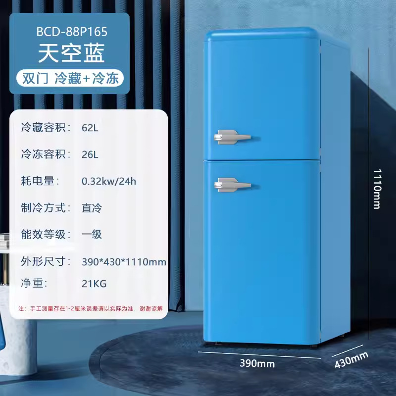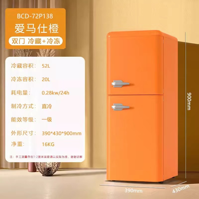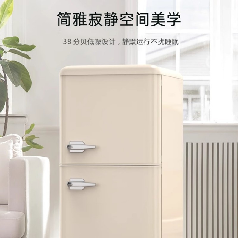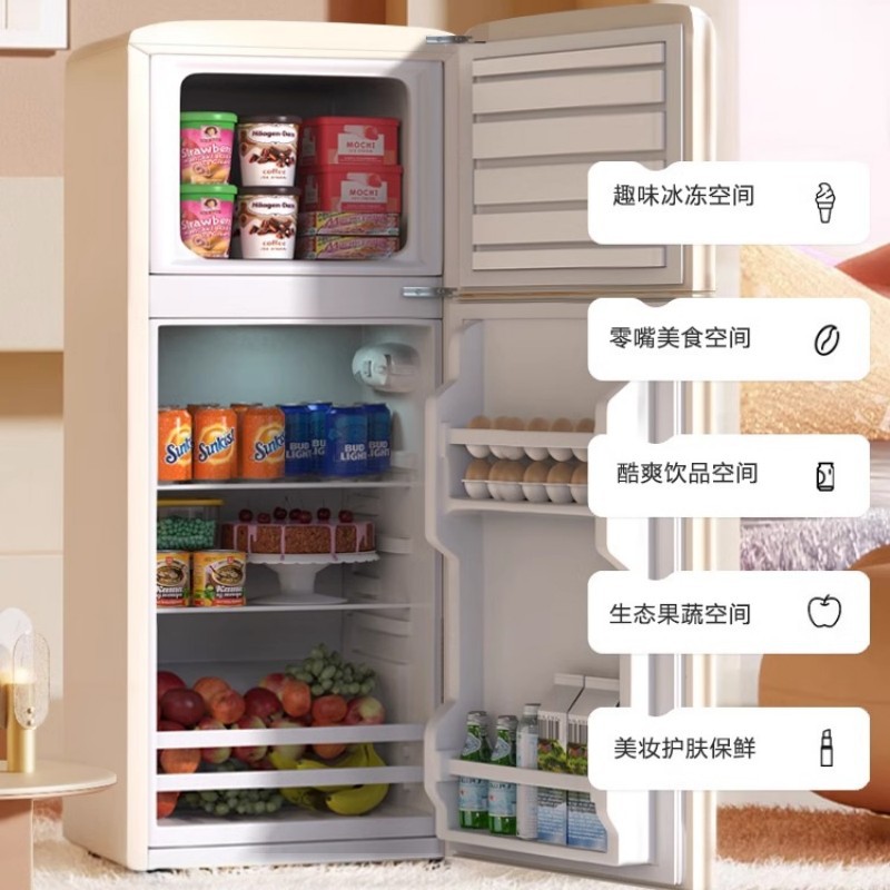 跨境冰箱复古中小型家用出租房节能轻音双开门冷藏冷冻宿舍小冰柜
