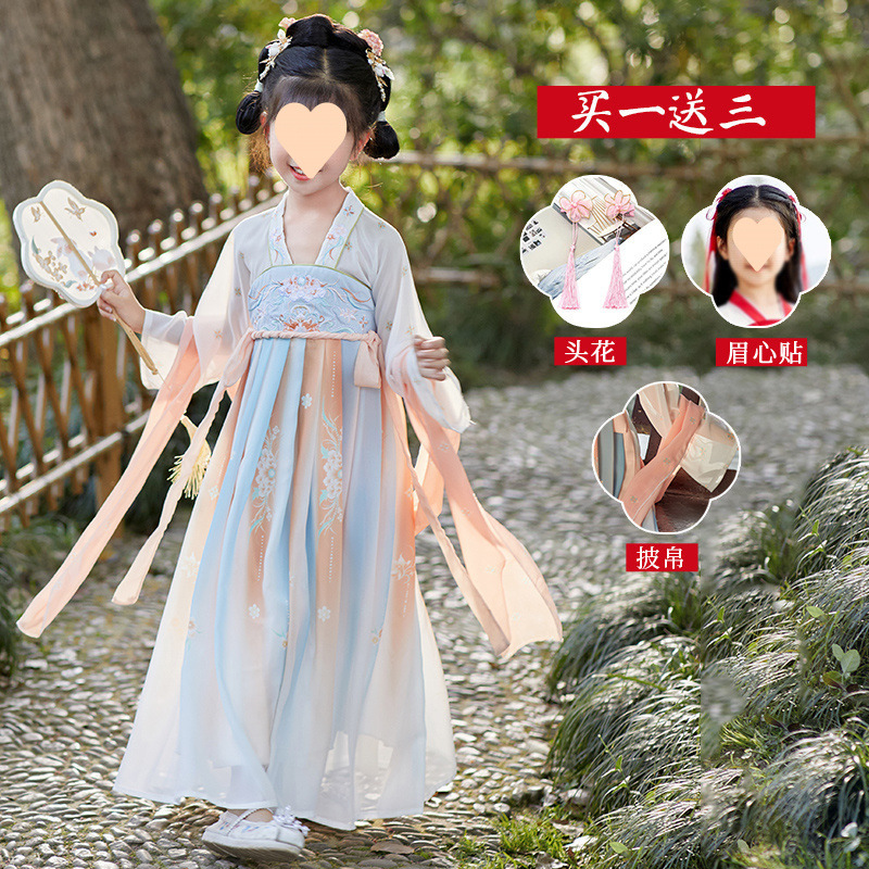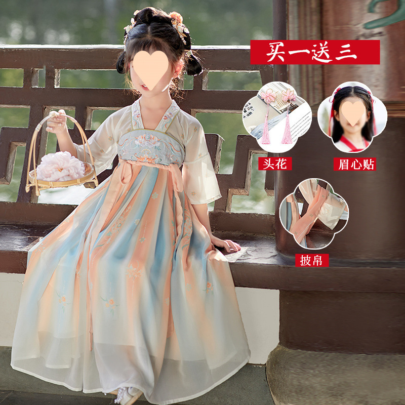 儿童汉服女春夏轻薄襦裙演出服中国风仙古装表演服装飘逸古风装