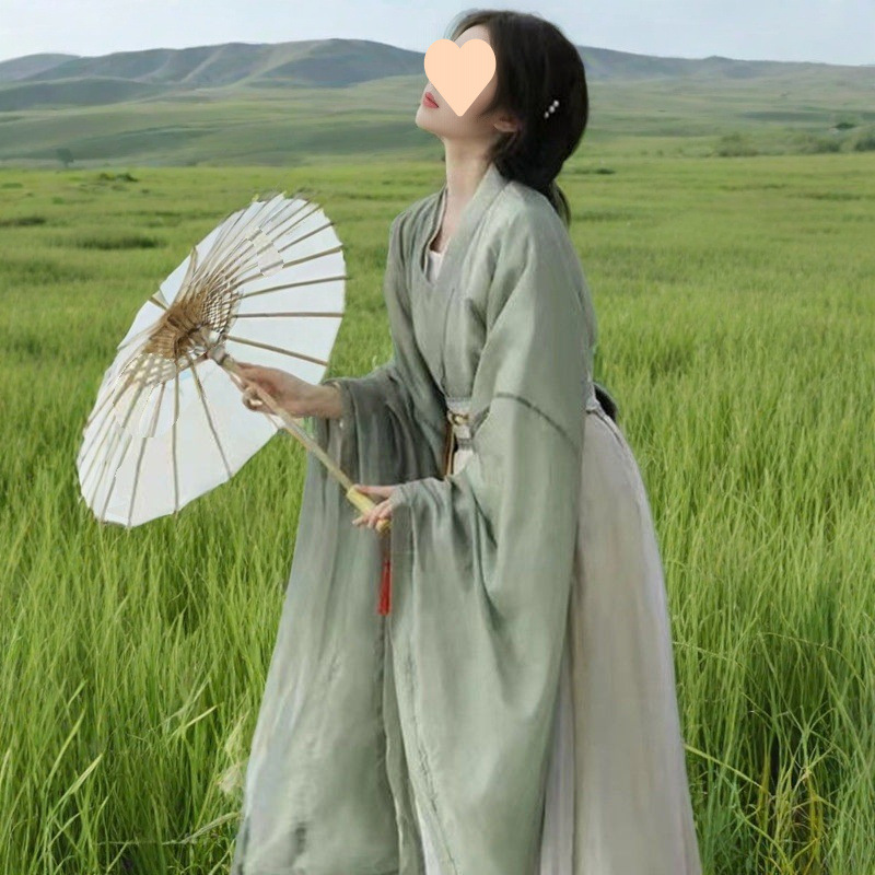 2025魏晋风绿色汉服飘逸交领广袖流仙裙古装仙裙成人一整套