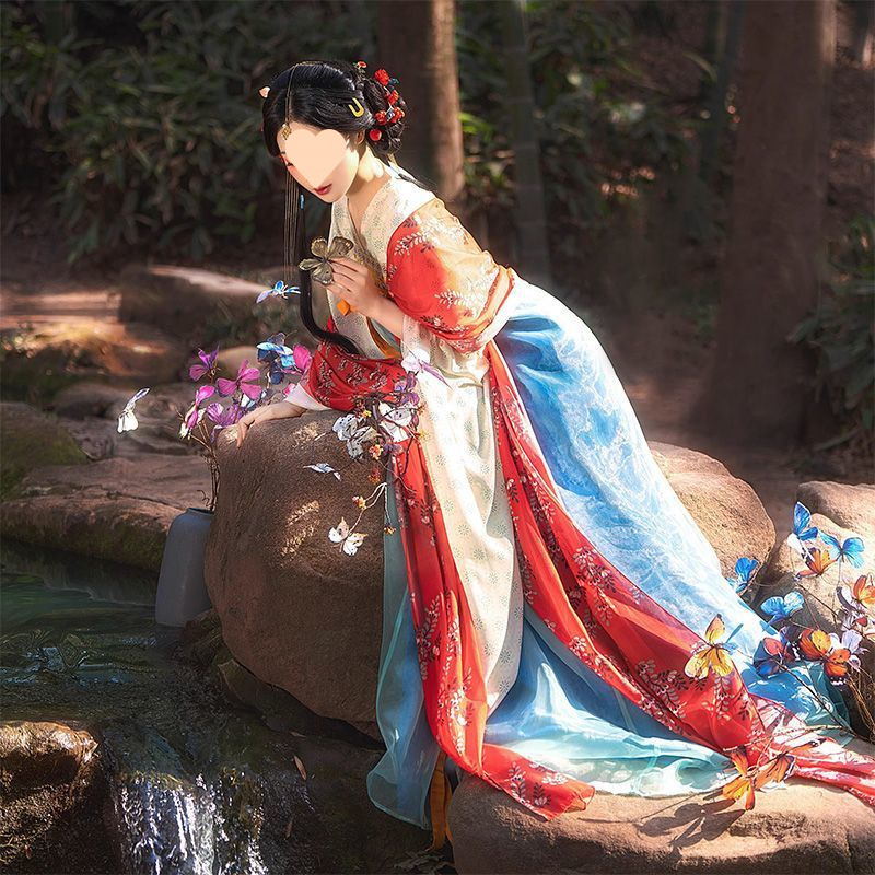 春夏新款南北朝虞美人隋唐复原齐胸大袖唐风一片破裙汉服改良全套