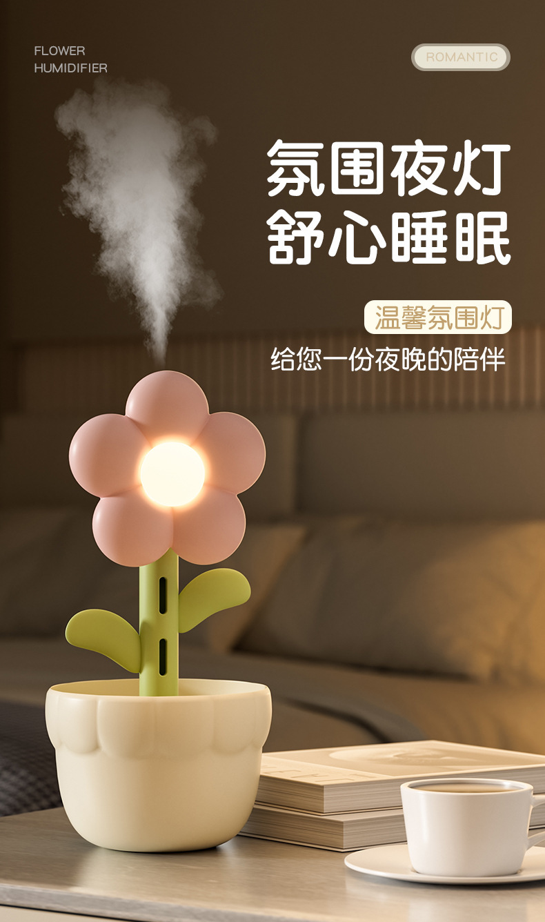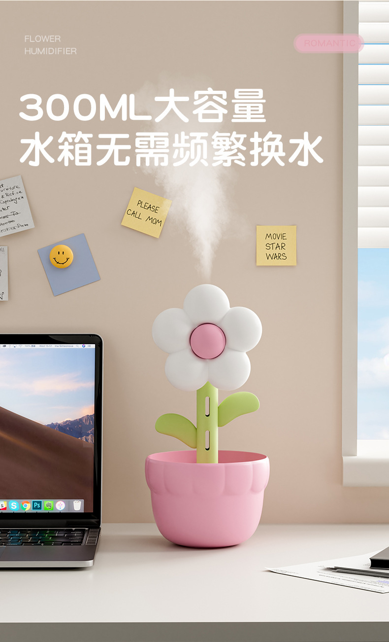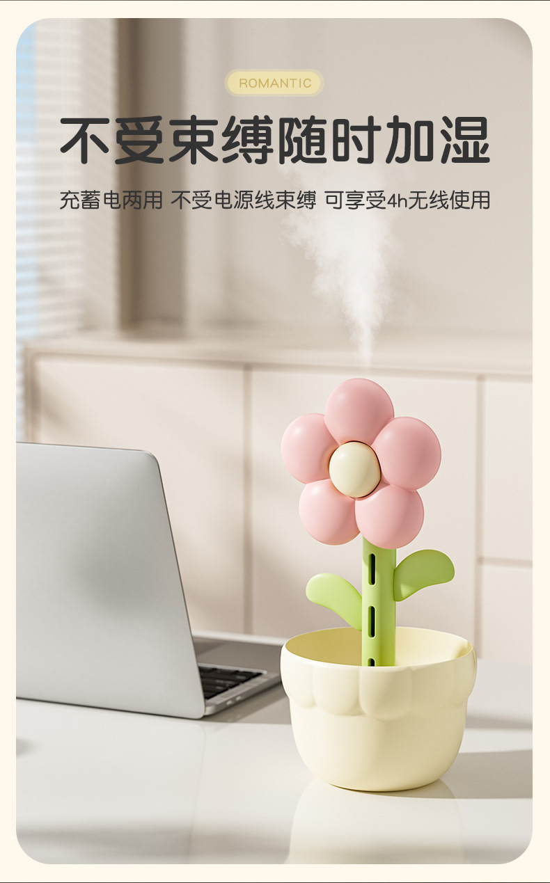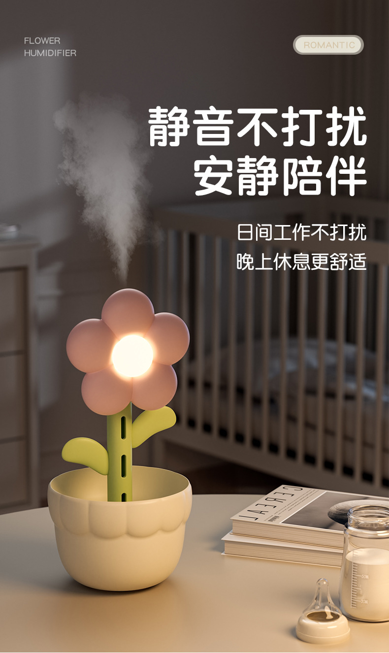家用小花加湿器桌面usb小型家用款静音卧室孕妇大雾量空气加湿器