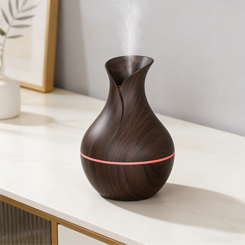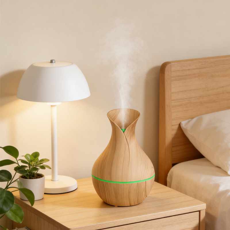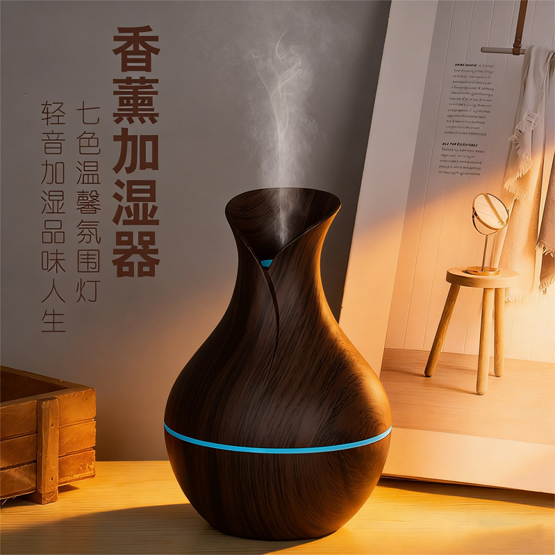 跨境蘑菇木纹加湿器静音七彩空气创意USB花瓶卧室补水香薰喷雾仪