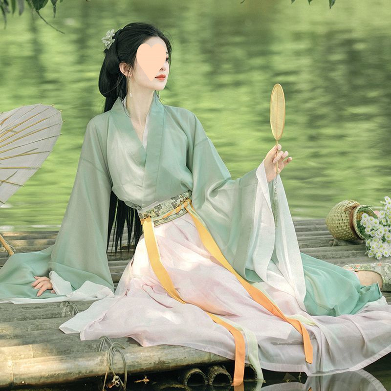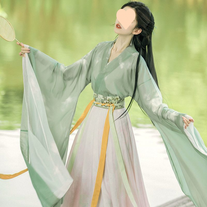 2025新款汉服女绿色古装中国风交领广袖流仙裙仙气飘逸春夏款