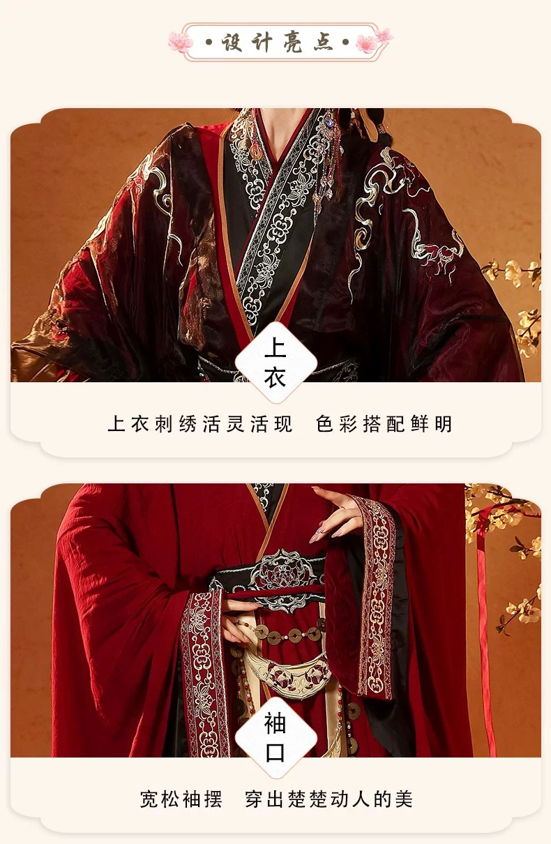 【红莲业火】新款原创汉服男女同款直裾战国袍复原重工刺绣改良