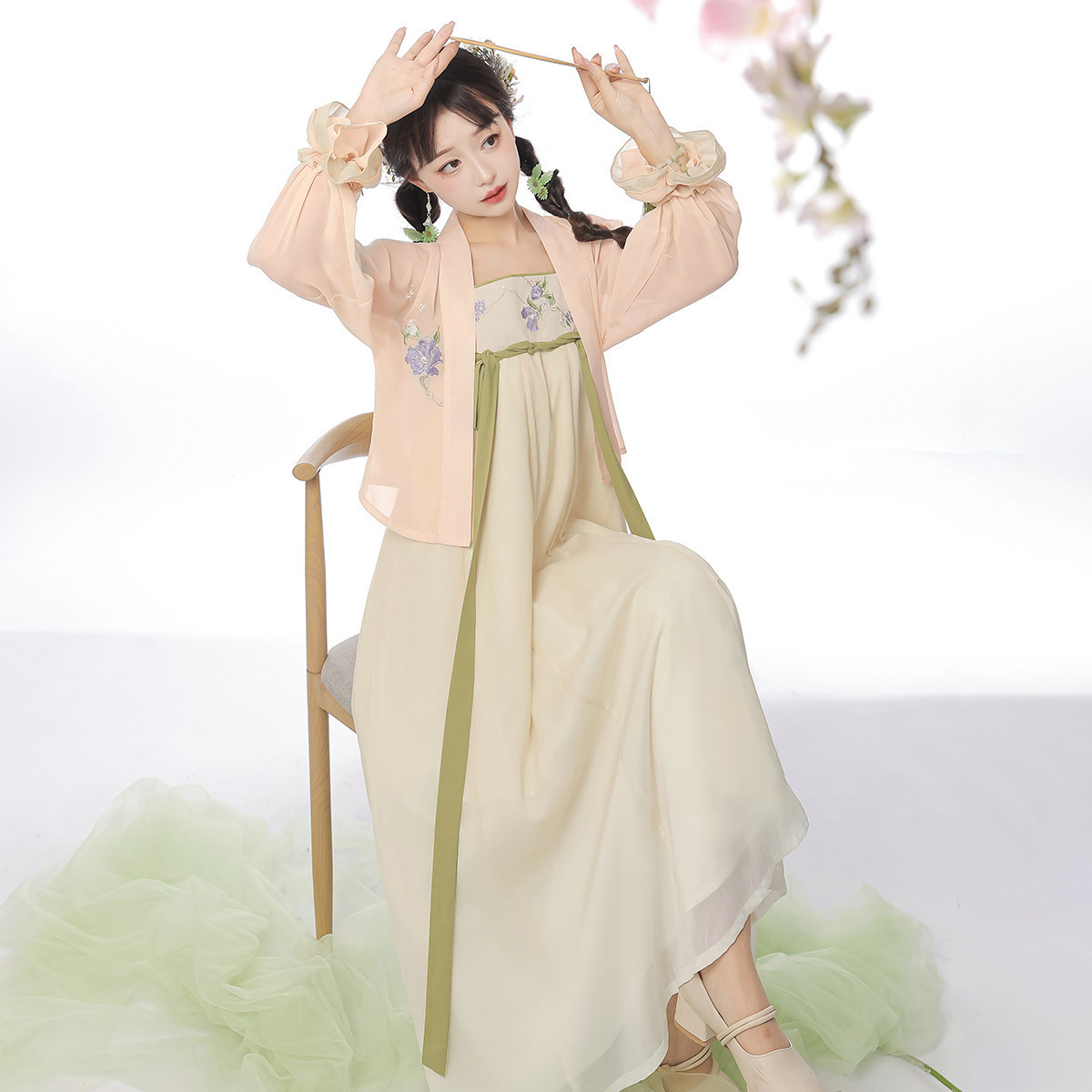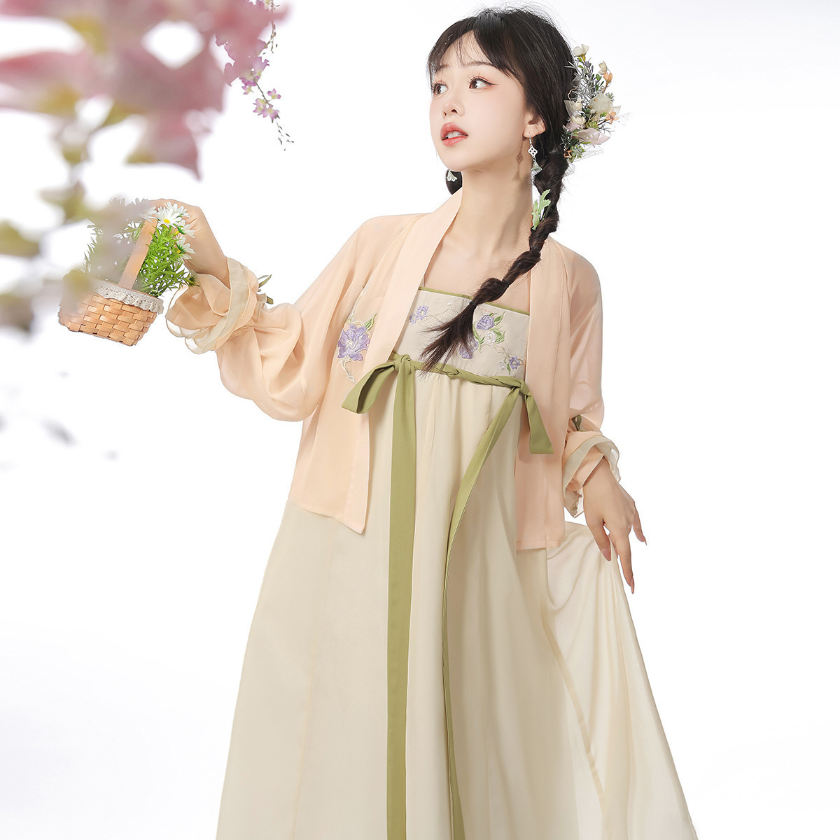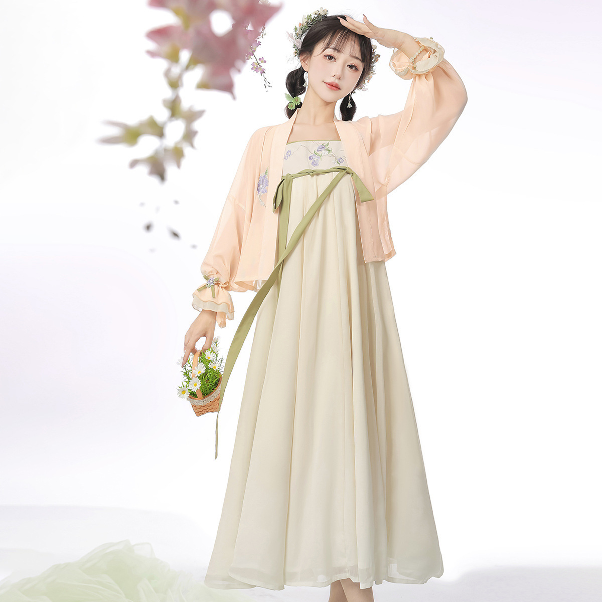 原创设计叠秋萝中国风改良汉元素汉服女上衣吊带裙手袖套装8648