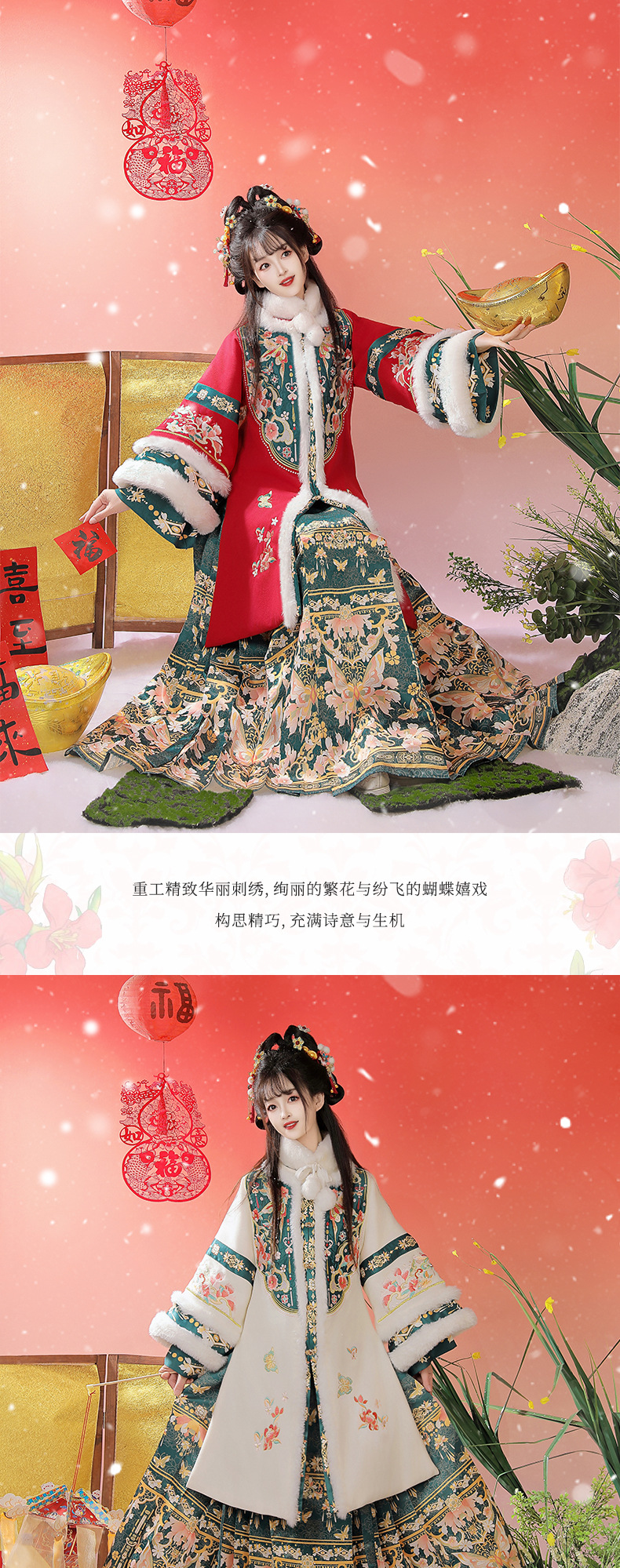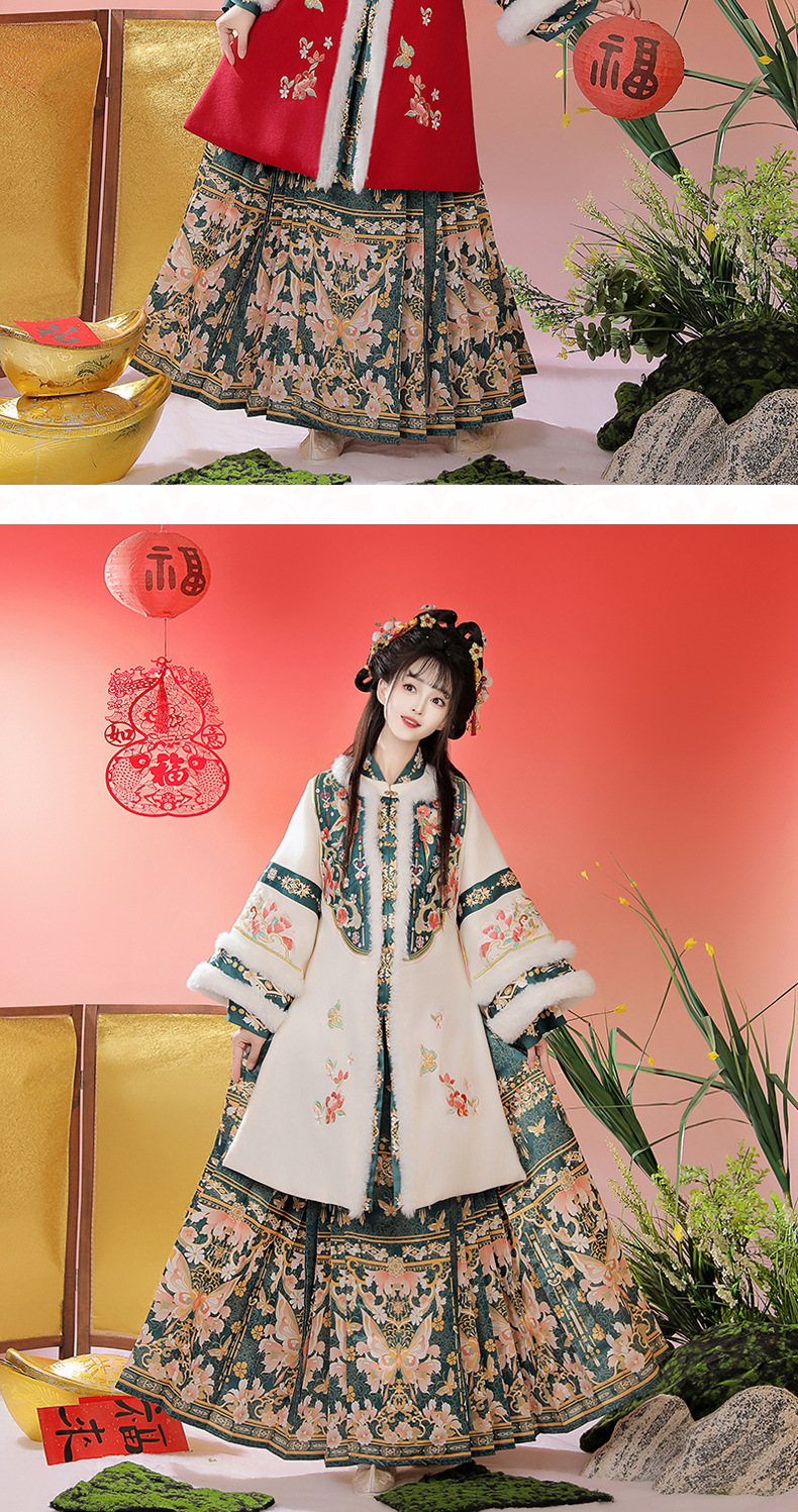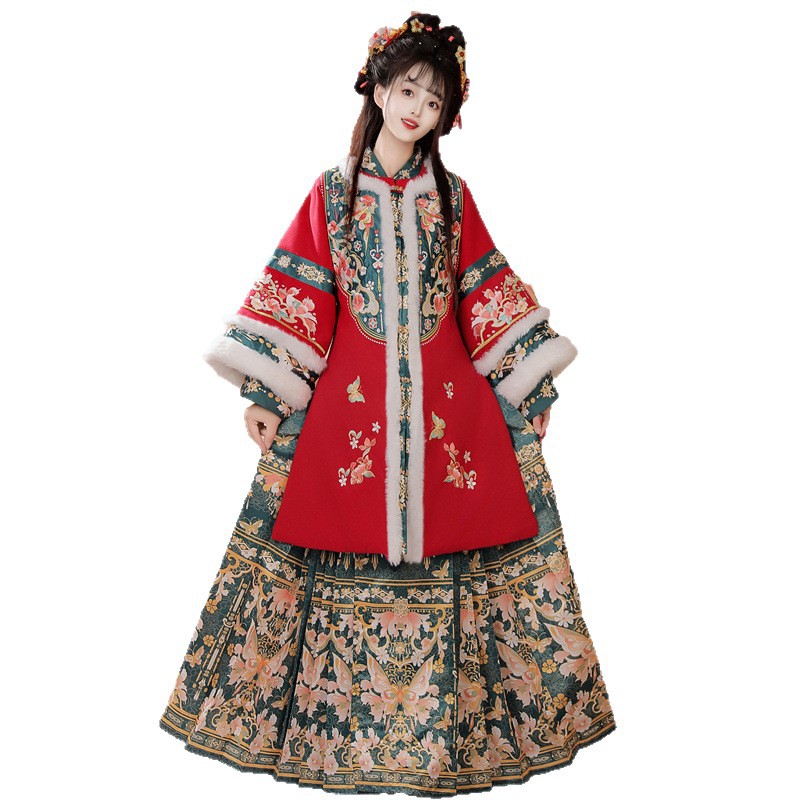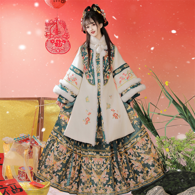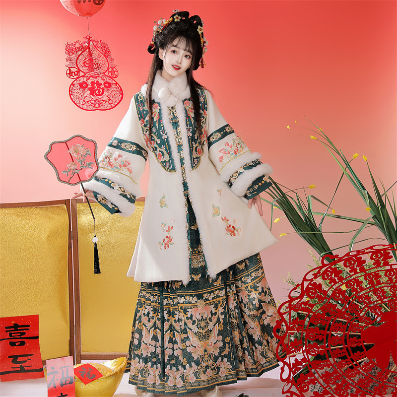 正品原创明制汉服女装2025新款冬季加厚刺绣长衫马面裙拜年服古装