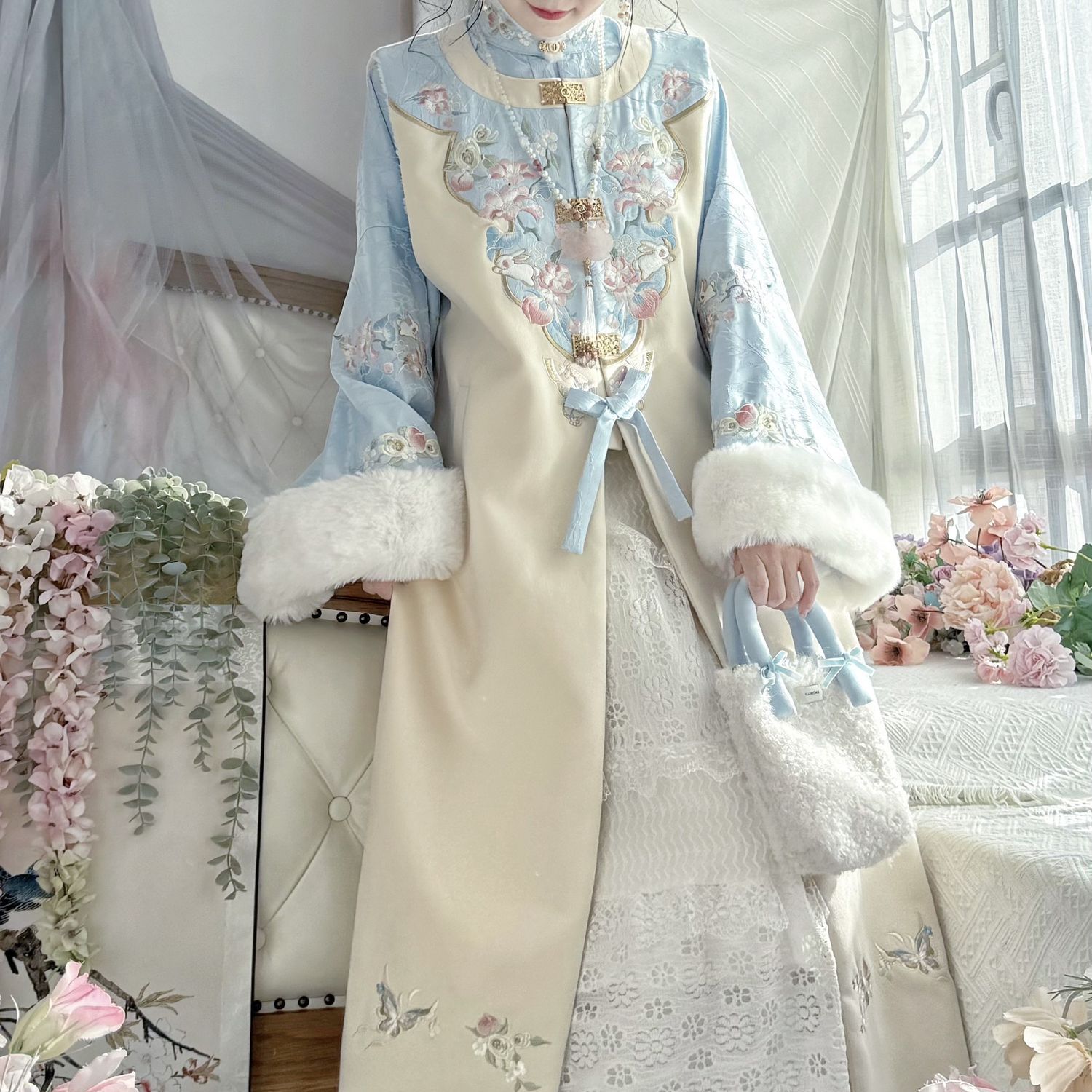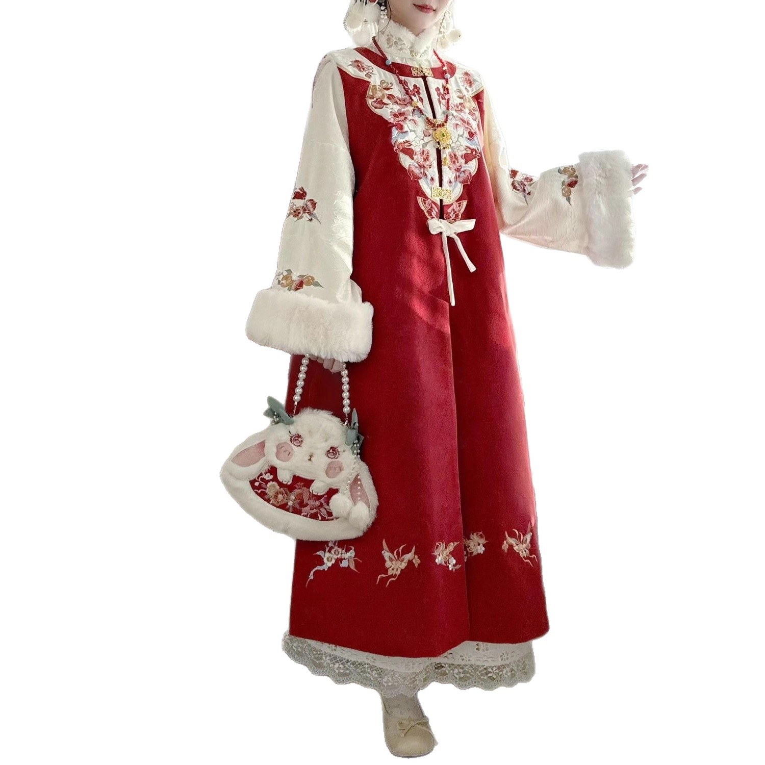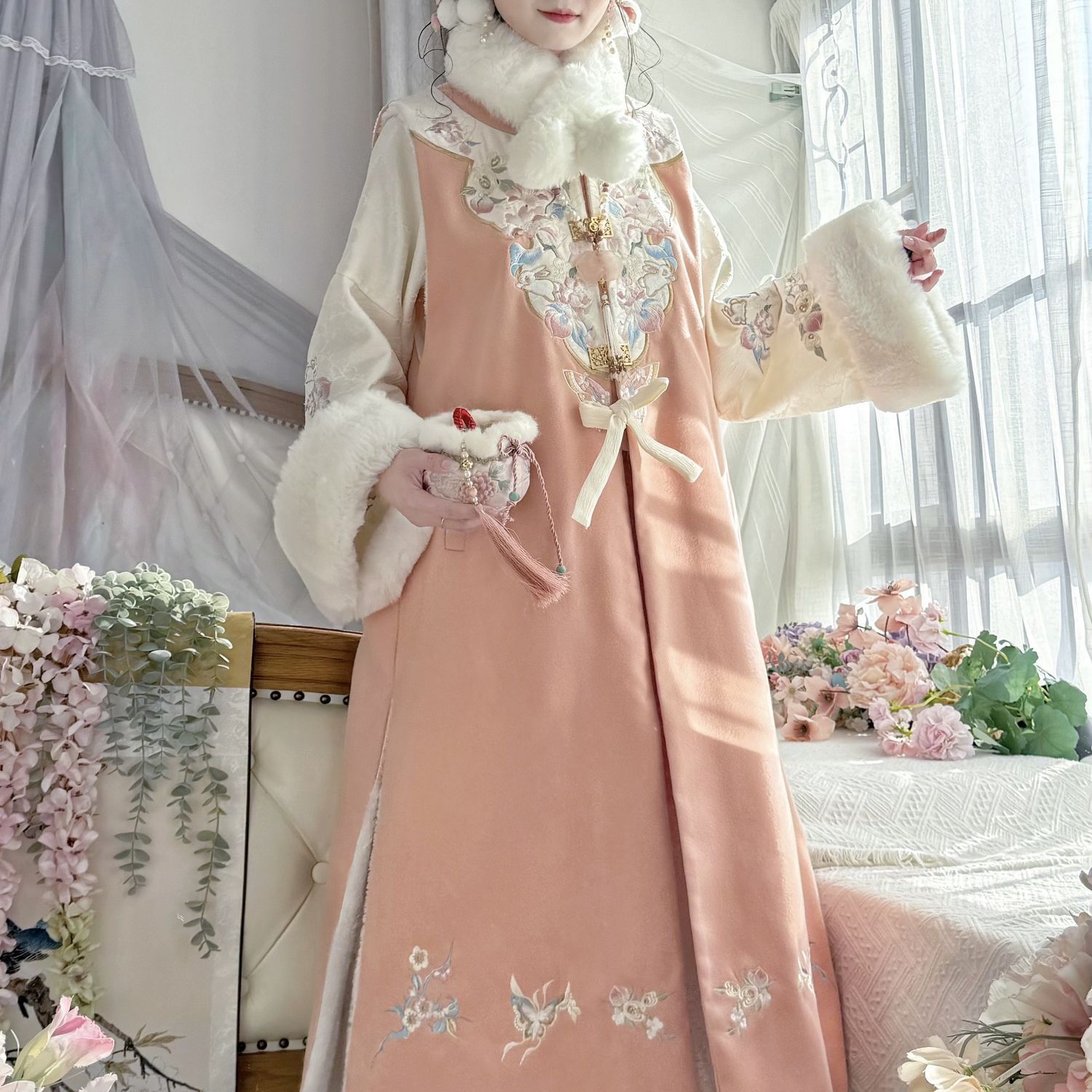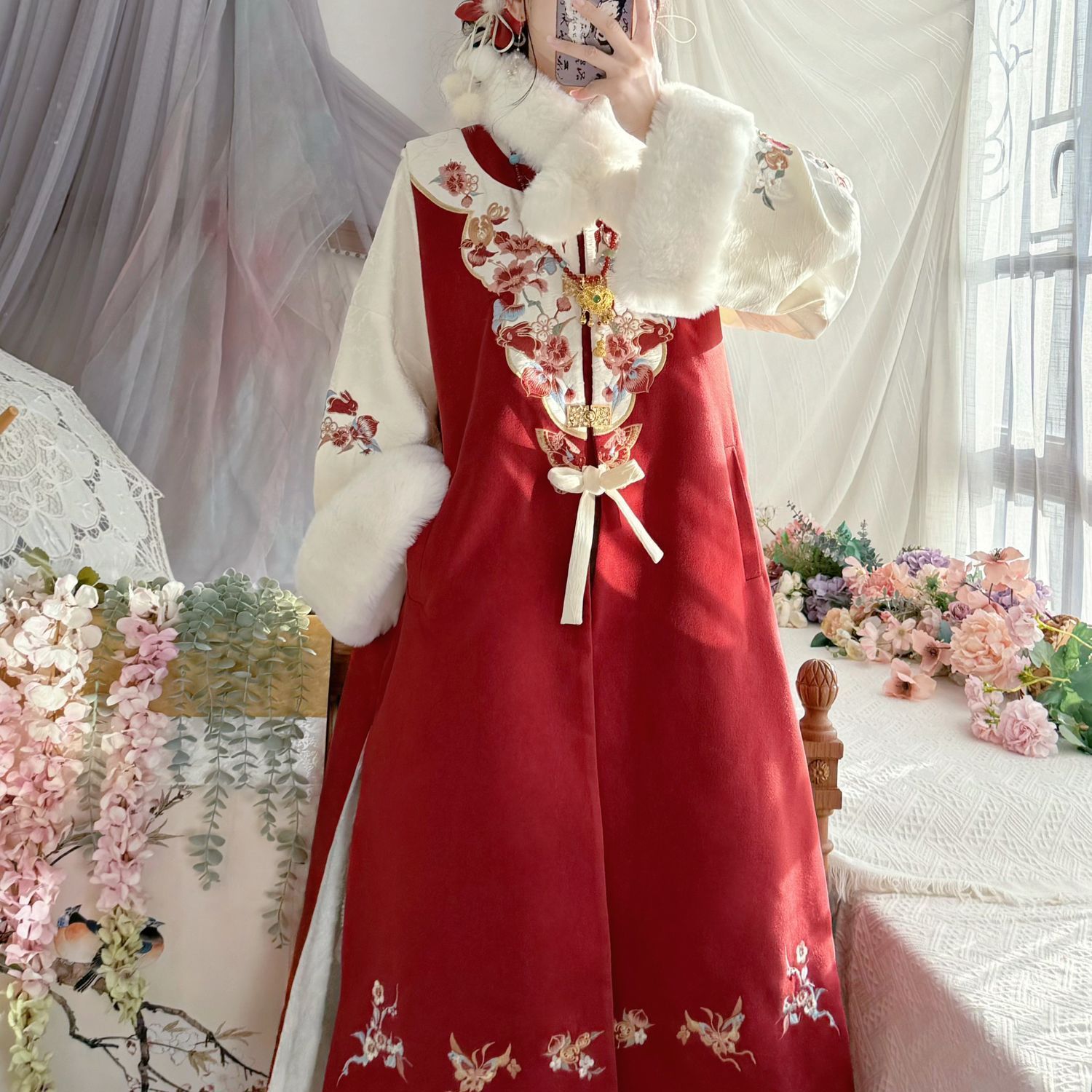 原创汉服女2026新款秋冬季立领短衫明制长比甲马面裙厚款日常套装