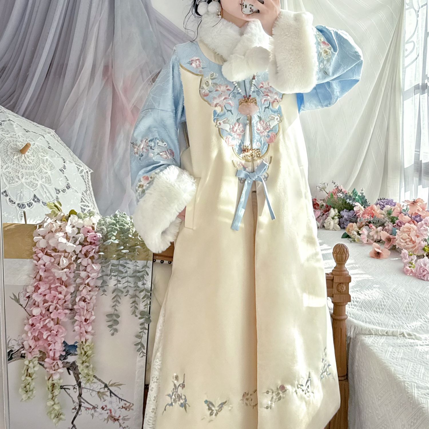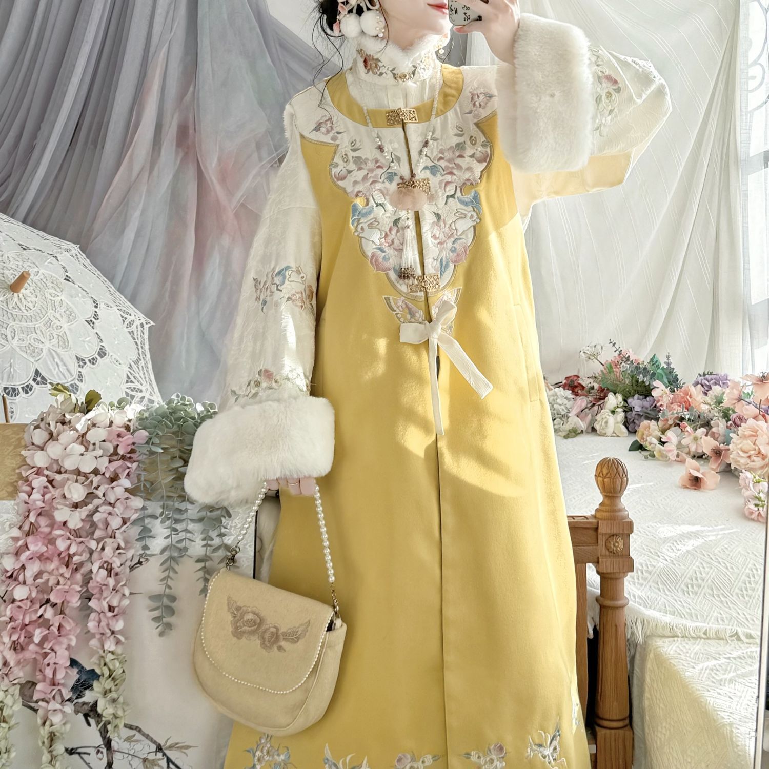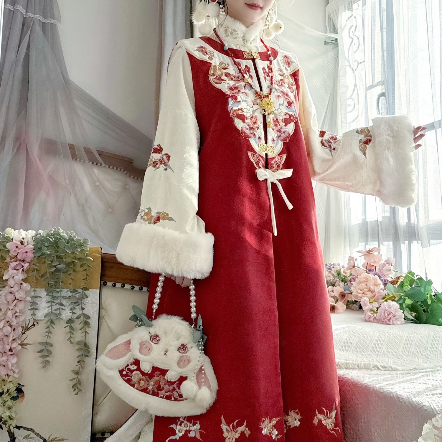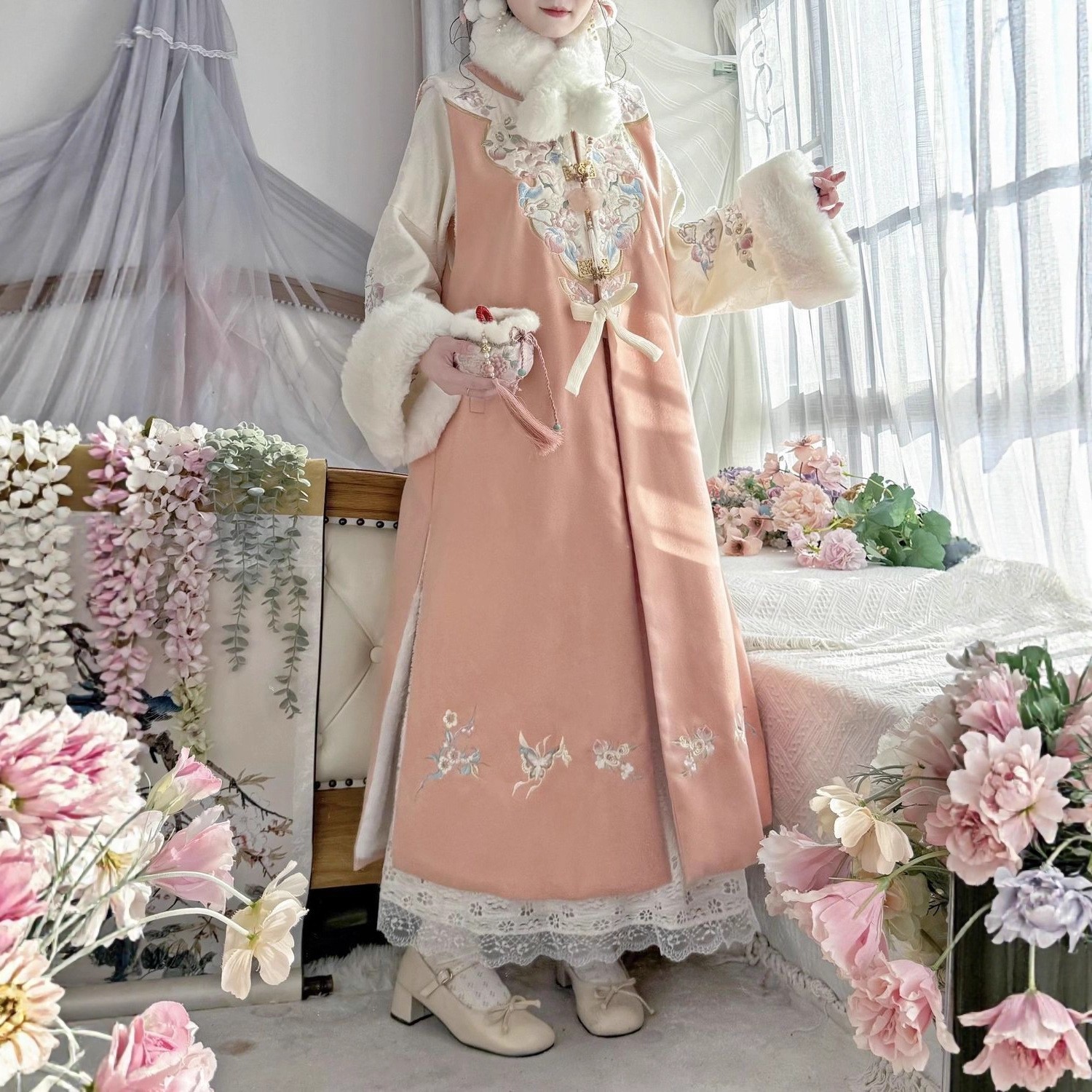 原创汉服女2026新款秋冬季立领短衫明制长比甲马面裙厚款日常套装