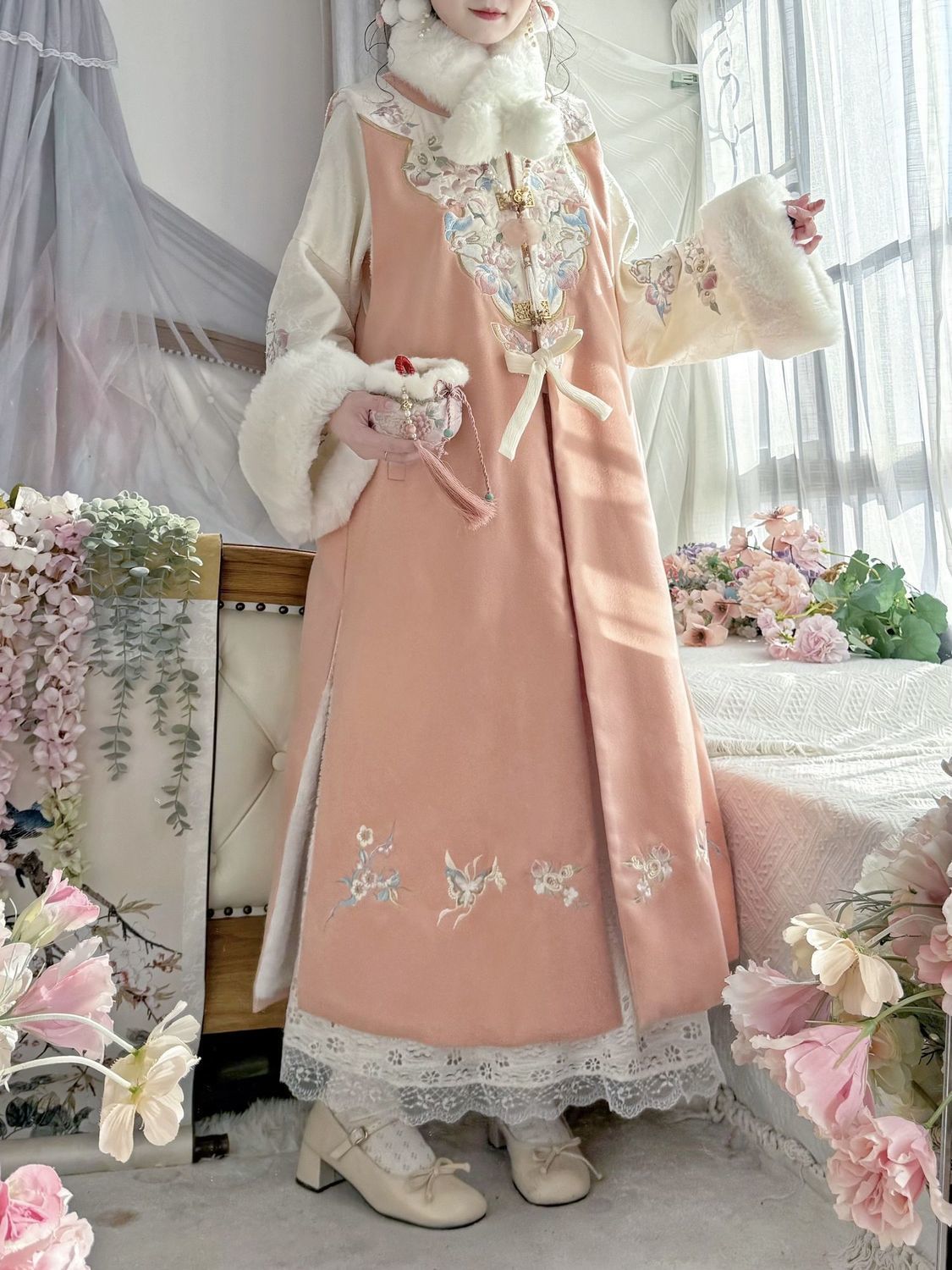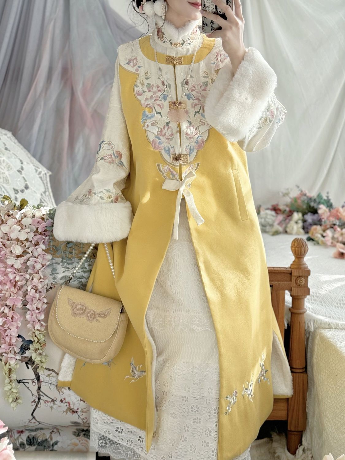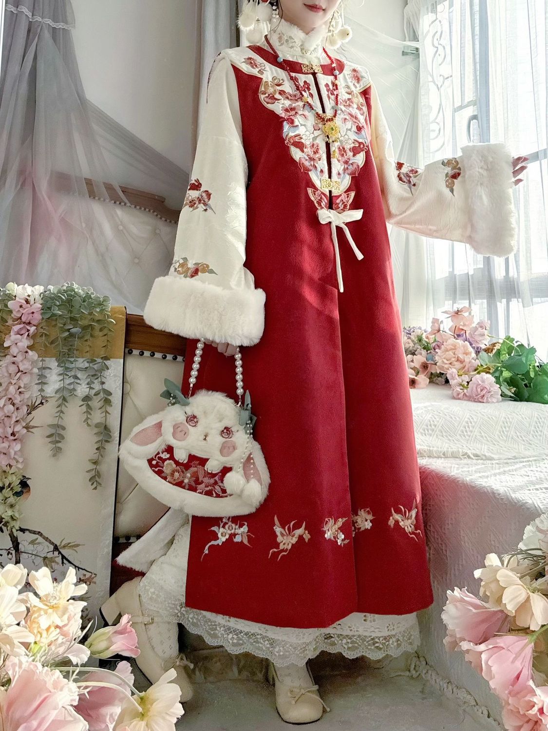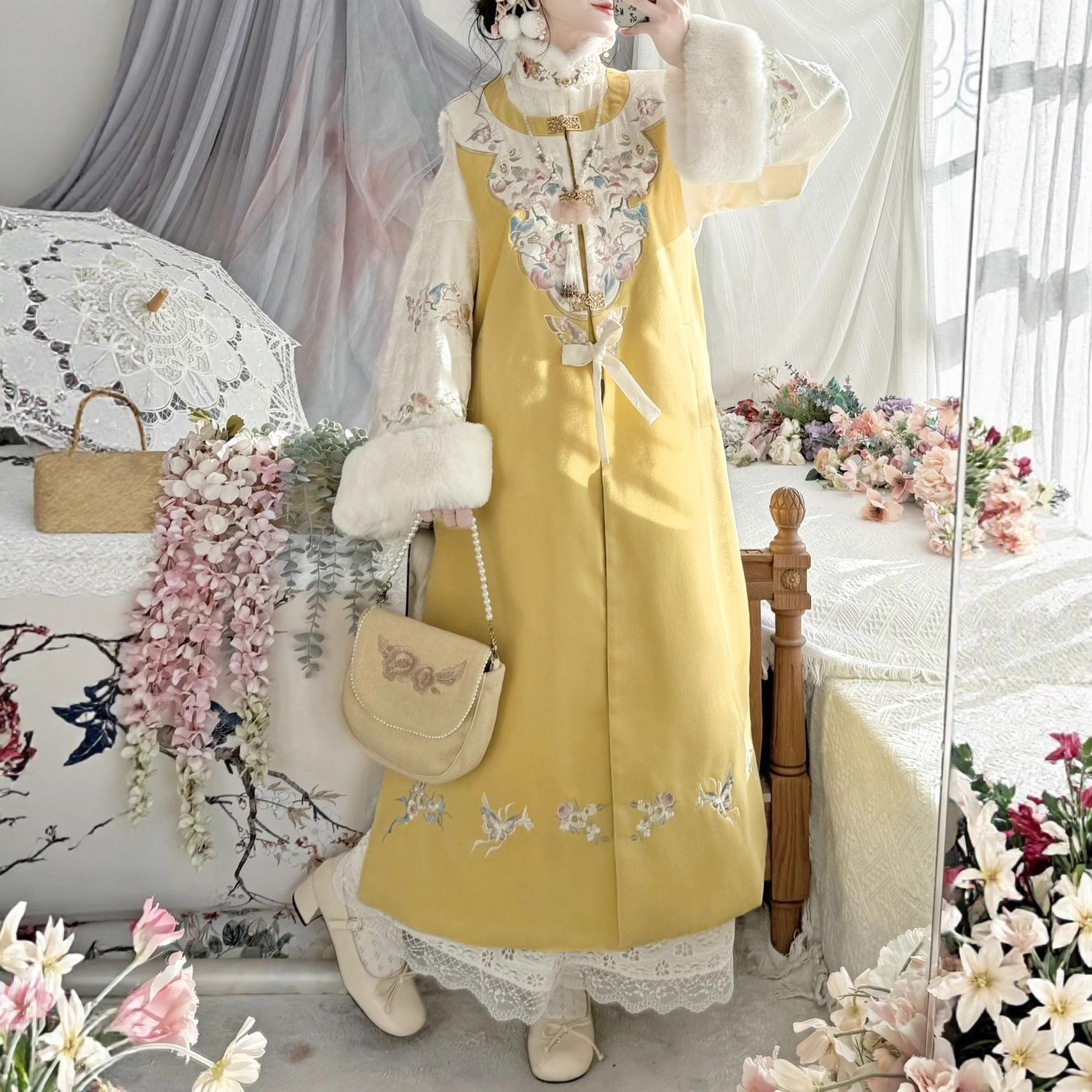 原创汉服女2026新款秋冬季立领短衫明制长比甲马面裙厚款日常套装