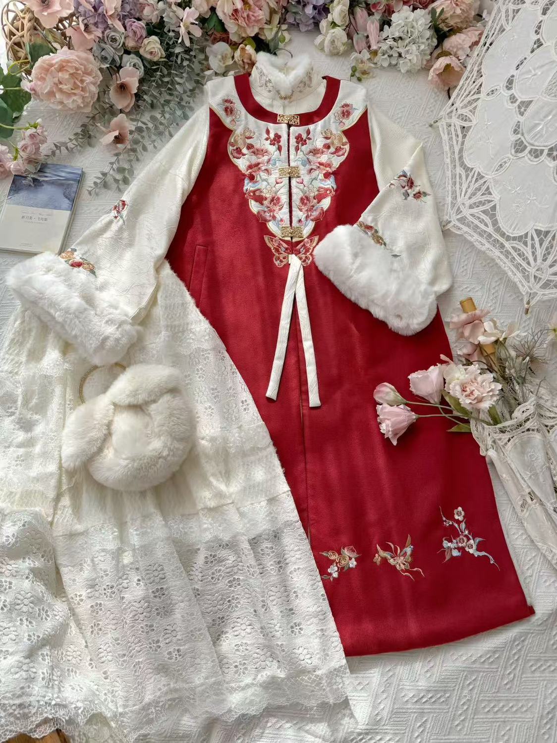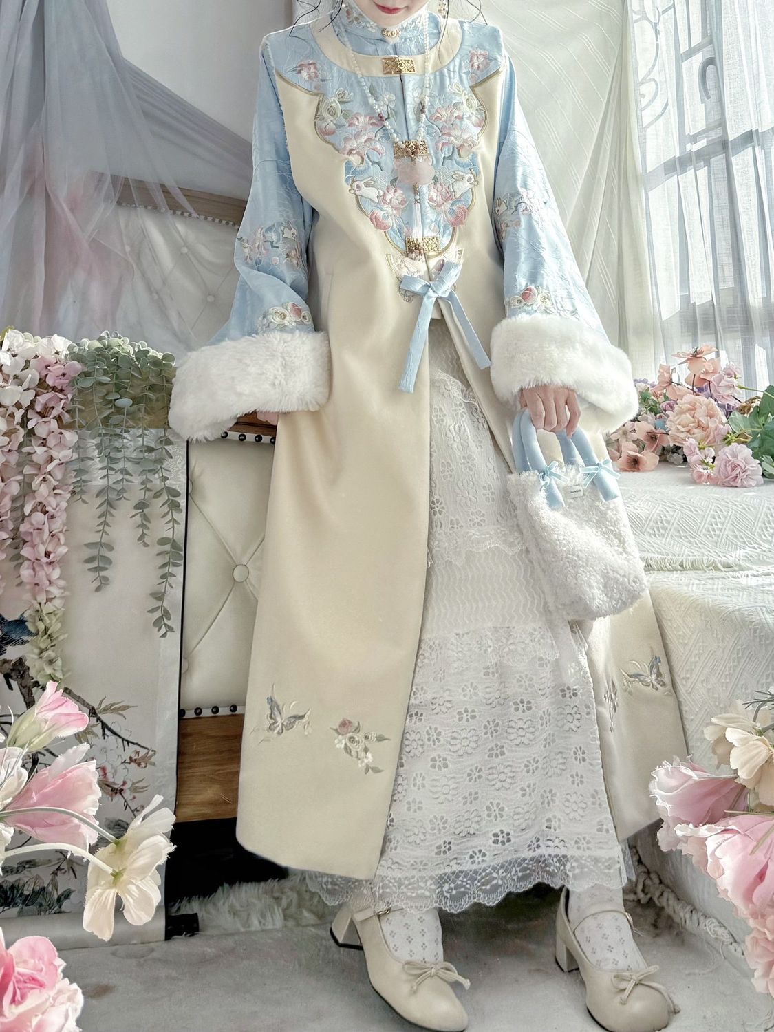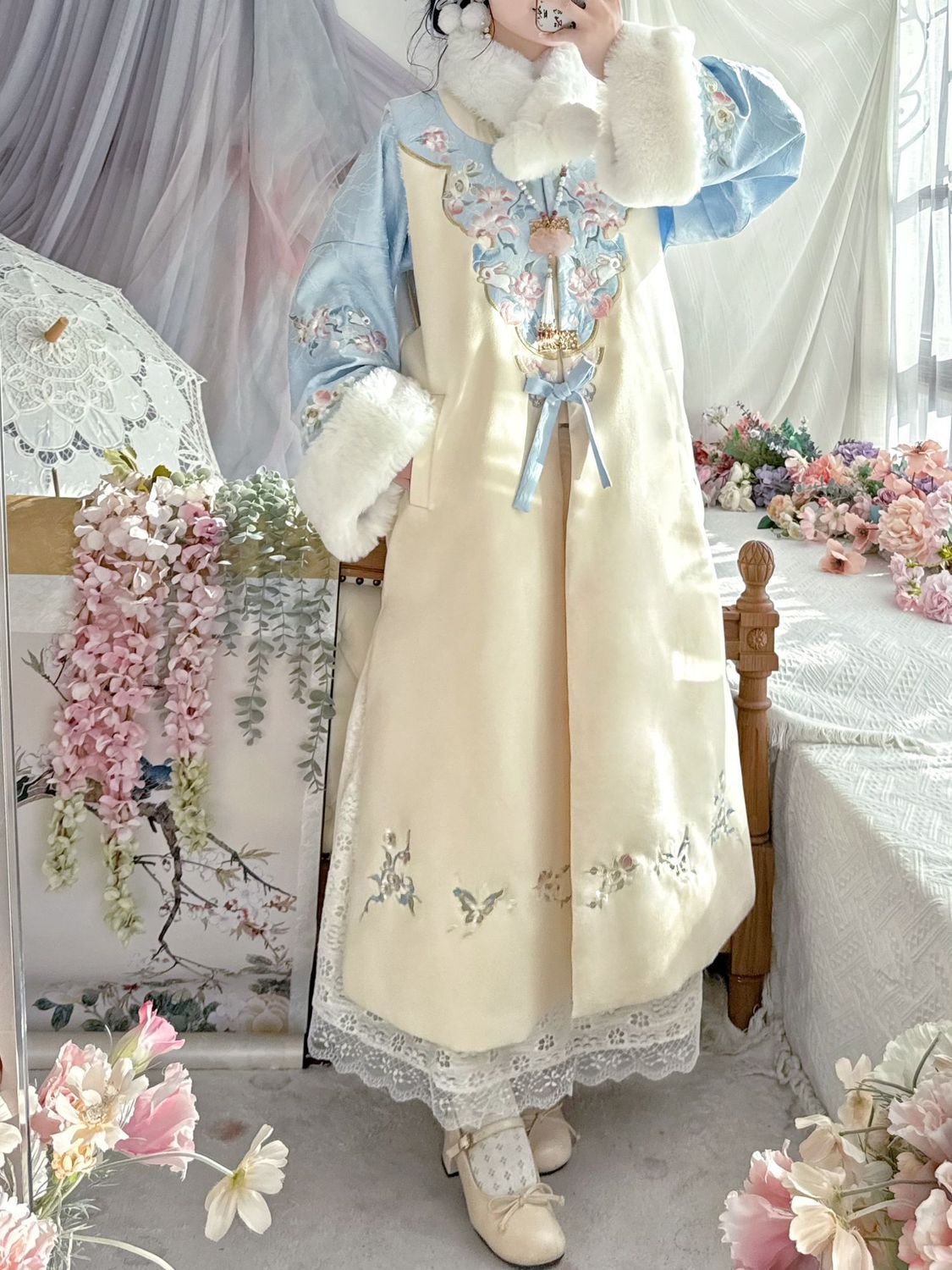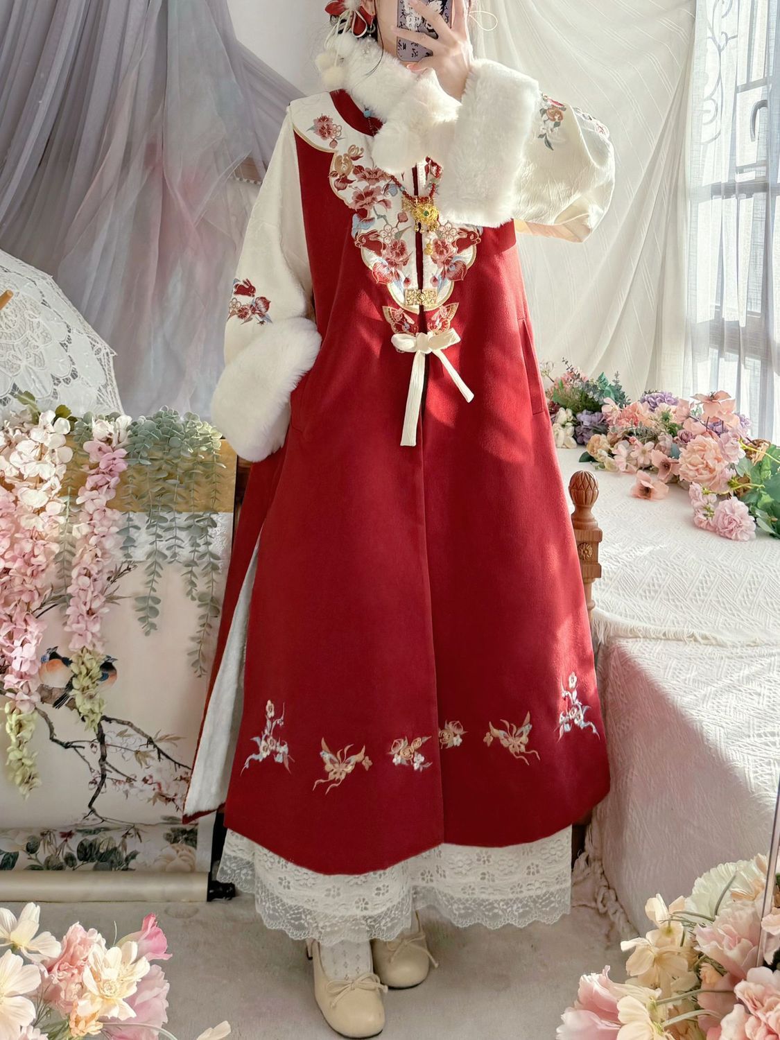 原创汉服女2026新款秋冬季立领短衫明制长比甲马面裙厚款日常套装