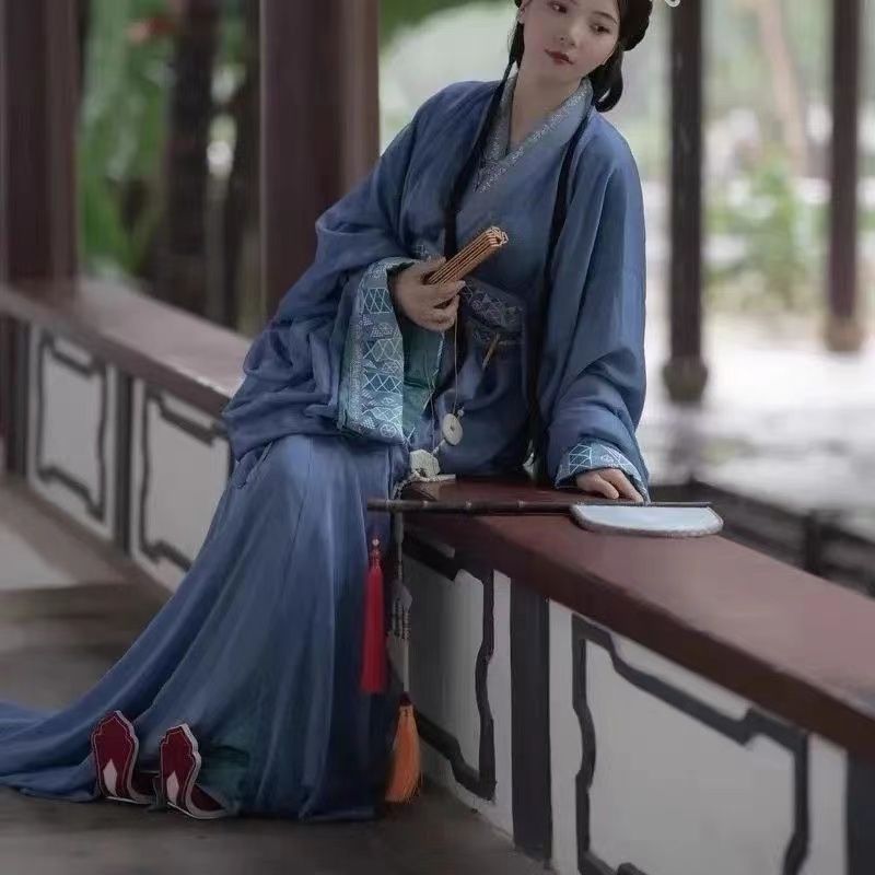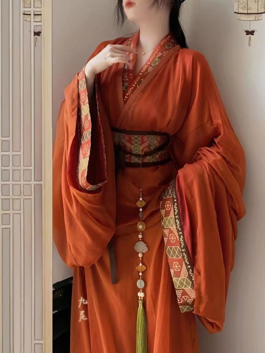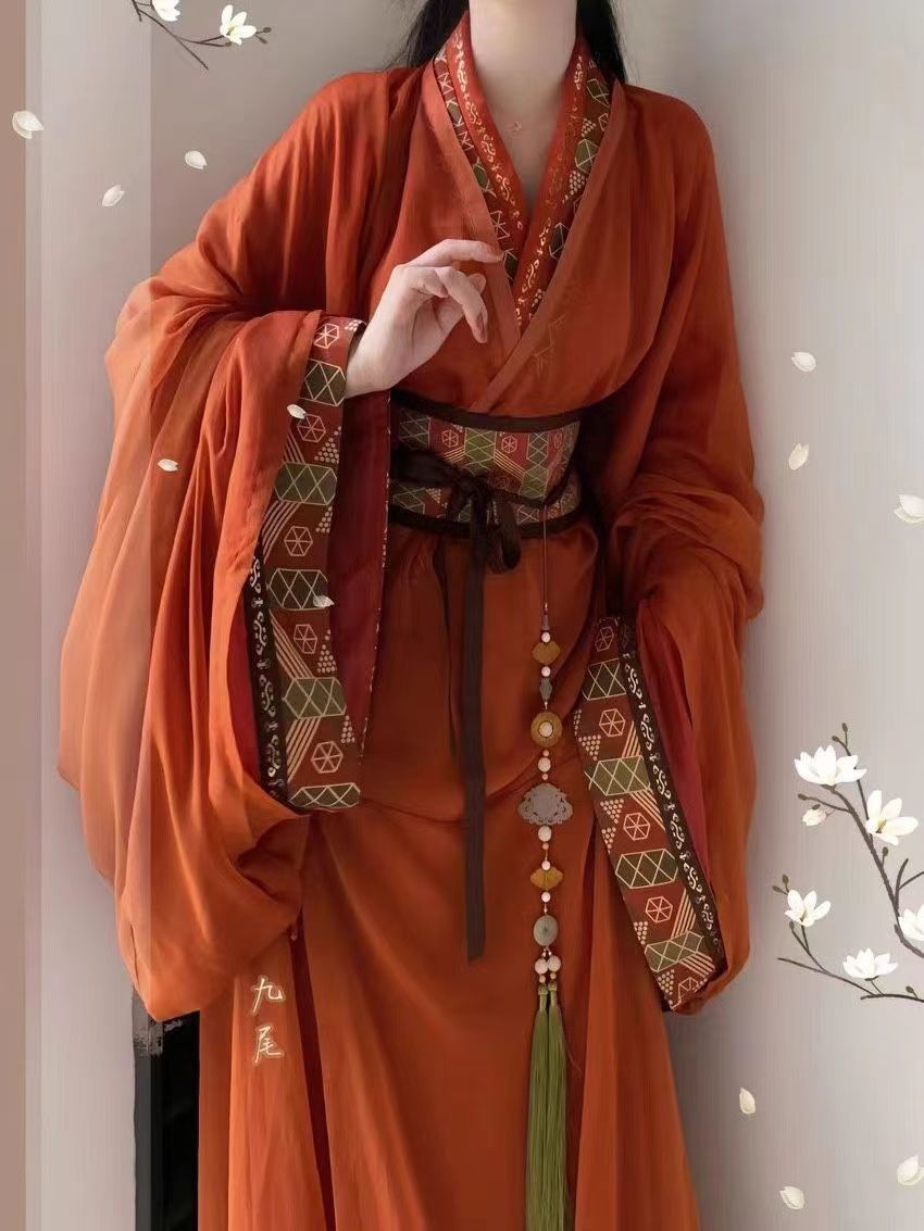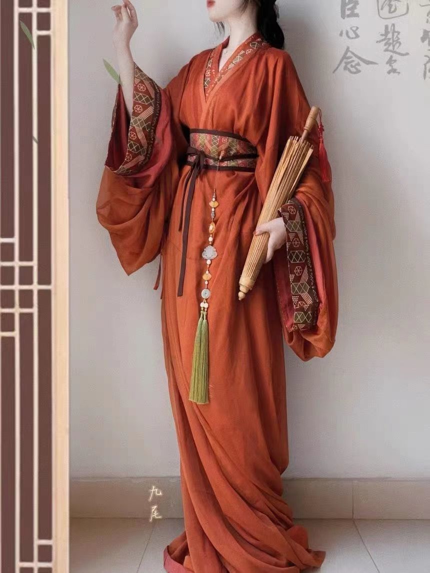 原创汉服战国袍马山楚墓复原古装拖尾直直裾传统交领宫廷新款套装