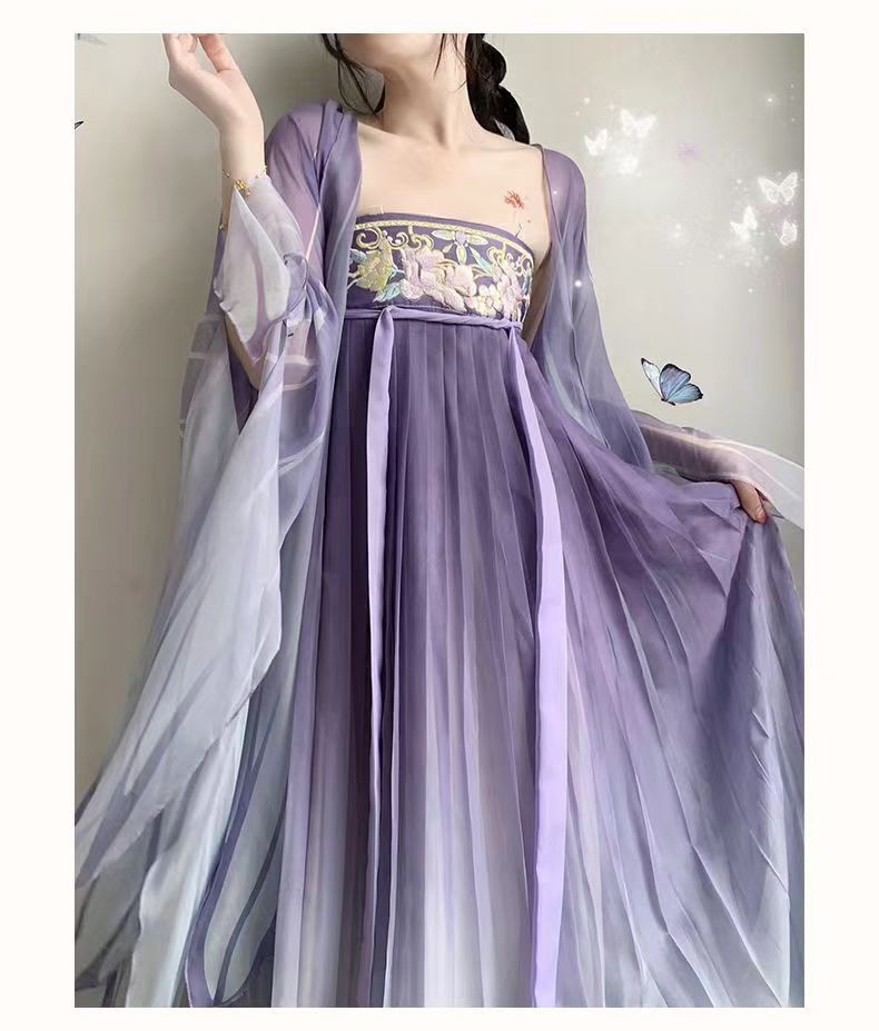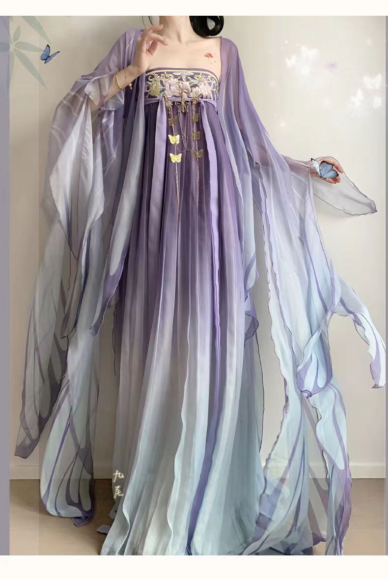 原创汉服仙气唐制蝴蝶大袖古风诃子裙古装日常春夏刺绣超仙款齐胸