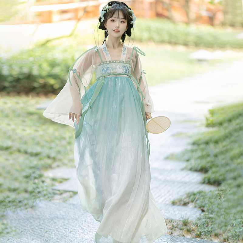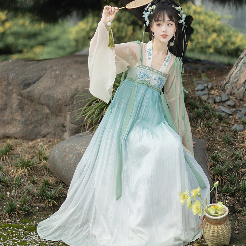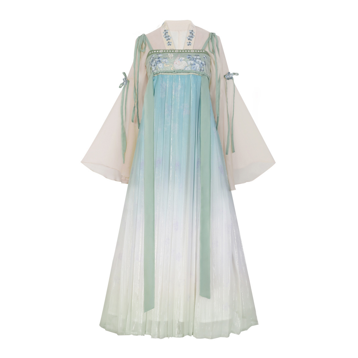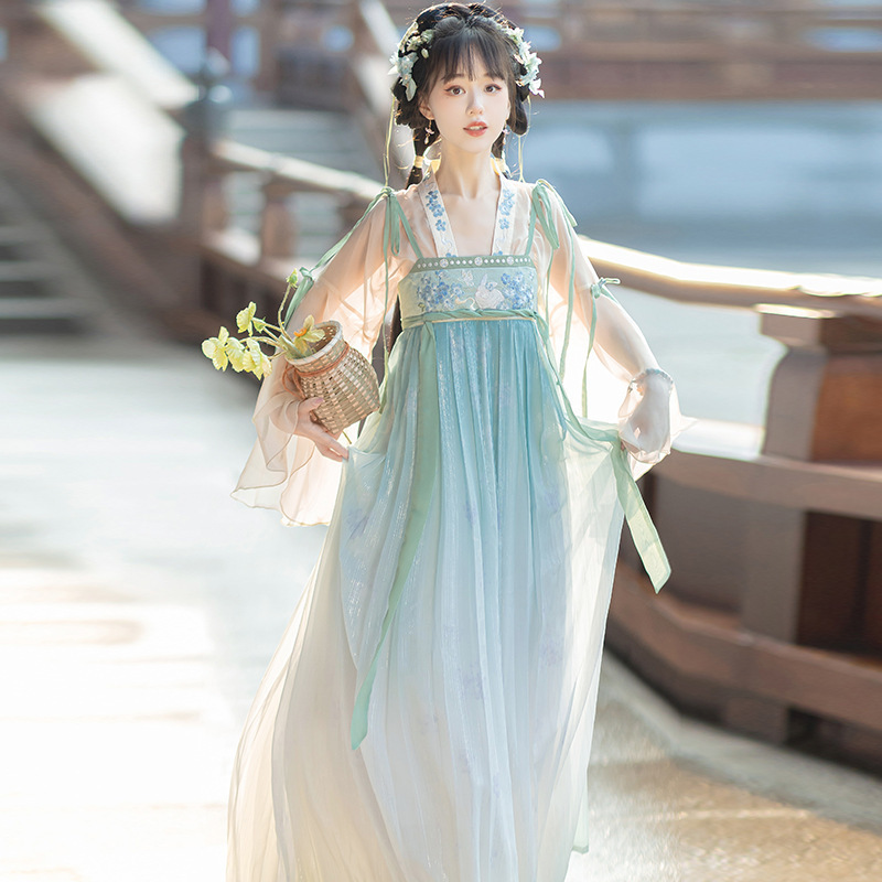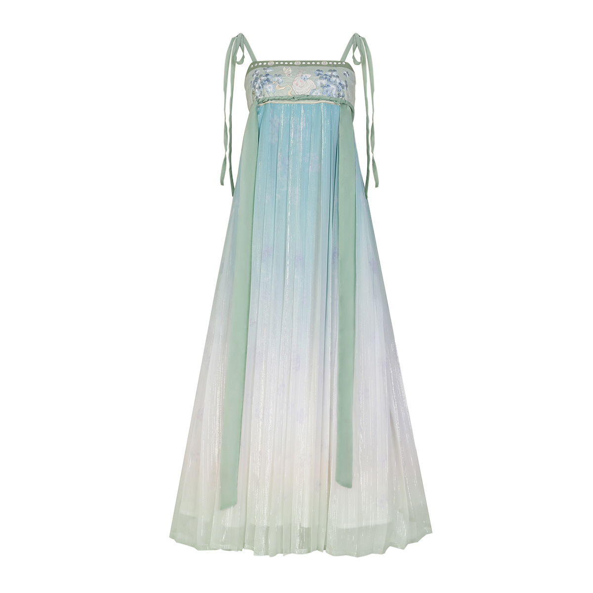 原创设计绣球花雨中国风改良汉元素汉服女上衣吊带裙套装8736