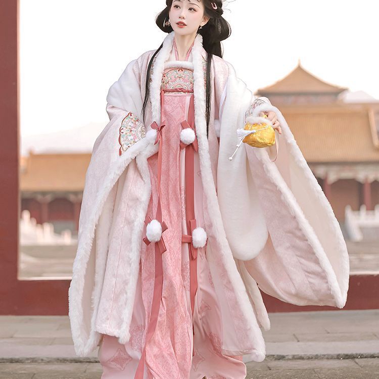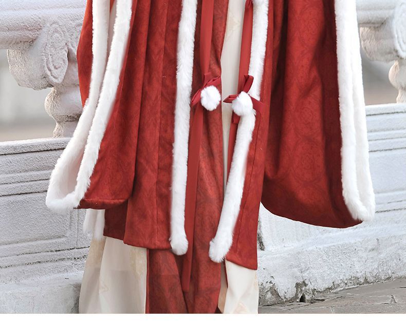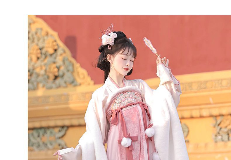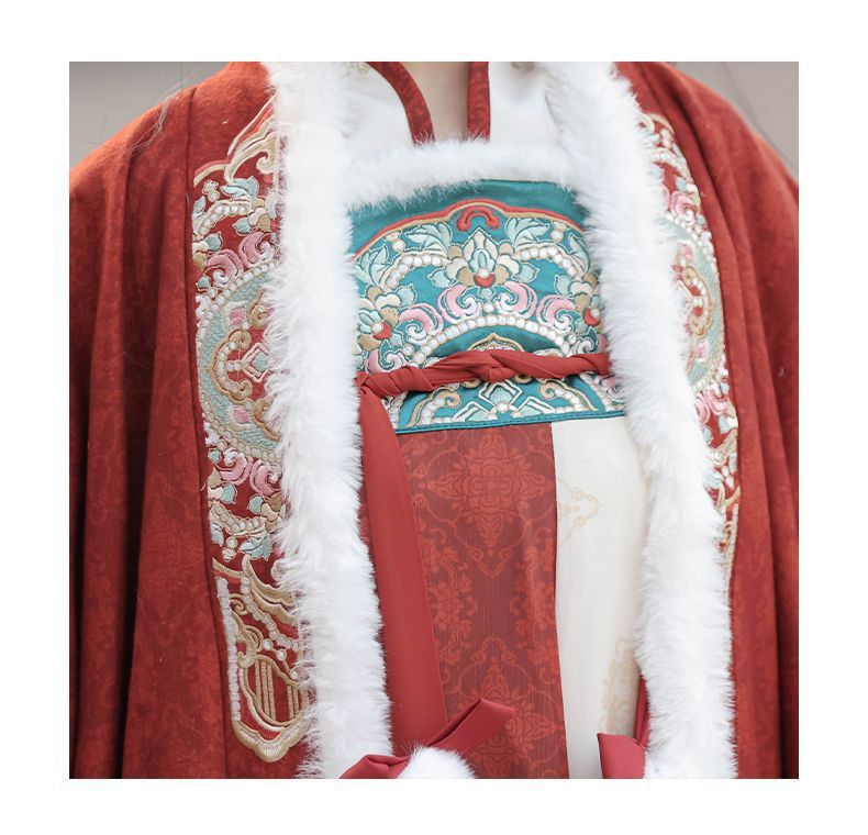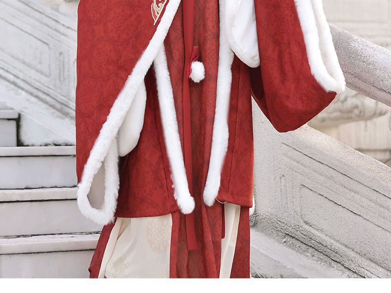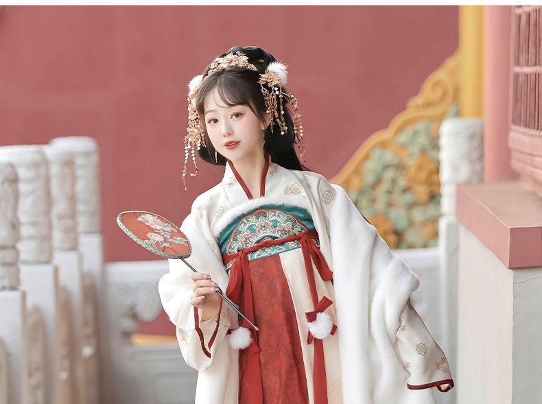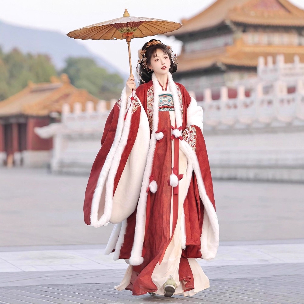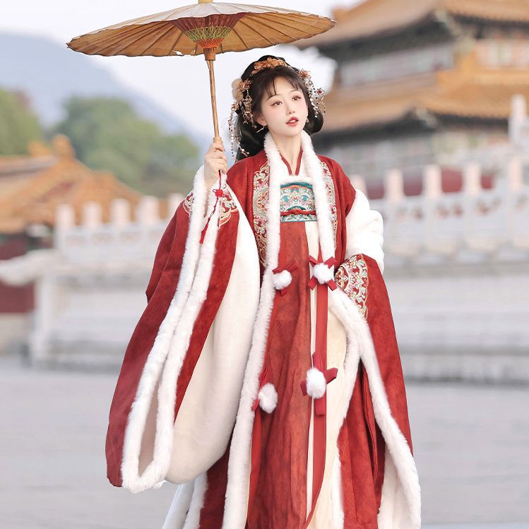 冬季毛呢汉服2026新款绣花大袖衫原创齐胸破裙唐风汉元素拜年套装