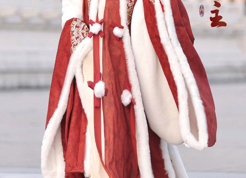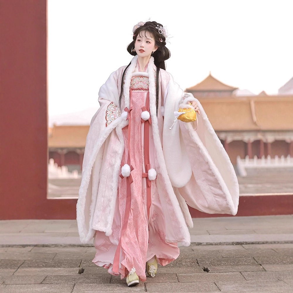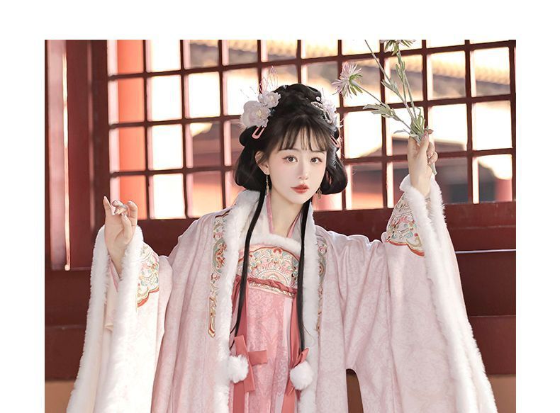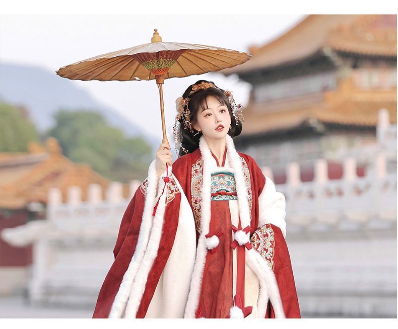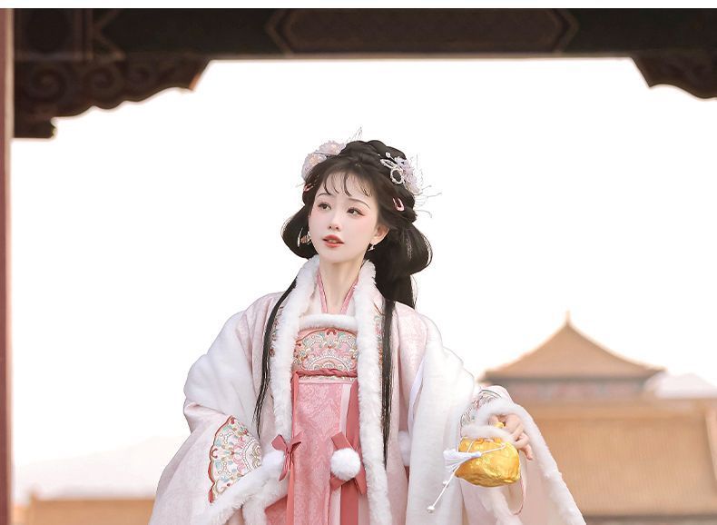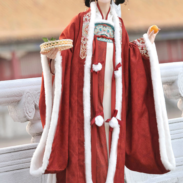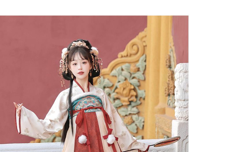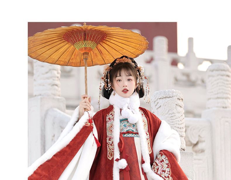 冬季毛呢汉服2026新款绣花大袖衫原创齐胸破裙唐风汉元素拜年套装