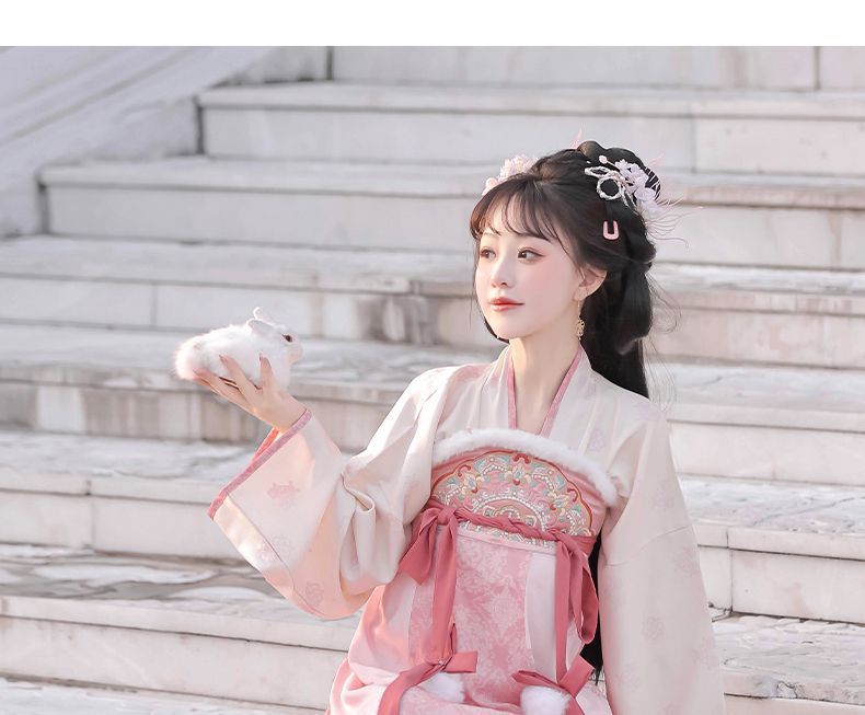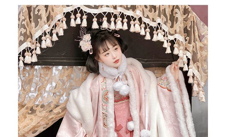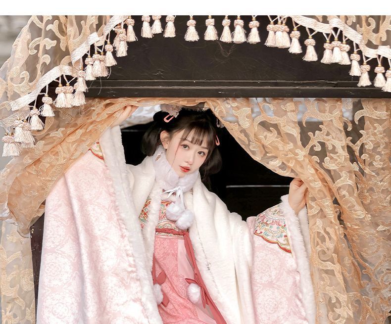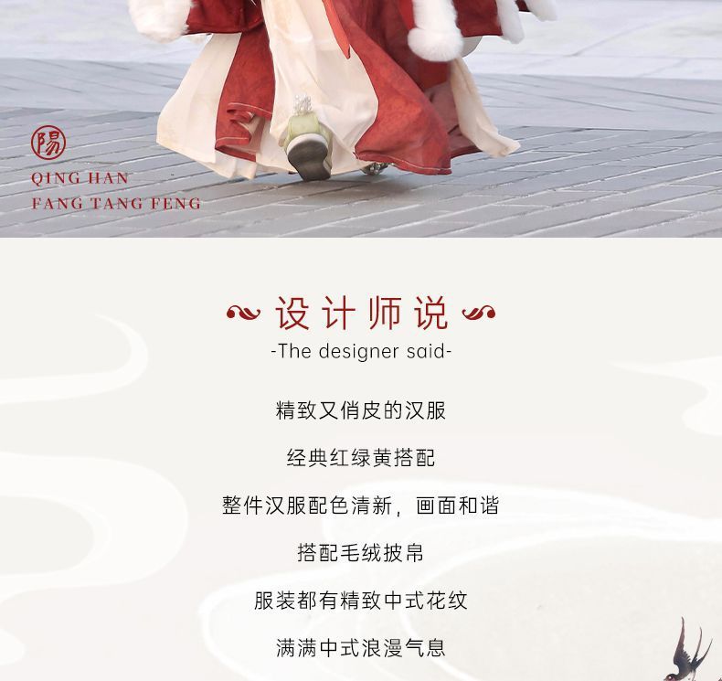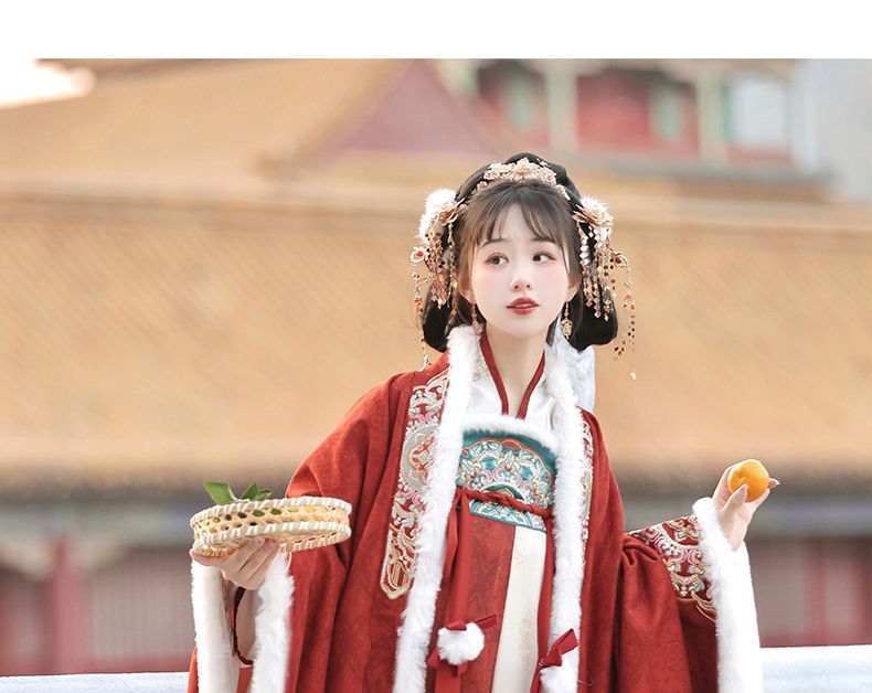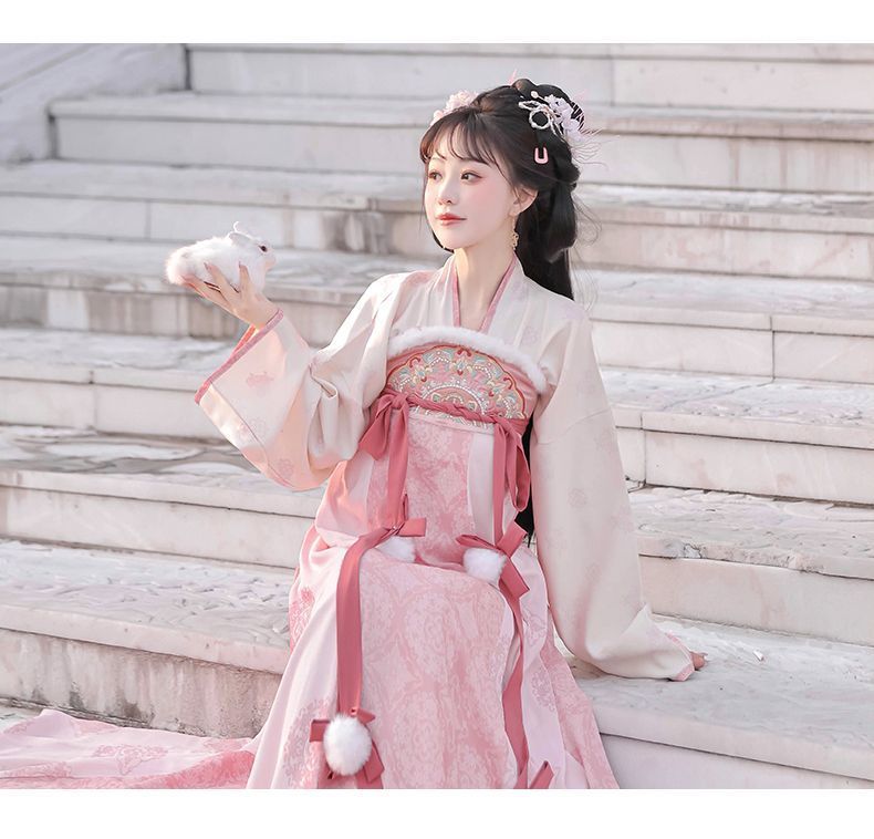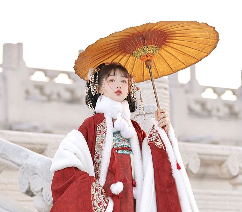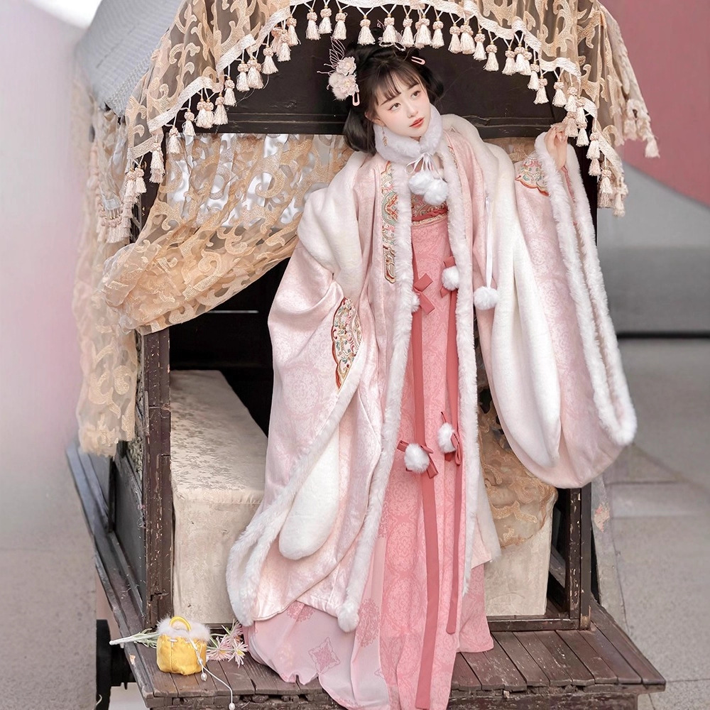 冬季毛呢汉服2026新款绣花大袖衫原创齐胸破裙唐风汉元素拜年套装