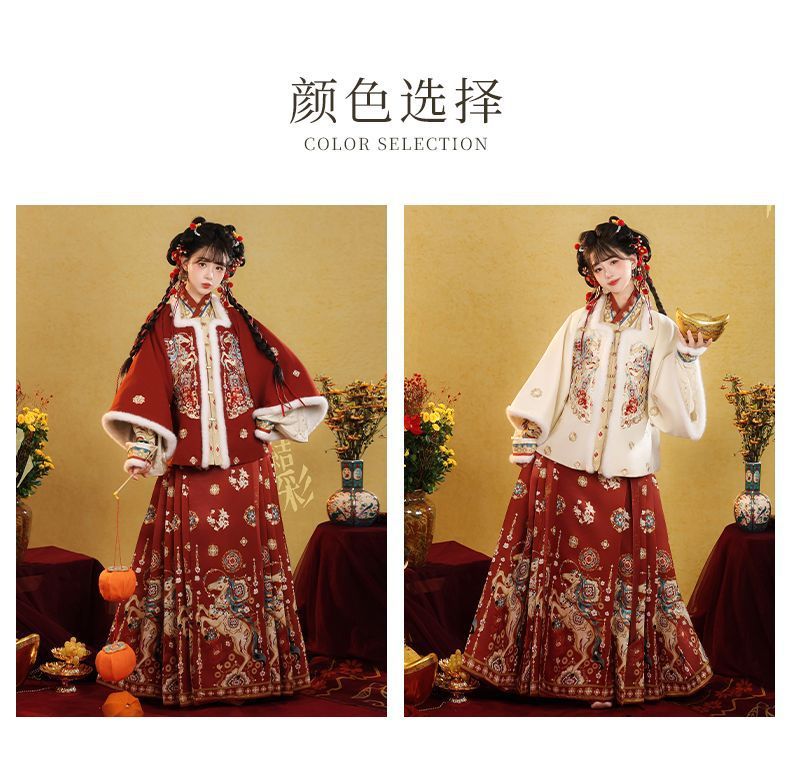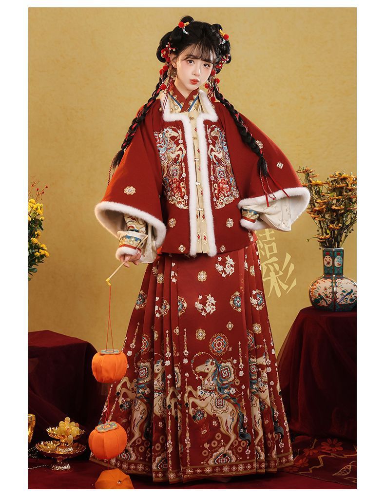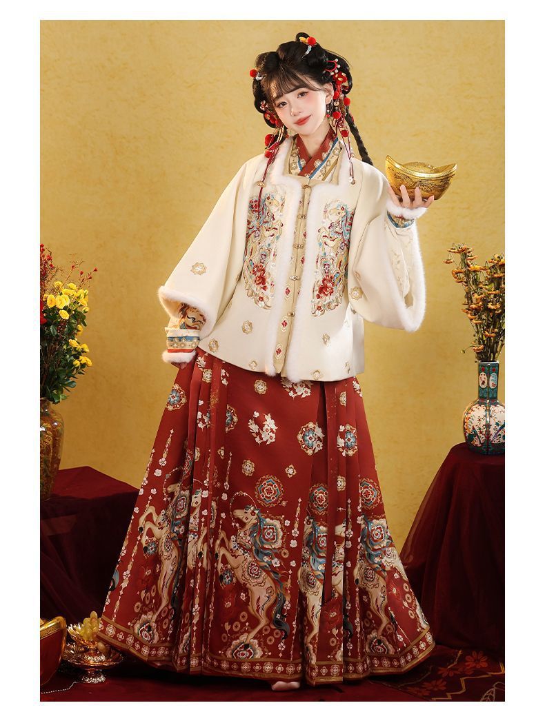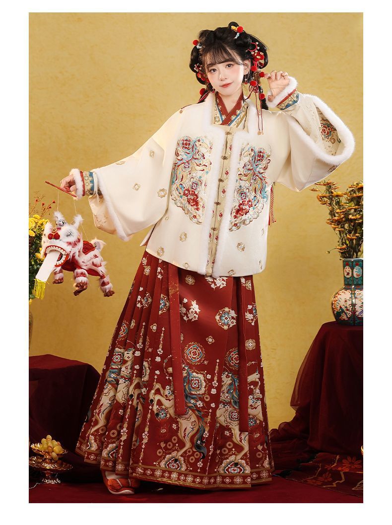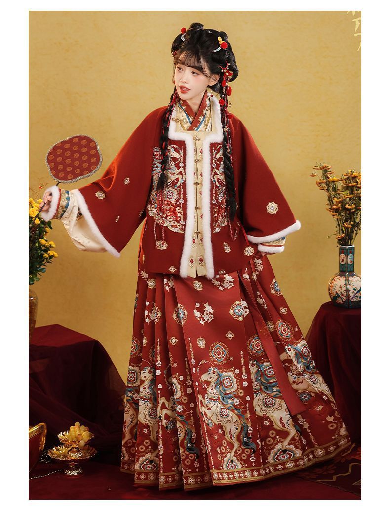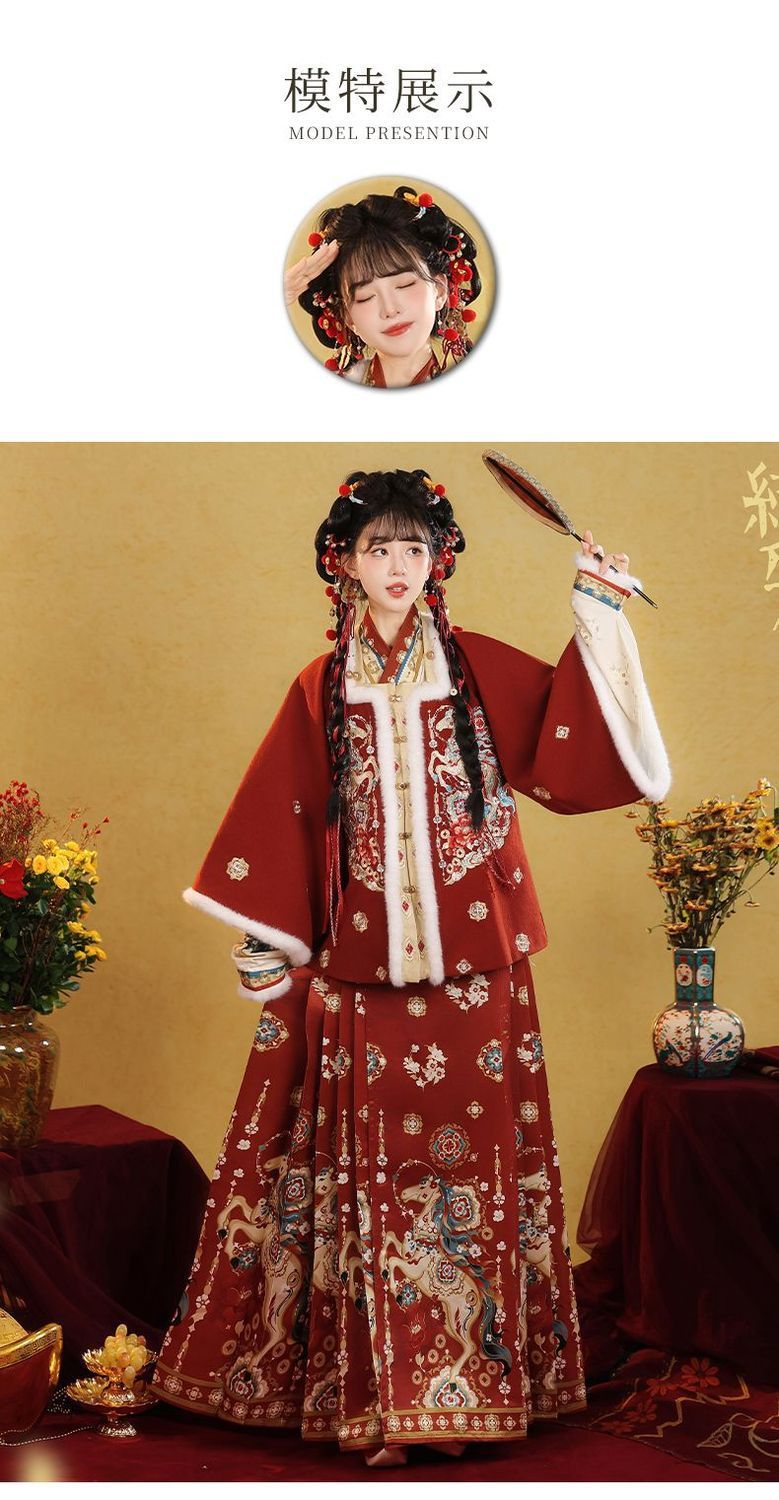 原创汉服女2026新款明制马面裙新中式拜年服加绒加厚日常套装