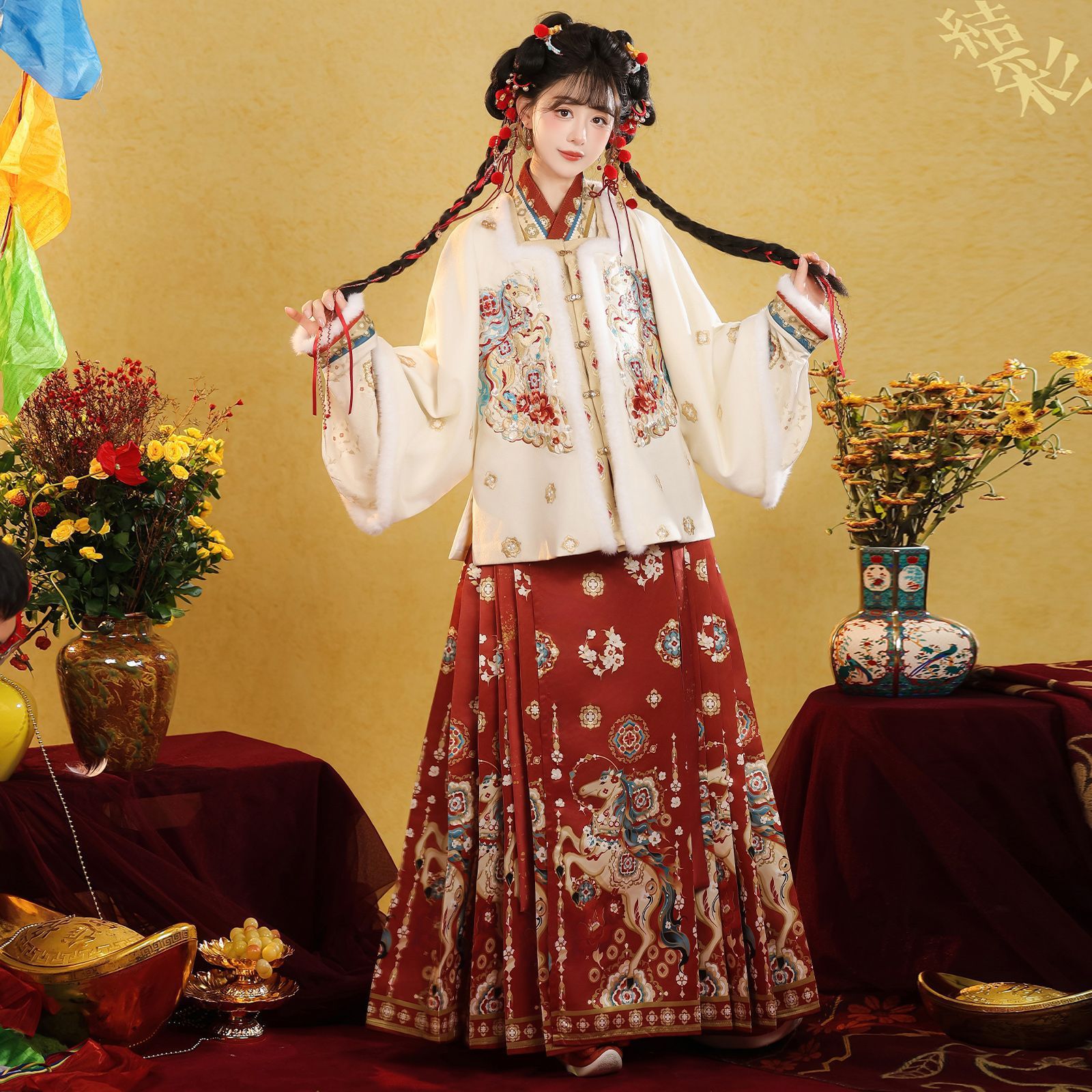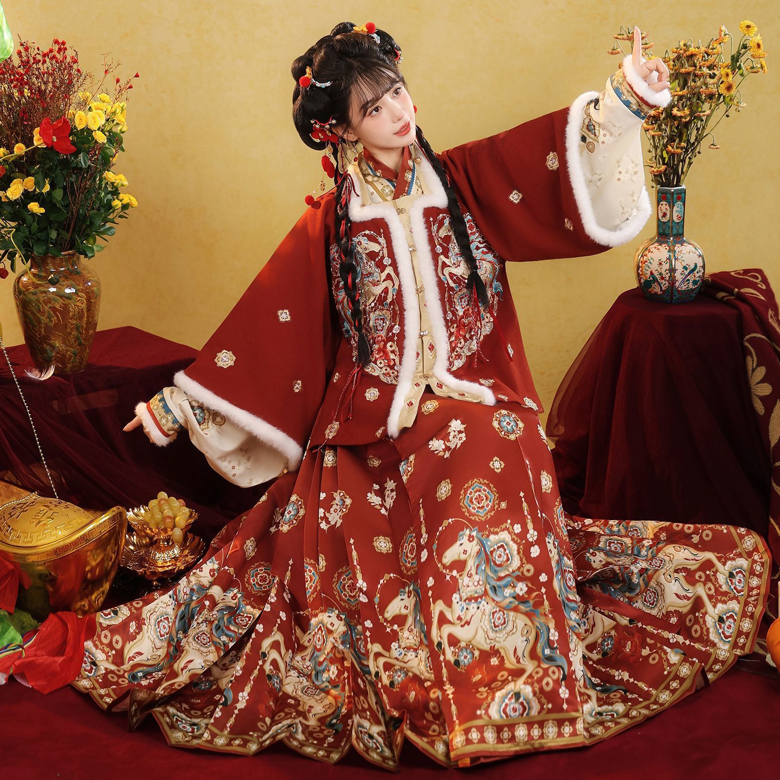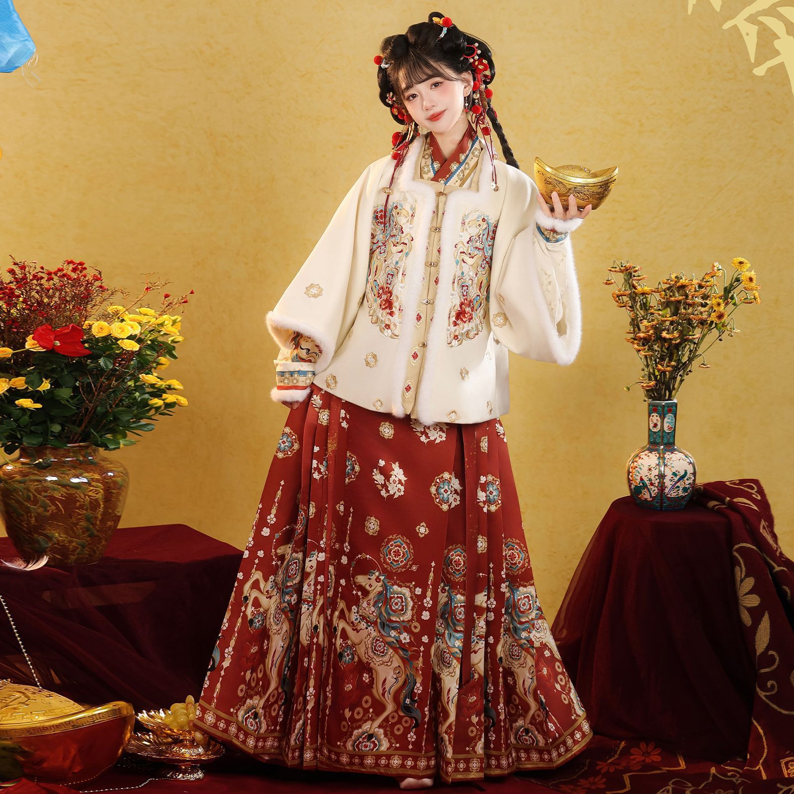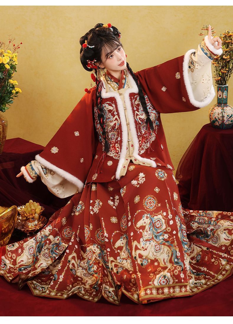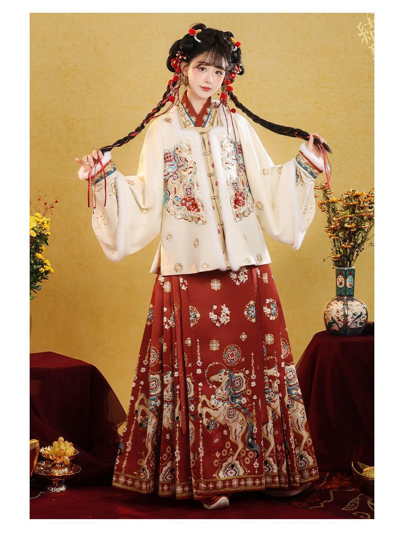 原创汉服女2026新款明制马面裙新中式拜年服加绒加厚日常套装