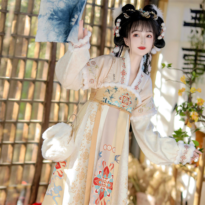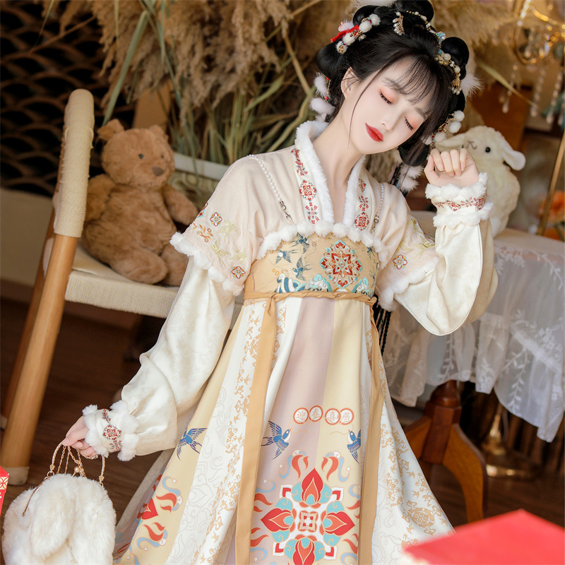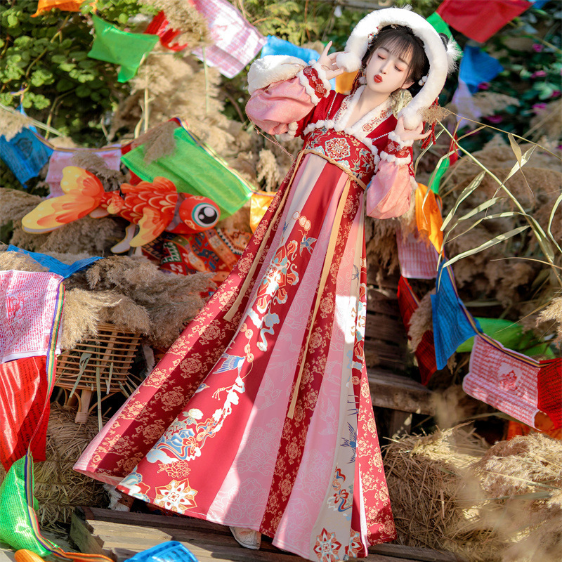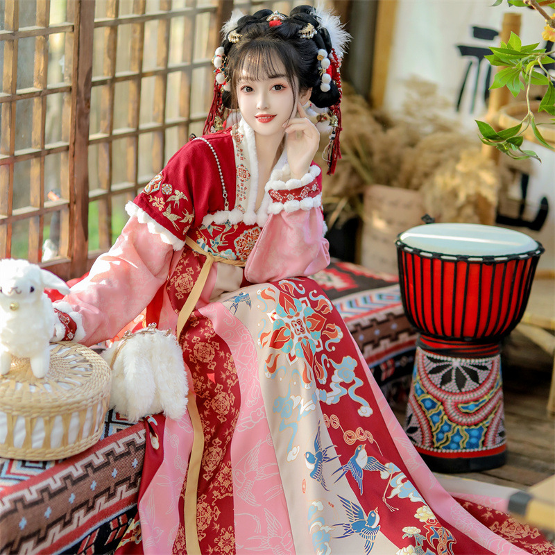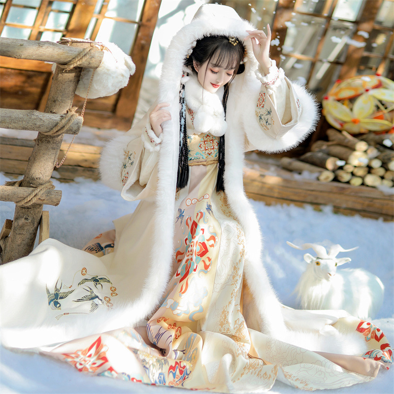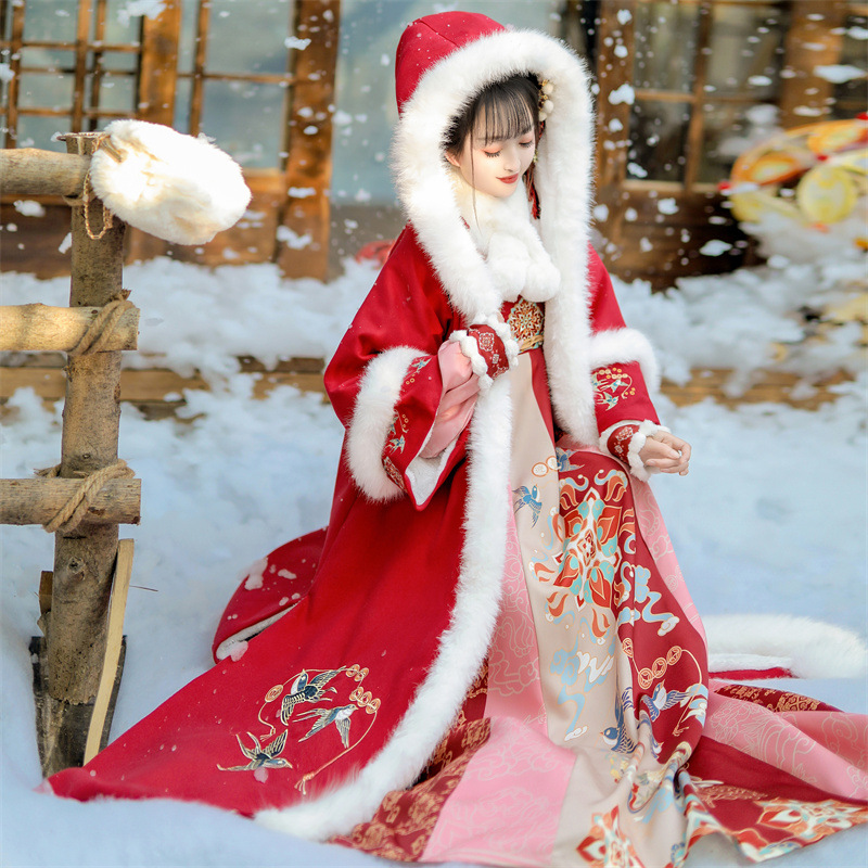 原创齐胸汉服女2025新款秋冬季加厚唐制襦裙斗篷过年日常通勤古装