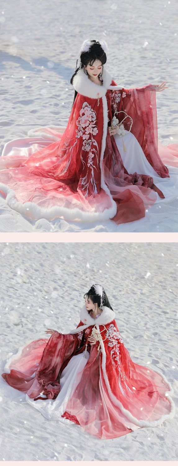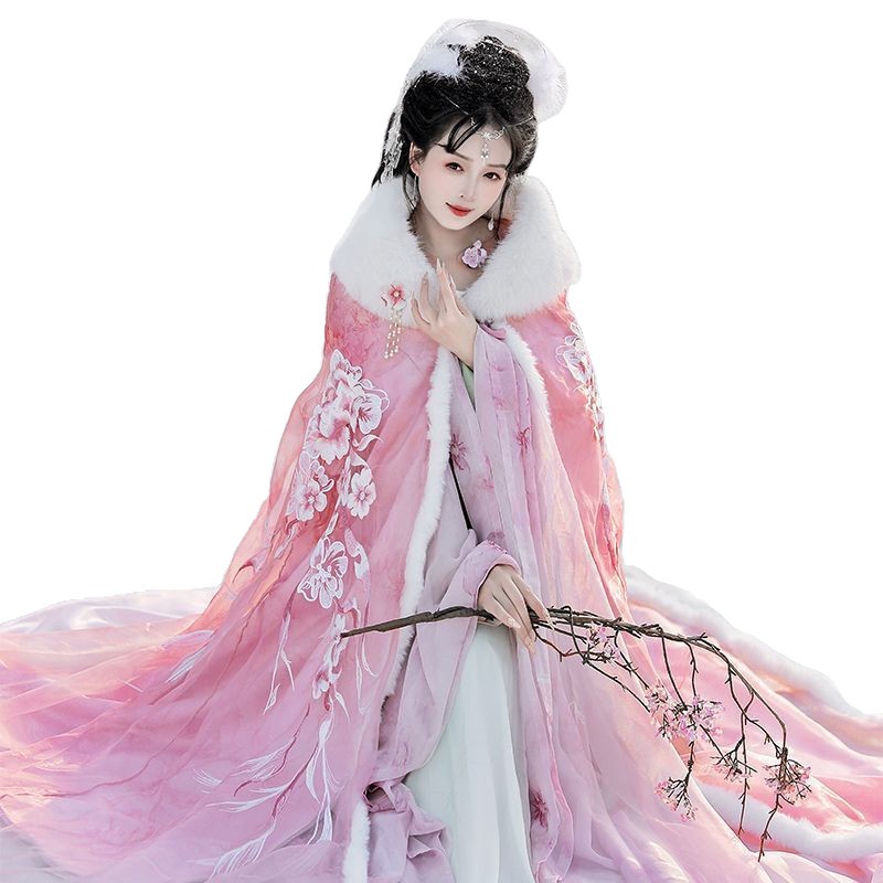 正版原创汉服女2025新款仙女交领齐腰裙仙气加绒保暖披风斗篷古装