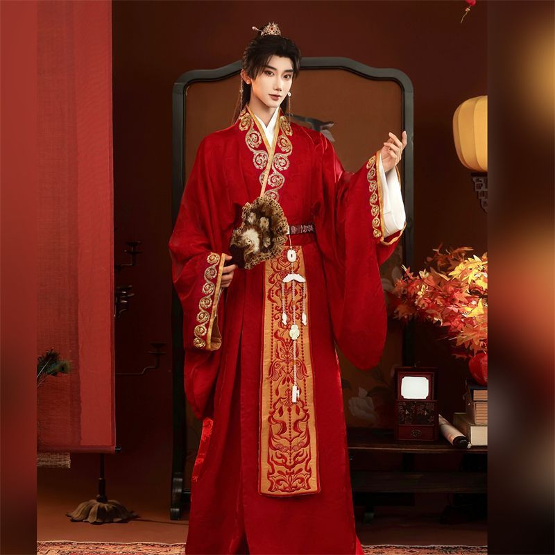 正版原创汉服2025新款婚服改良战国袍刺绣手工钉珠拖尾订婚结婚服