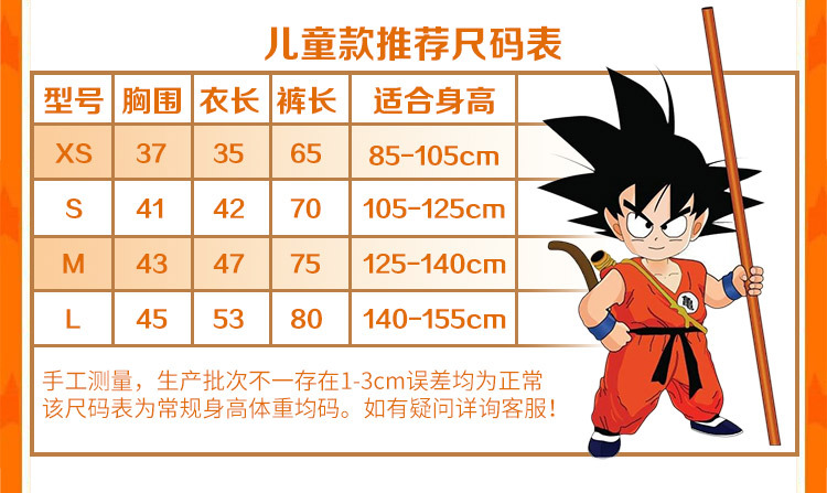 七龙珠cosplay儿童孙悟空服装动漫龟派气功超级赛亚人假发演出服