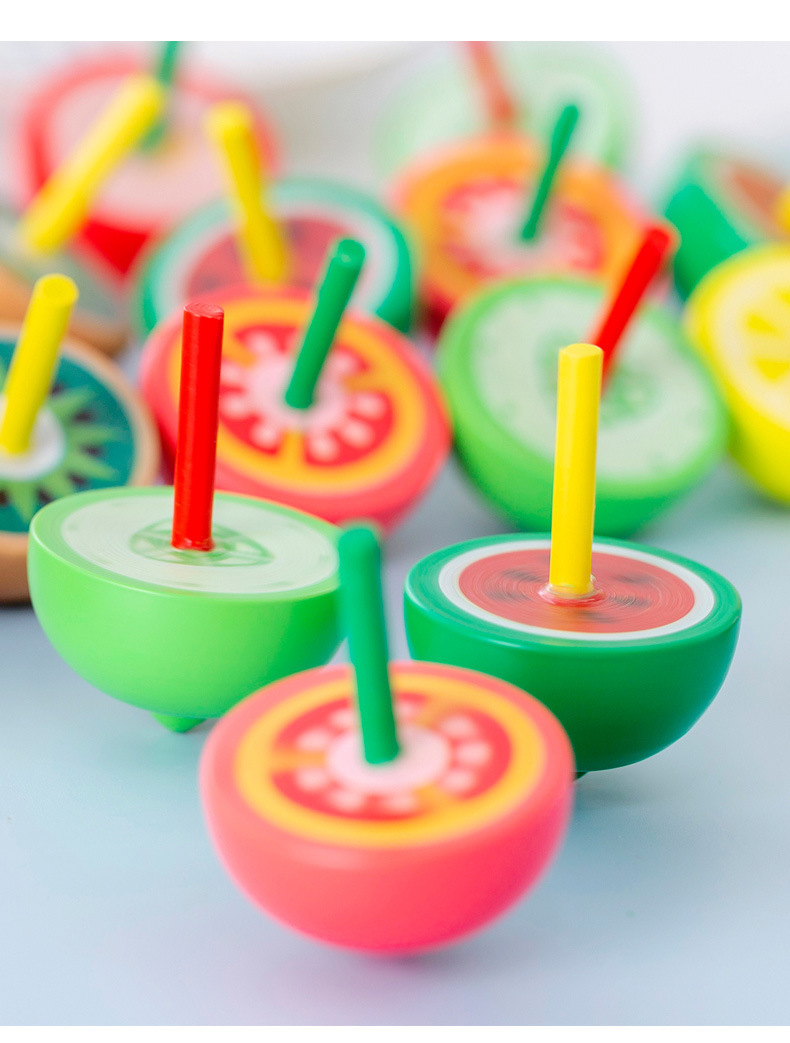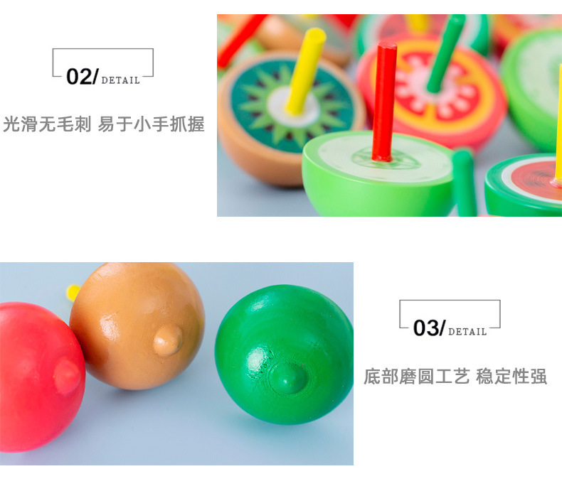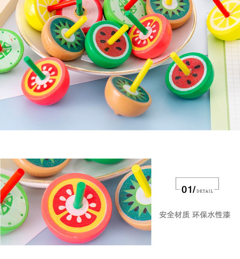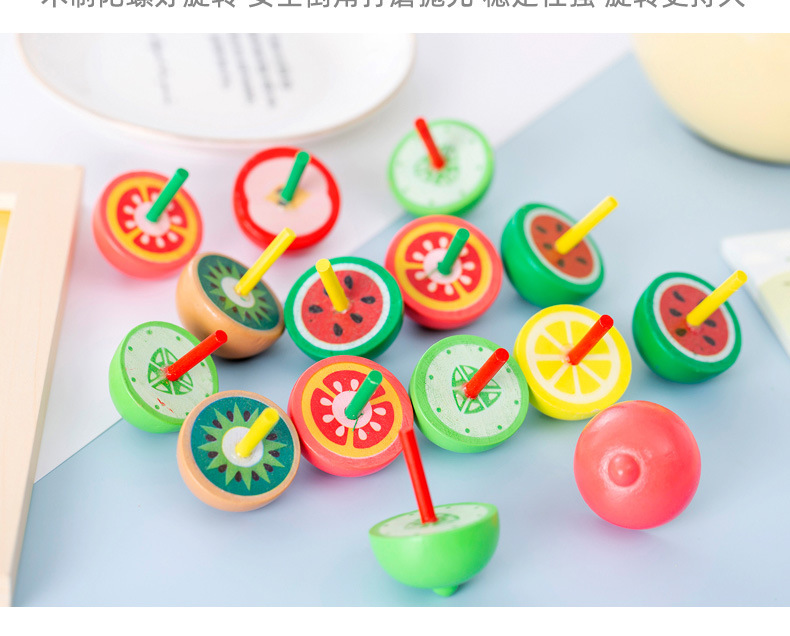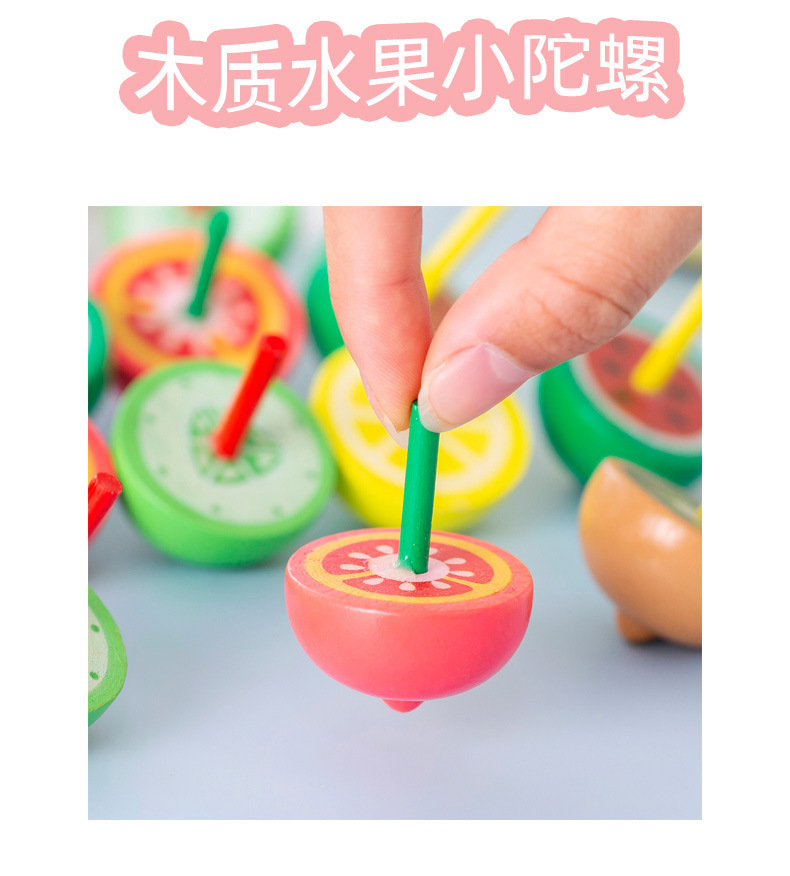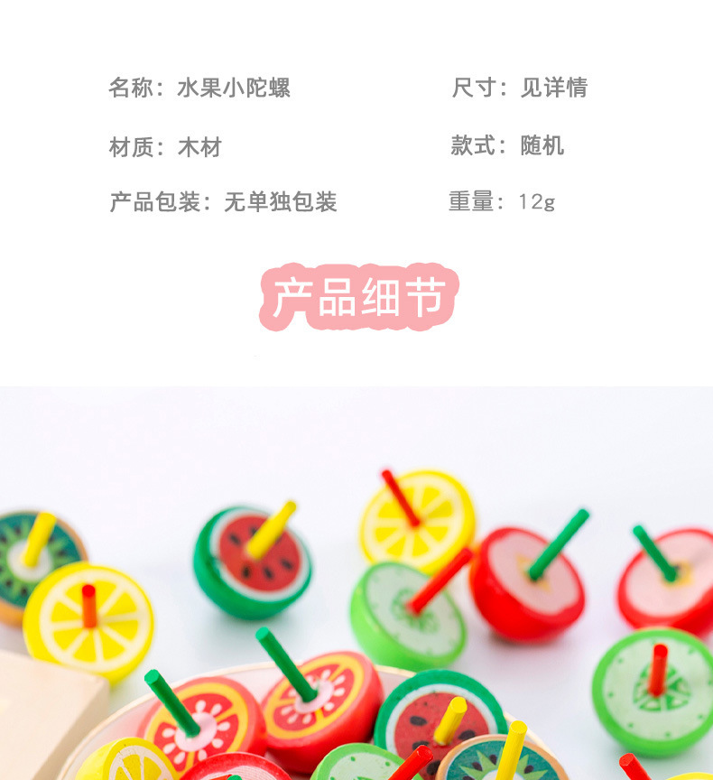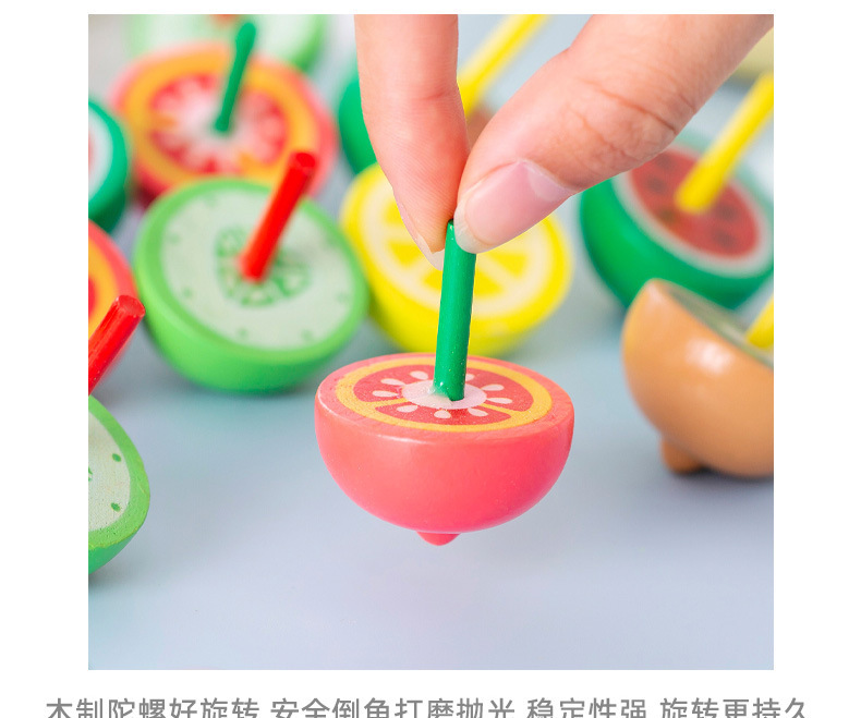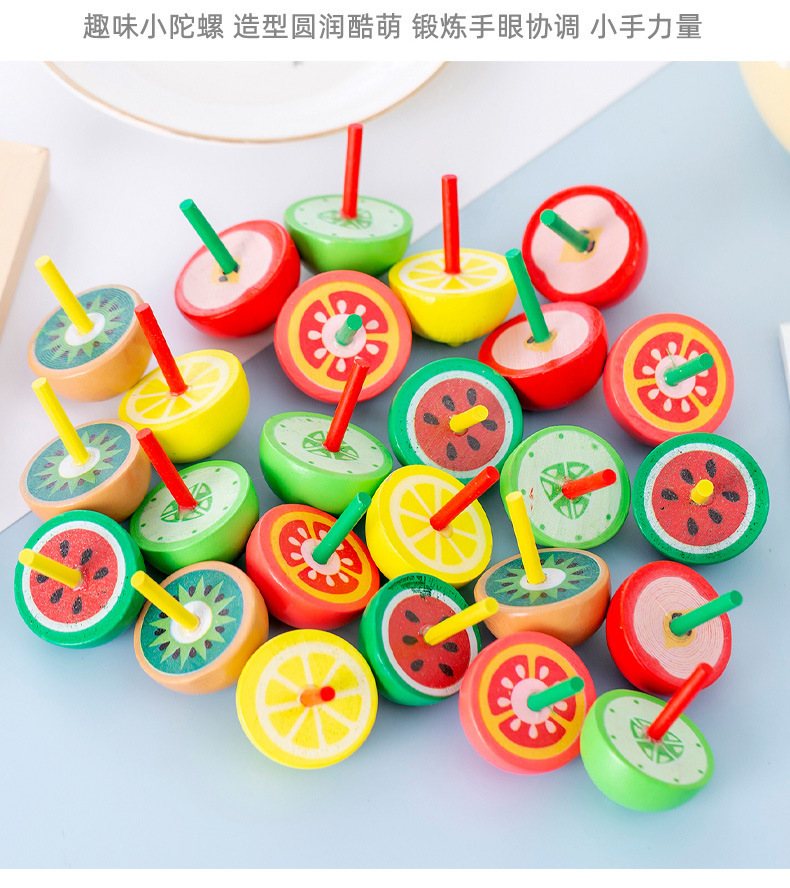 彩色木制水果小陀螺传统怀旧儿童卡通木质幼儿园玩具木质陀螺