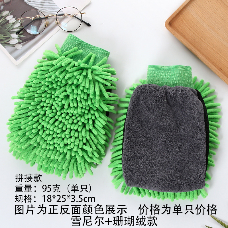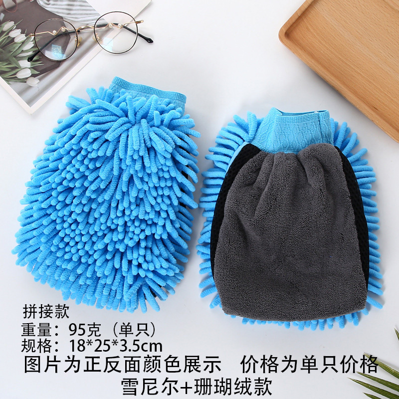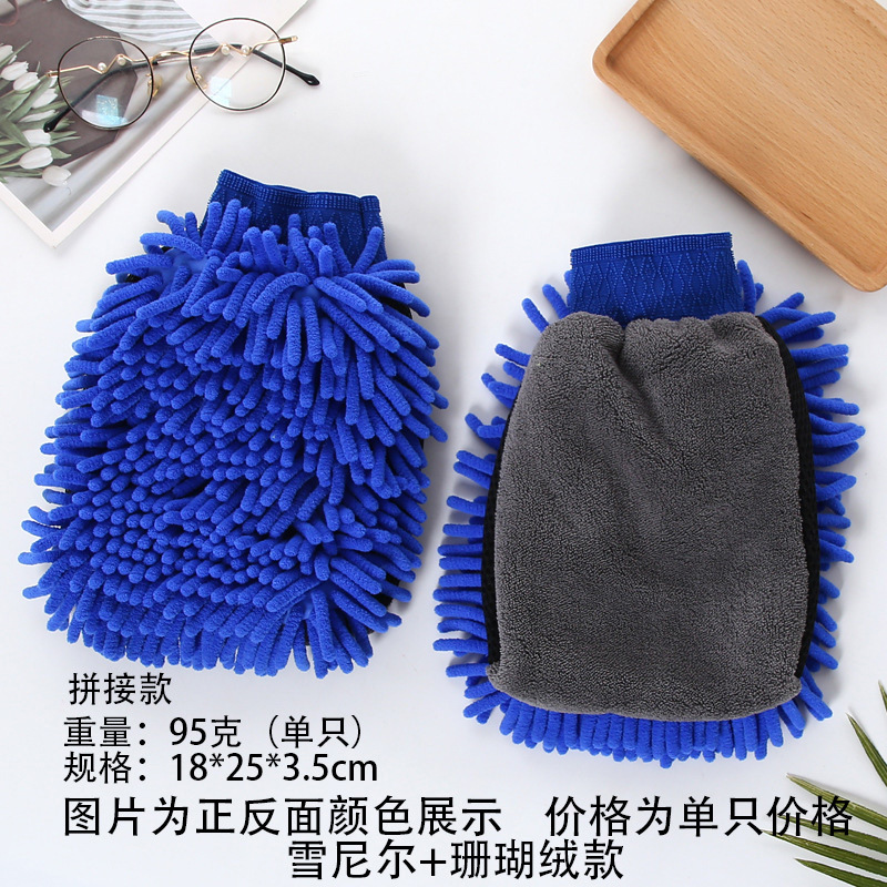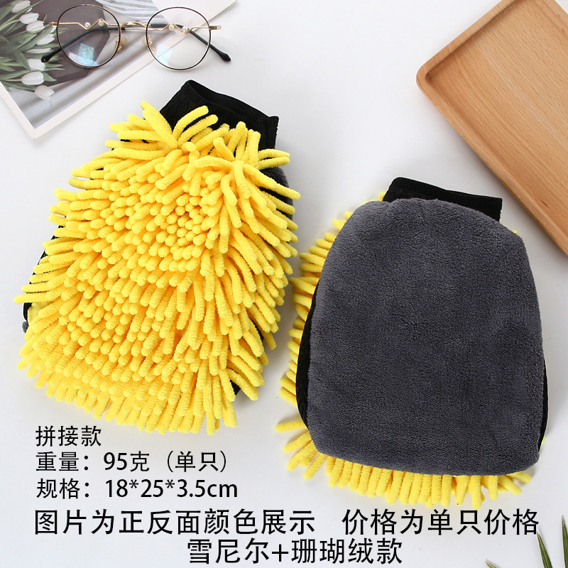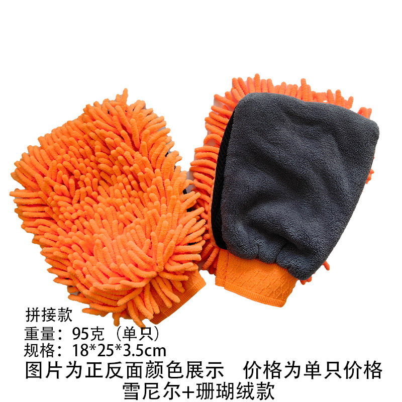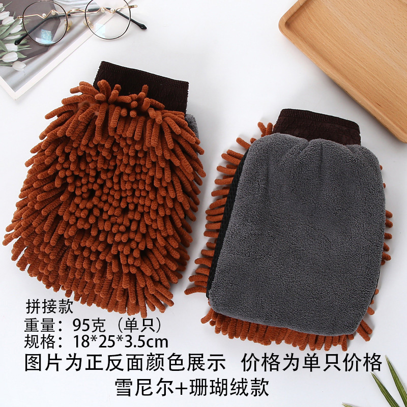 鑫势利加厚雪尼尔洗车手套珊瑚绒打沫手套长绒单面双面擦车手套