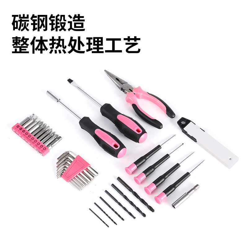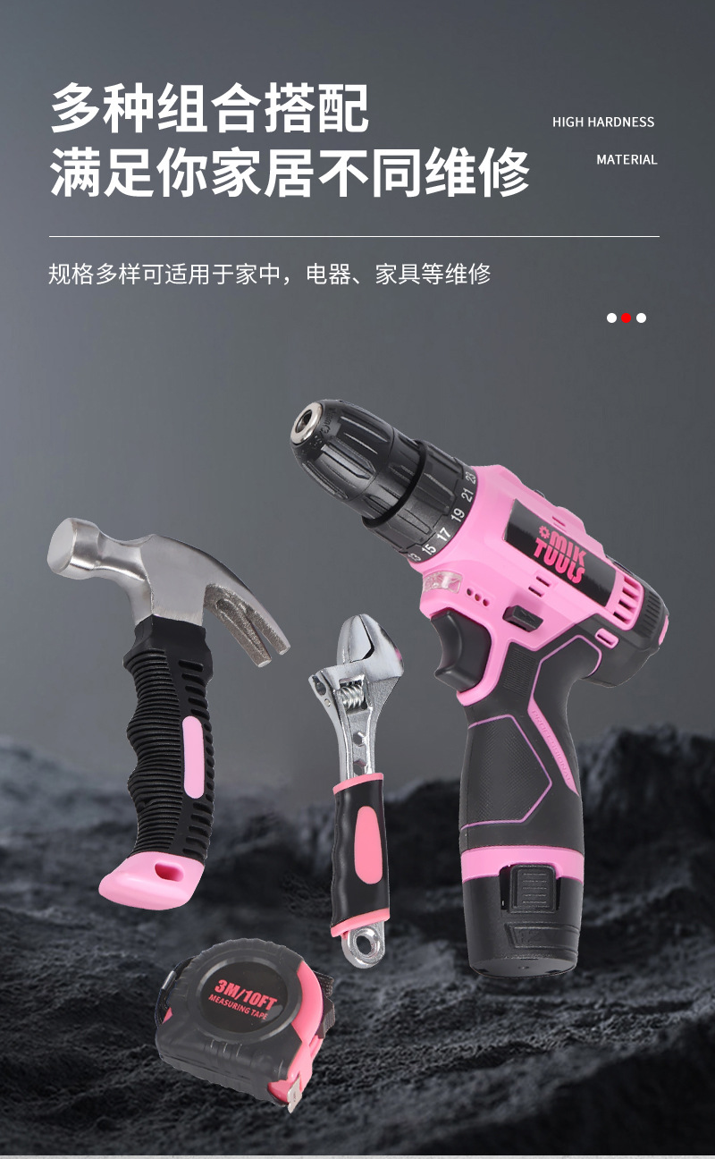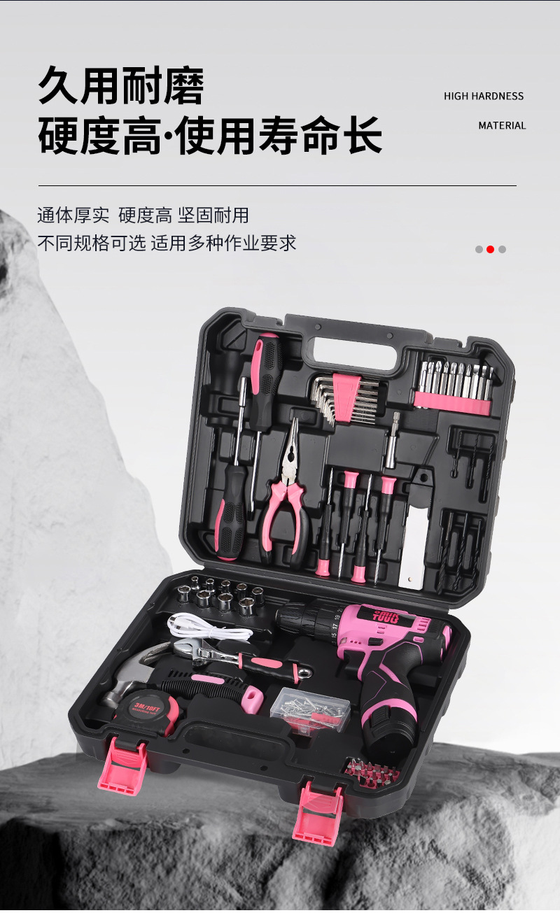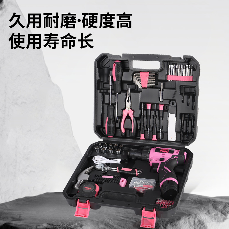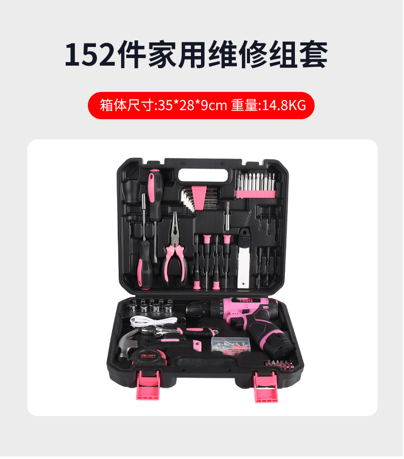 152件套电动螺丝刀扳手维修工具箱 家用粉色多功能电动工具组套