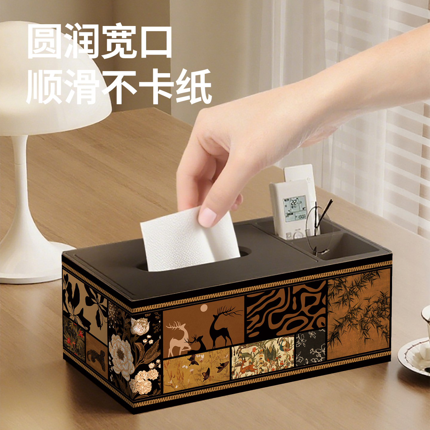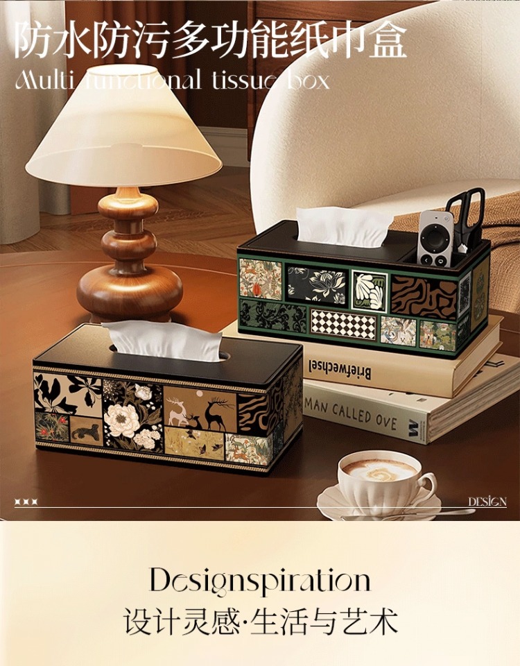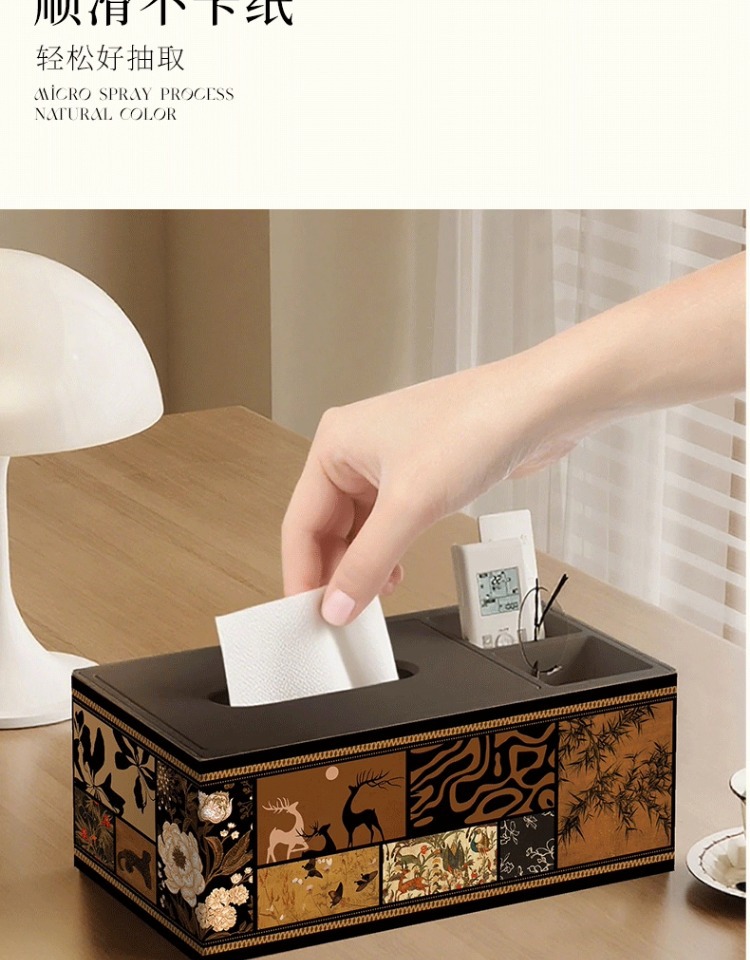 轻奢中古风纸巾盒客厅遥控器收纳盒茶几纸抽盒酒店商用高档抽纸盒