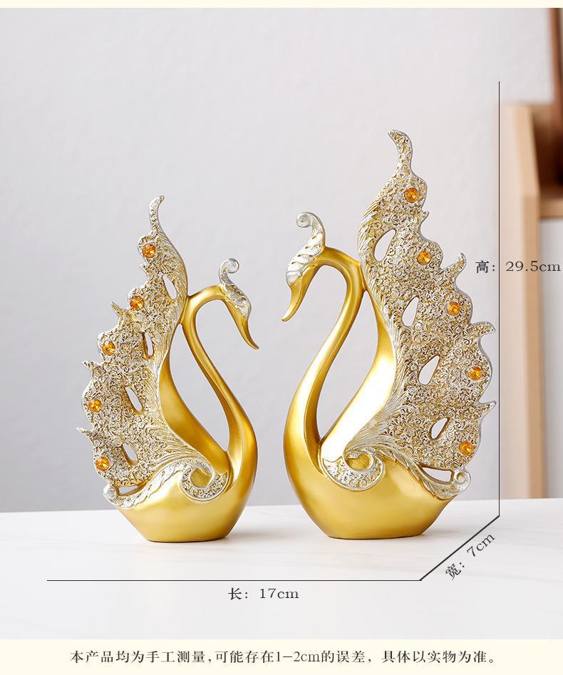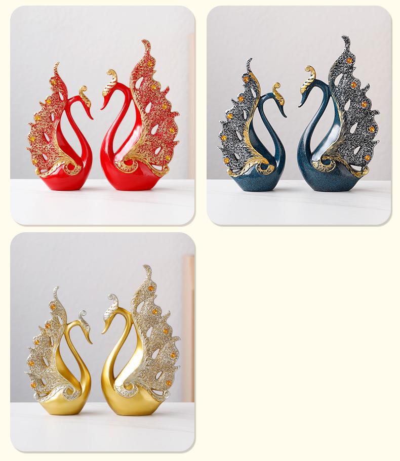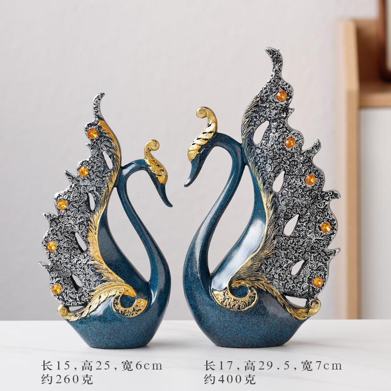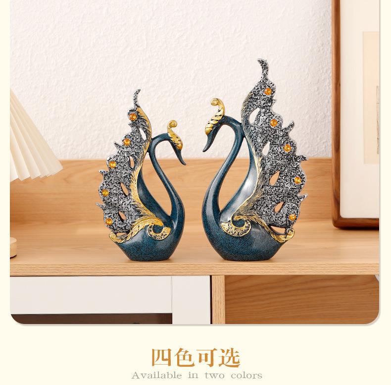 情侣天鹅家居客厅酒柜装饰品摆件中式轻奢创业办公室树脂工艺品