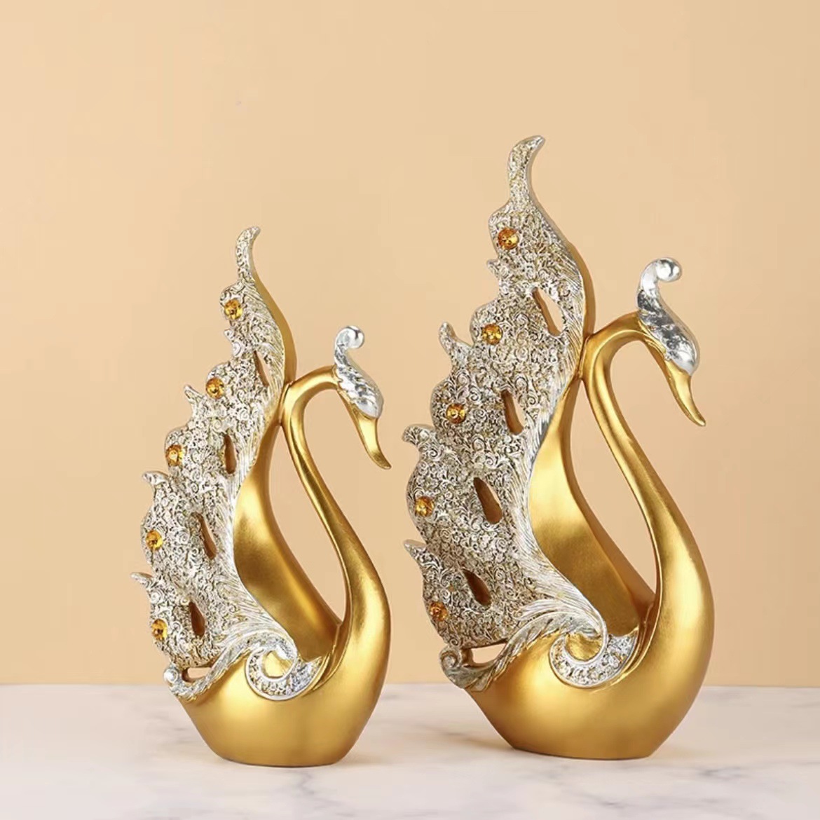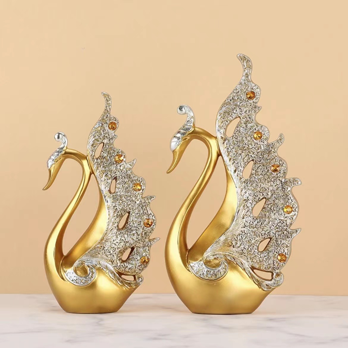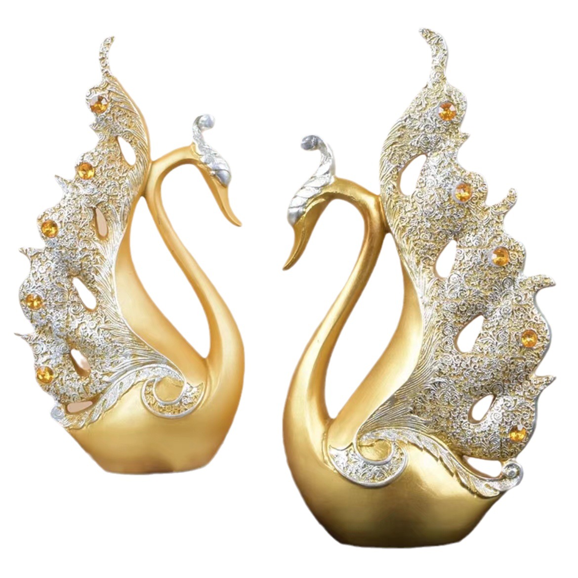 情侣天鹅家居客厅酒柜装饰品摆件中式轻奢创业办公室树脂工艺品