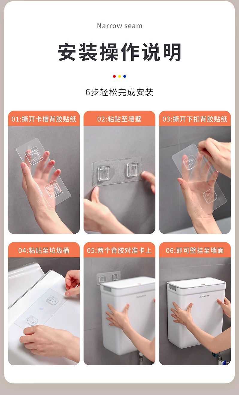 佳帮手窄缝壁挂式垃圾桶卫生间带盖2024新款家用厕所厨房客厅专用