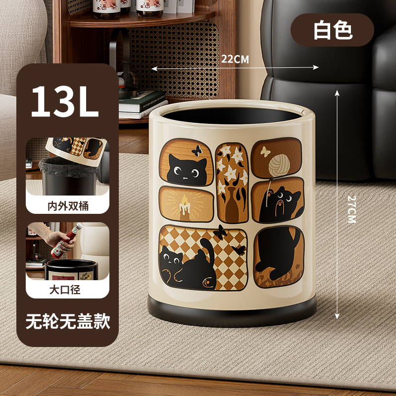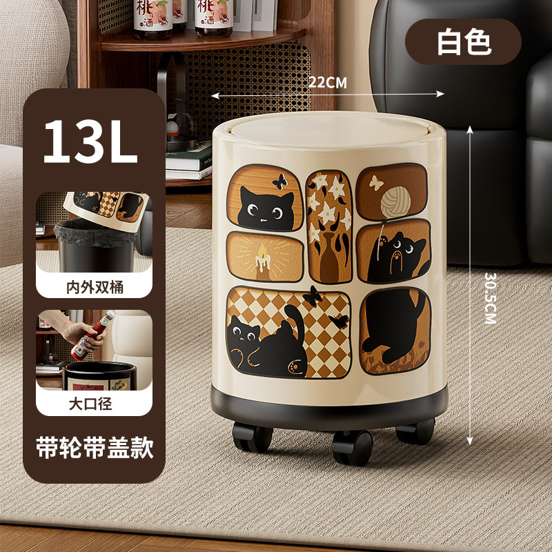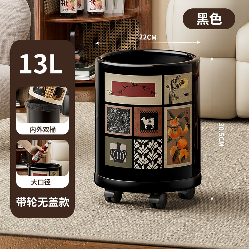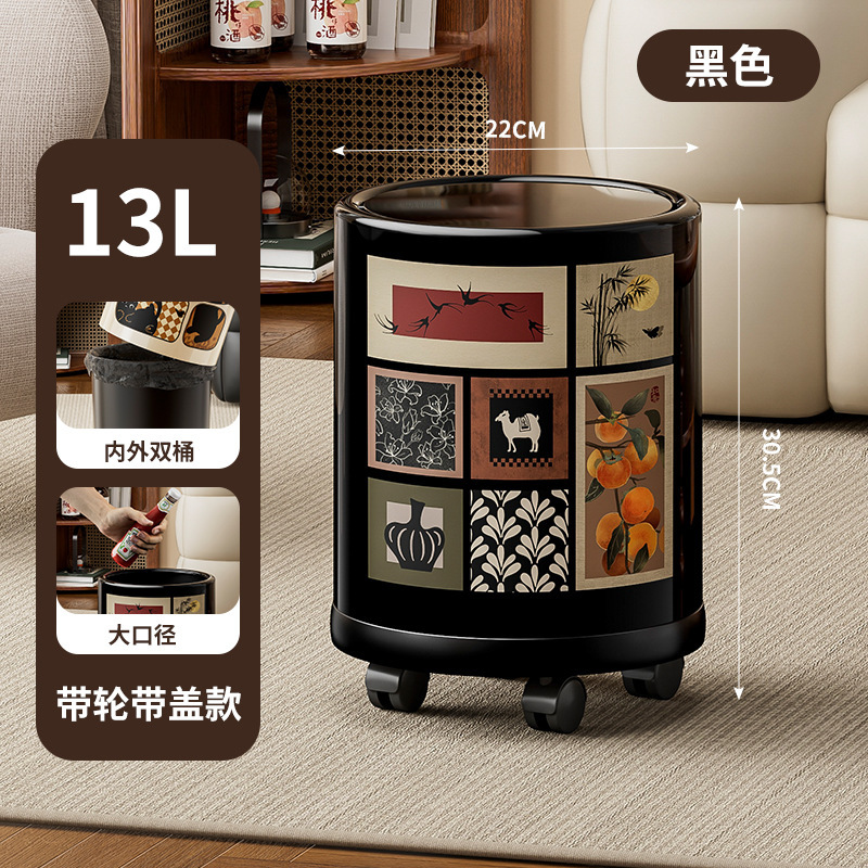 中古风高颜值垃圾桶家用复古客厅大容量高颜值卧室带轮子盖纸篓