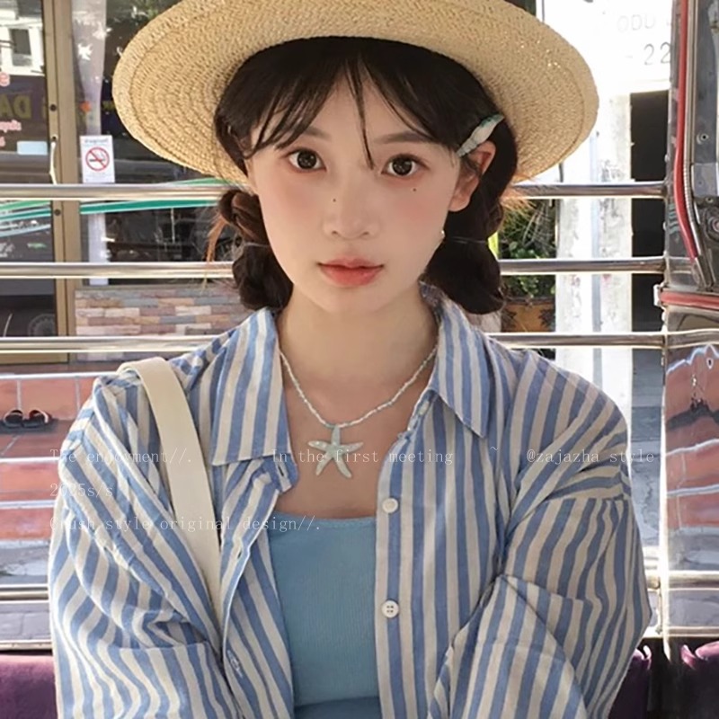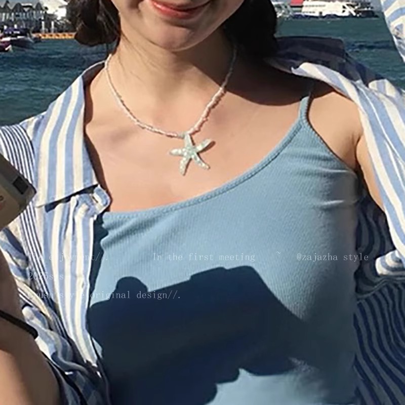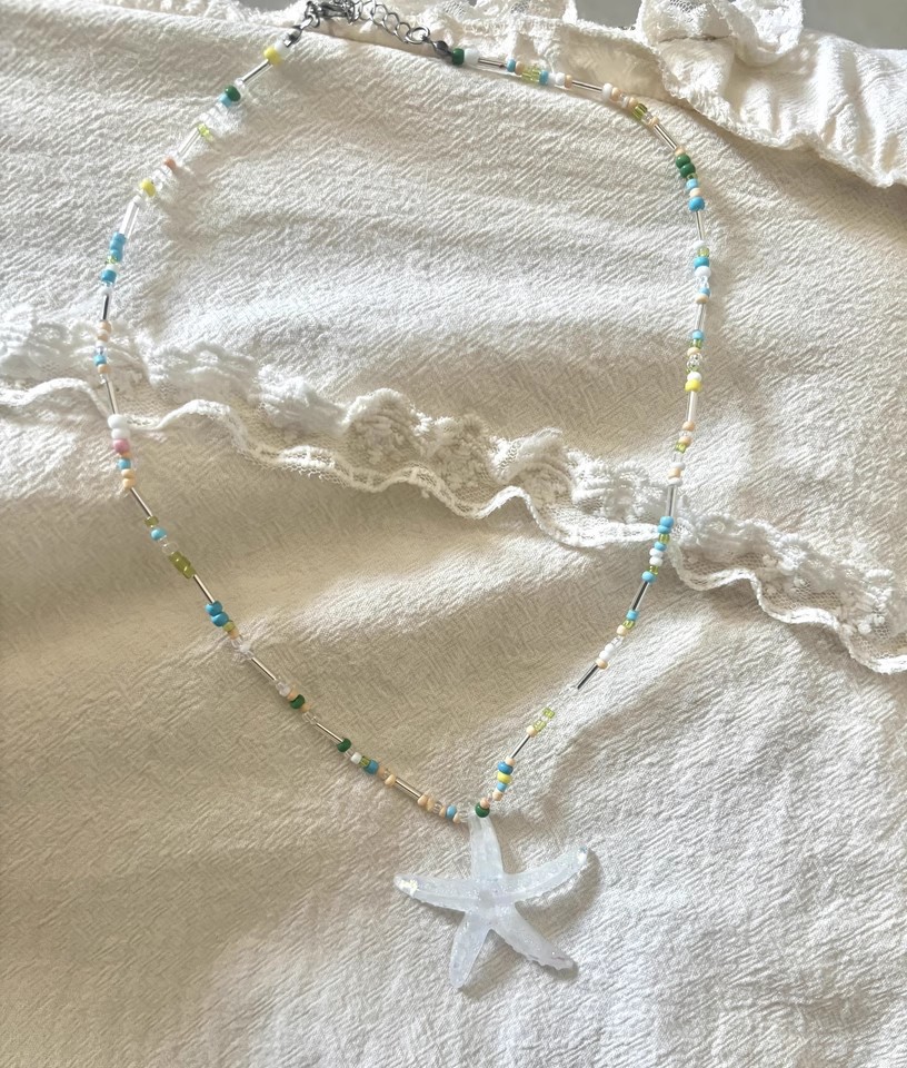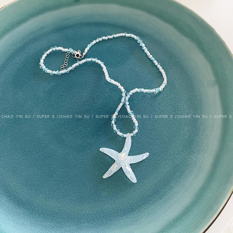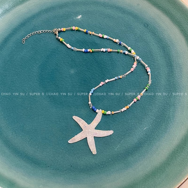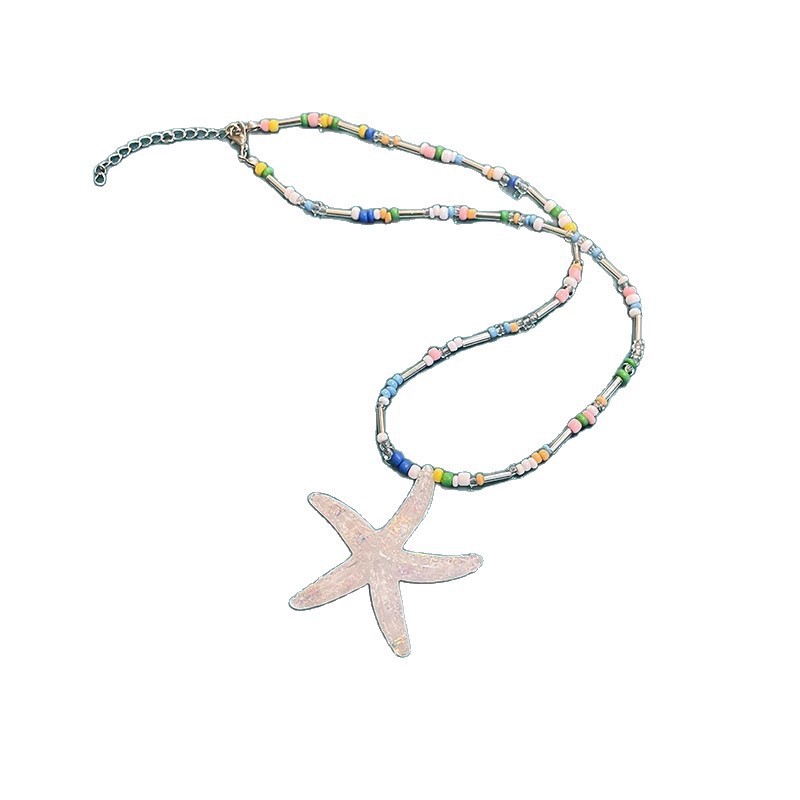 夏日爆款海星多巴胺串珠项链女小众海边度假风锁骨链清新可爱配饰