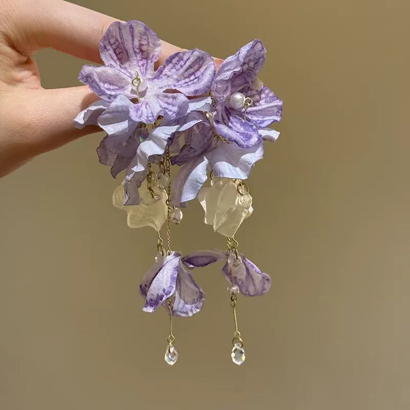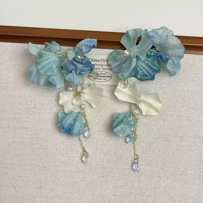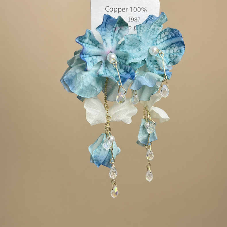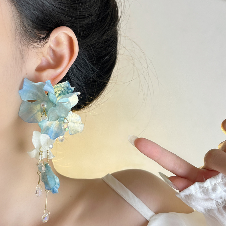 蓝色花朵夸张流苏耳环女款春夏超仙独特漂亮耳坠海边度假风耳饰品