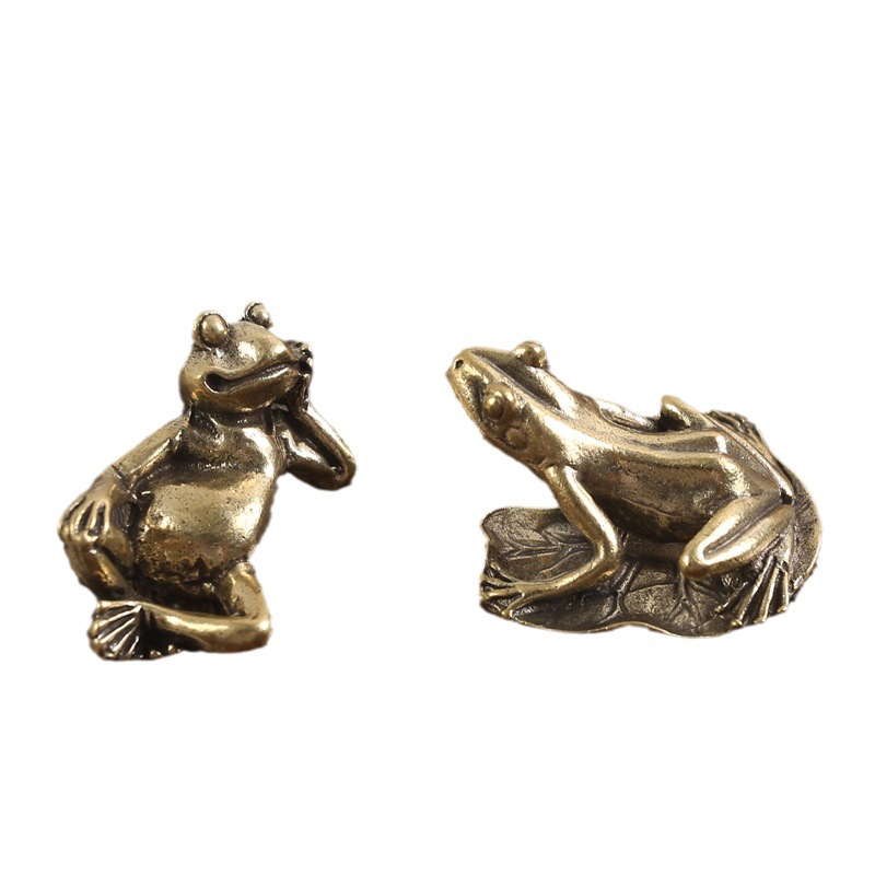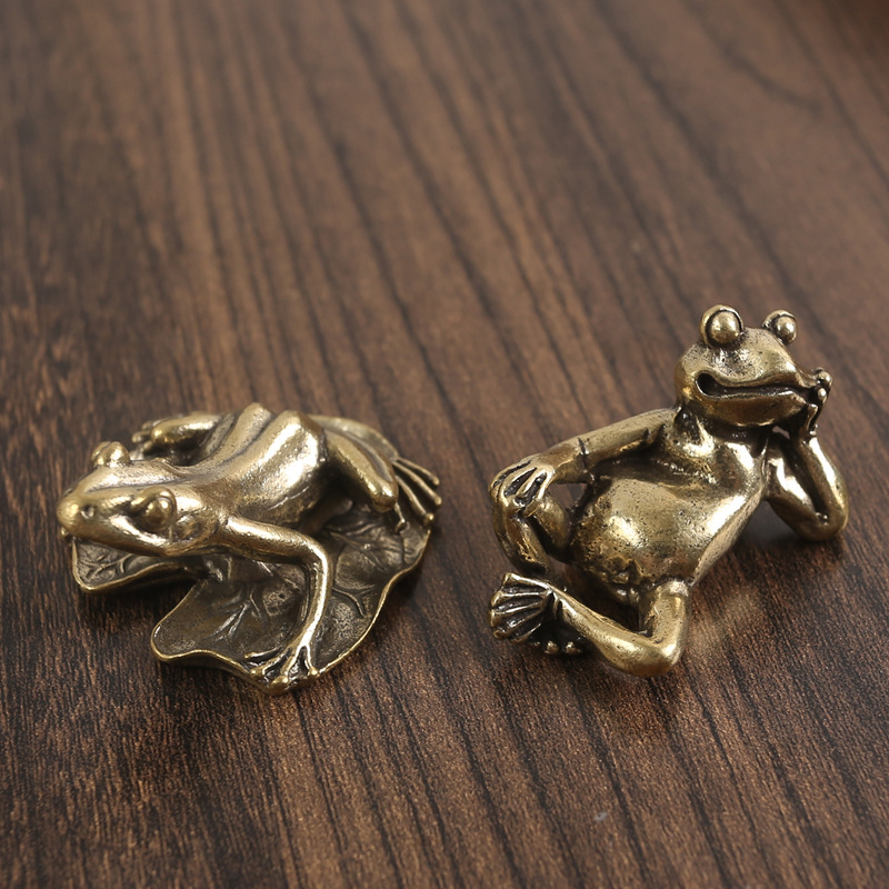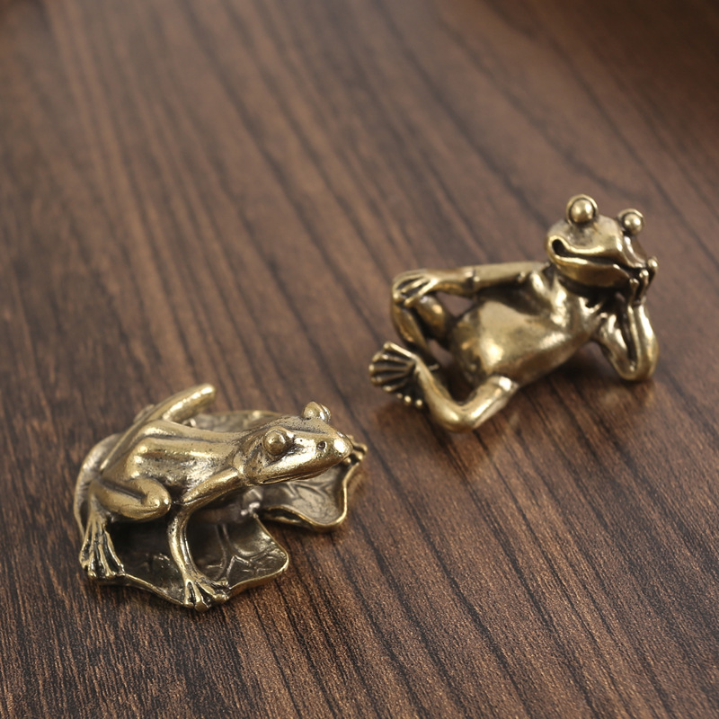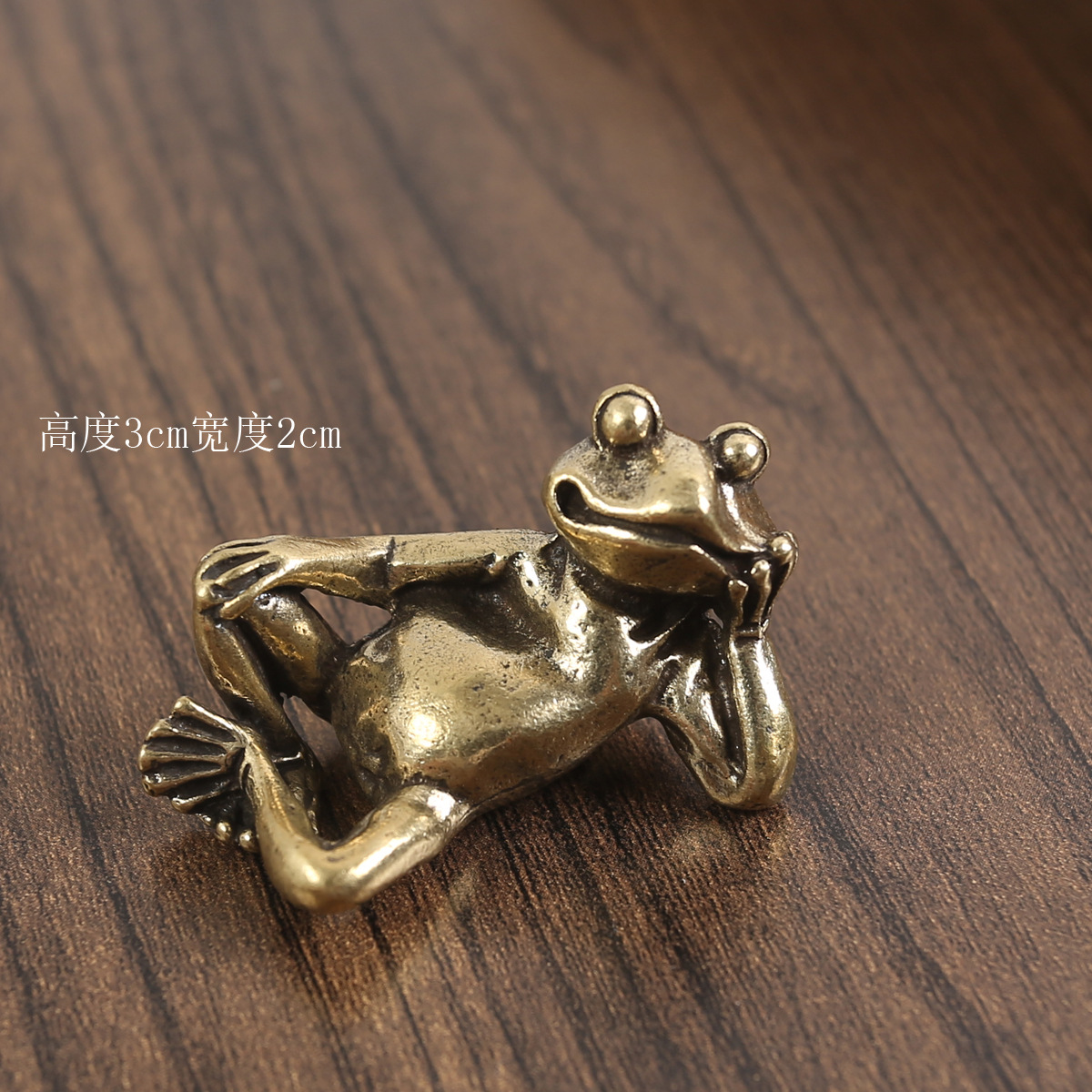 黄铜睡美蛙实心摆件办公室茶桌茶具桌面青蛙茶宠纯黄铜工艺品铜器