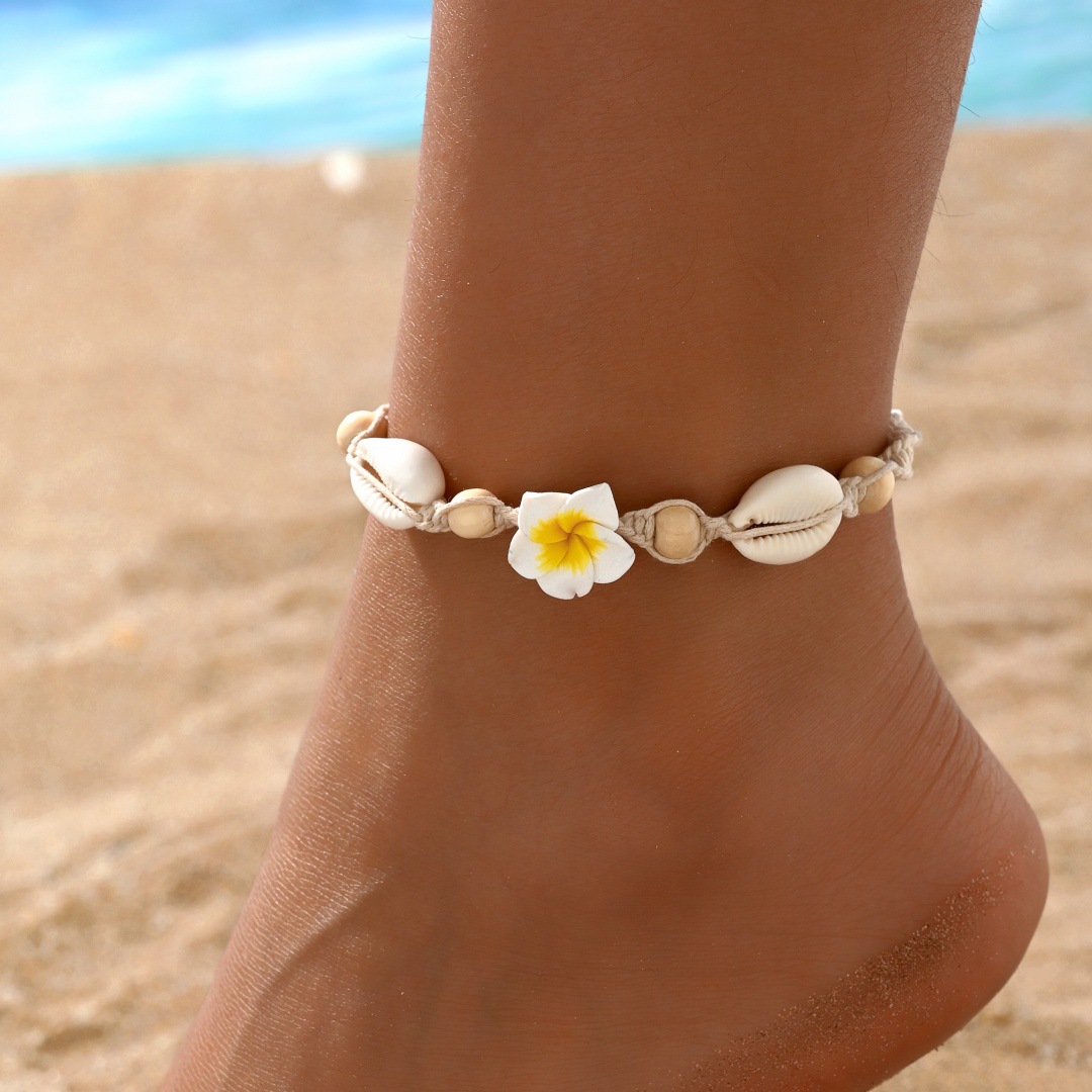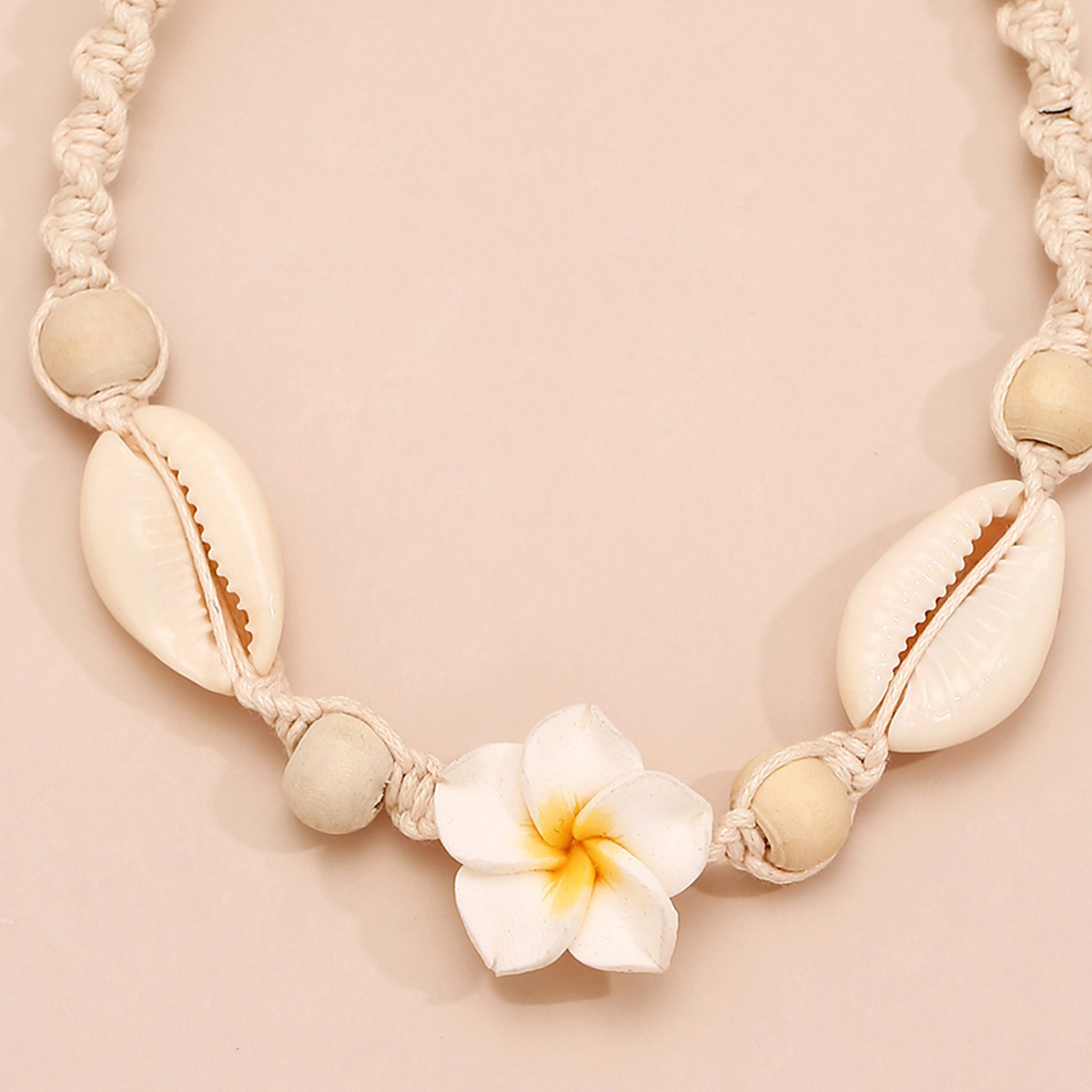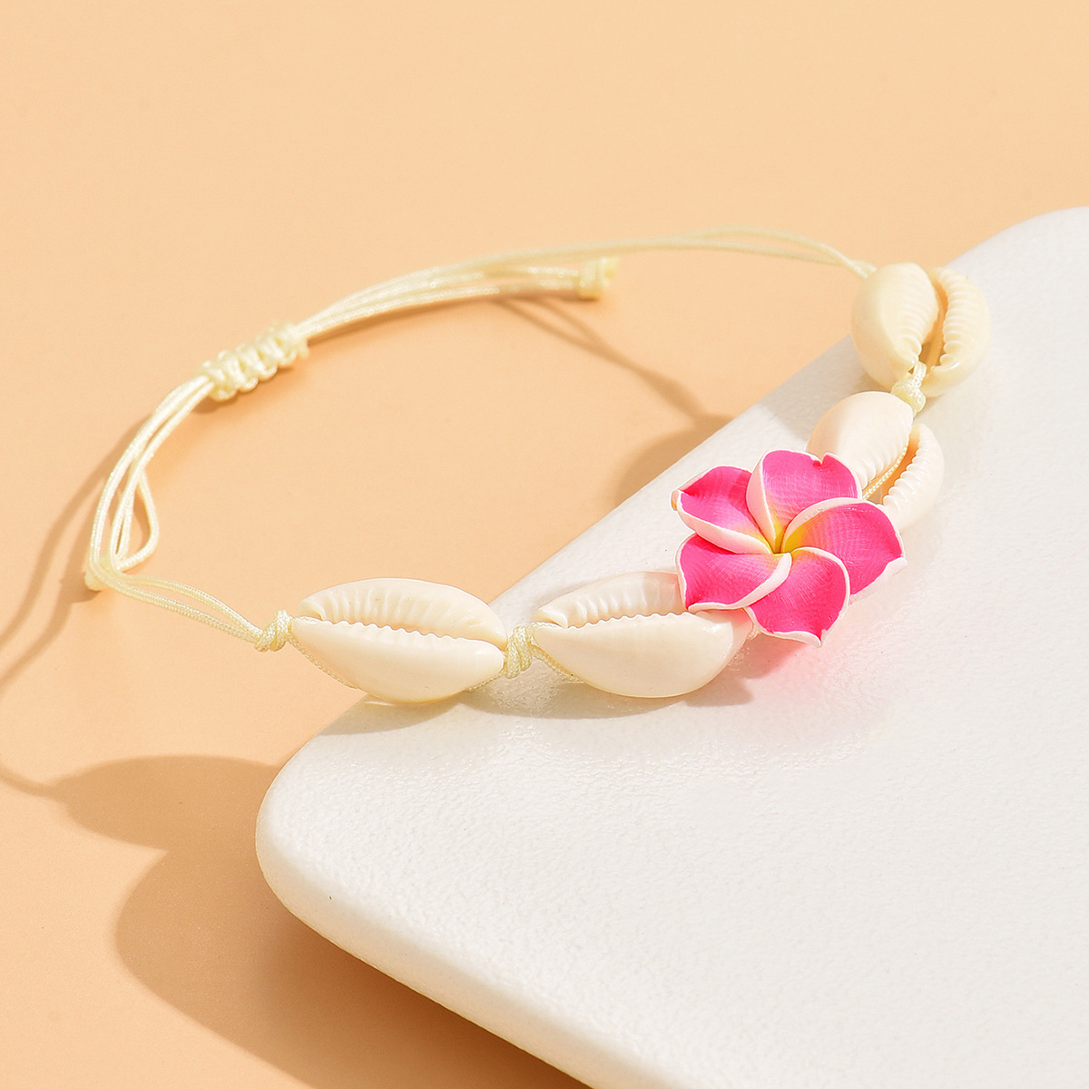 欧美跨境夏日时尚项链软陶花朵贝壳手链编织调节脚链海边度假饰品
