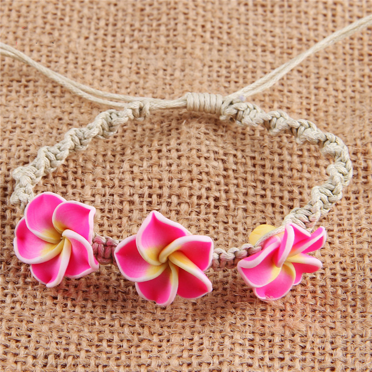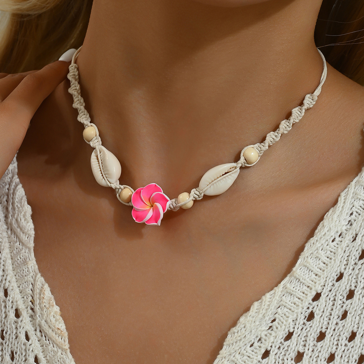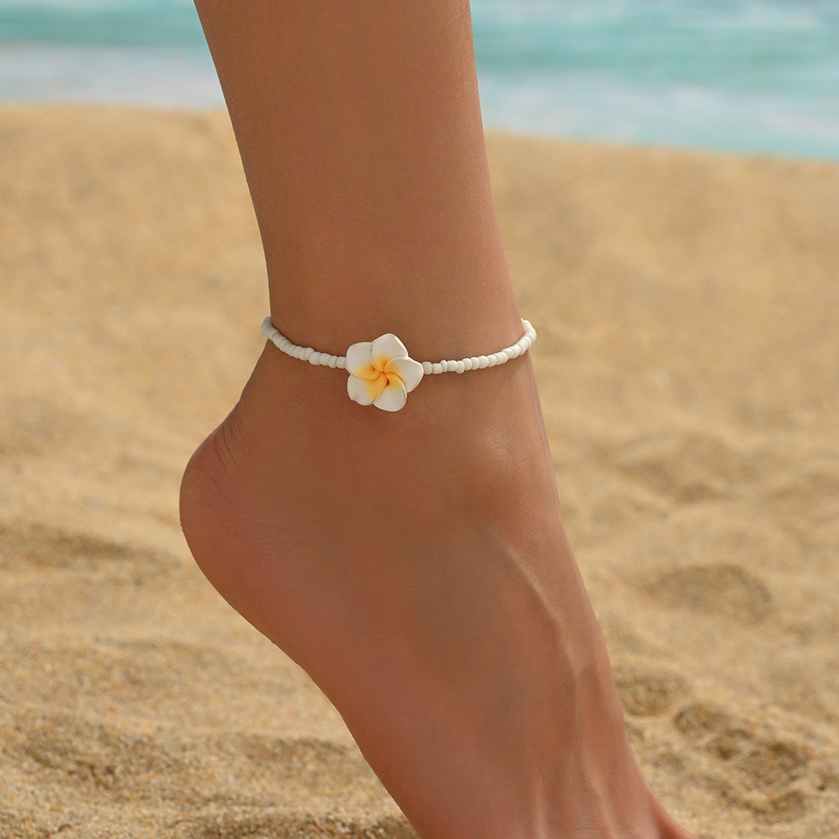 欧美跨境夏日时尚项链软陶花朵贝壳手链编织调节脚链海边度假饰品