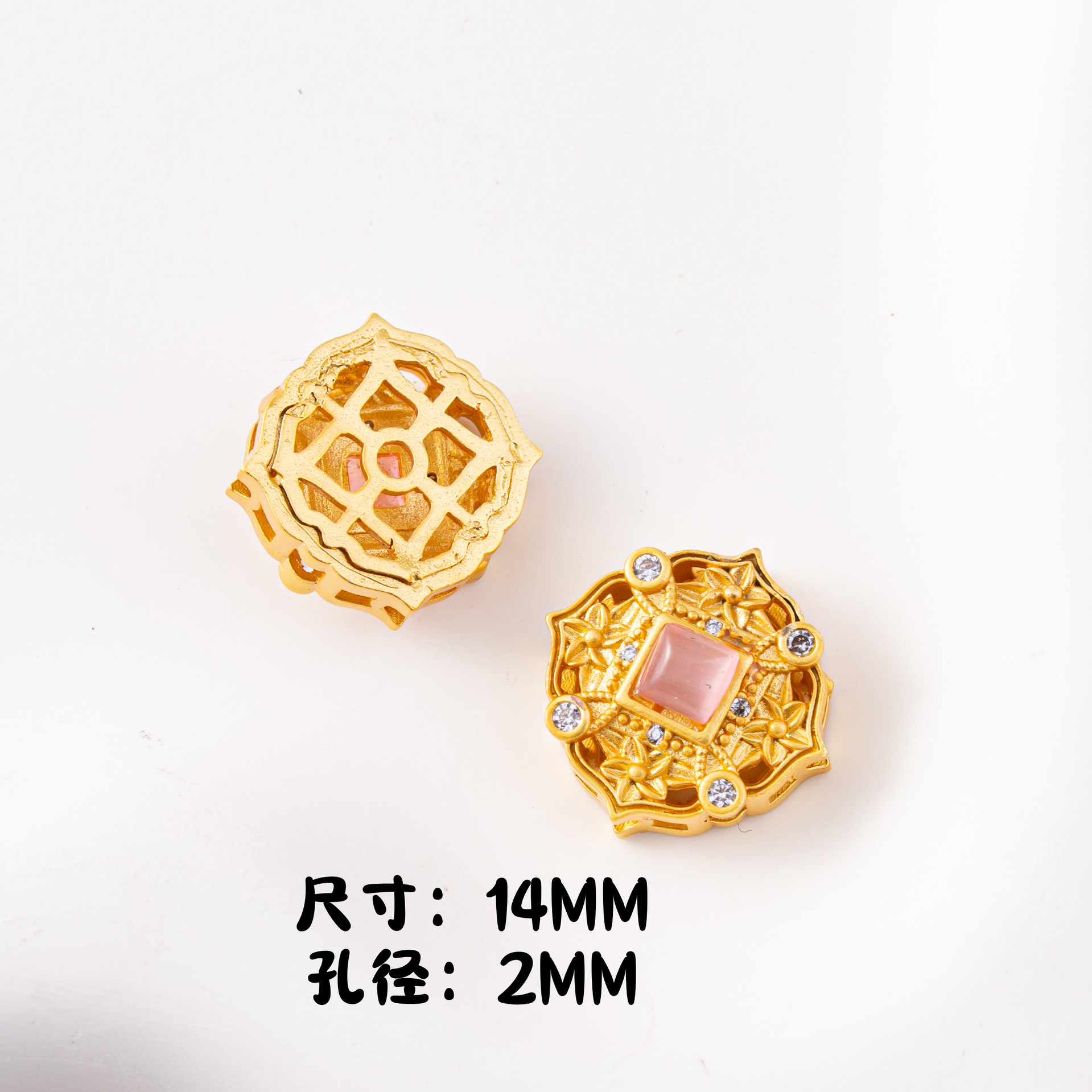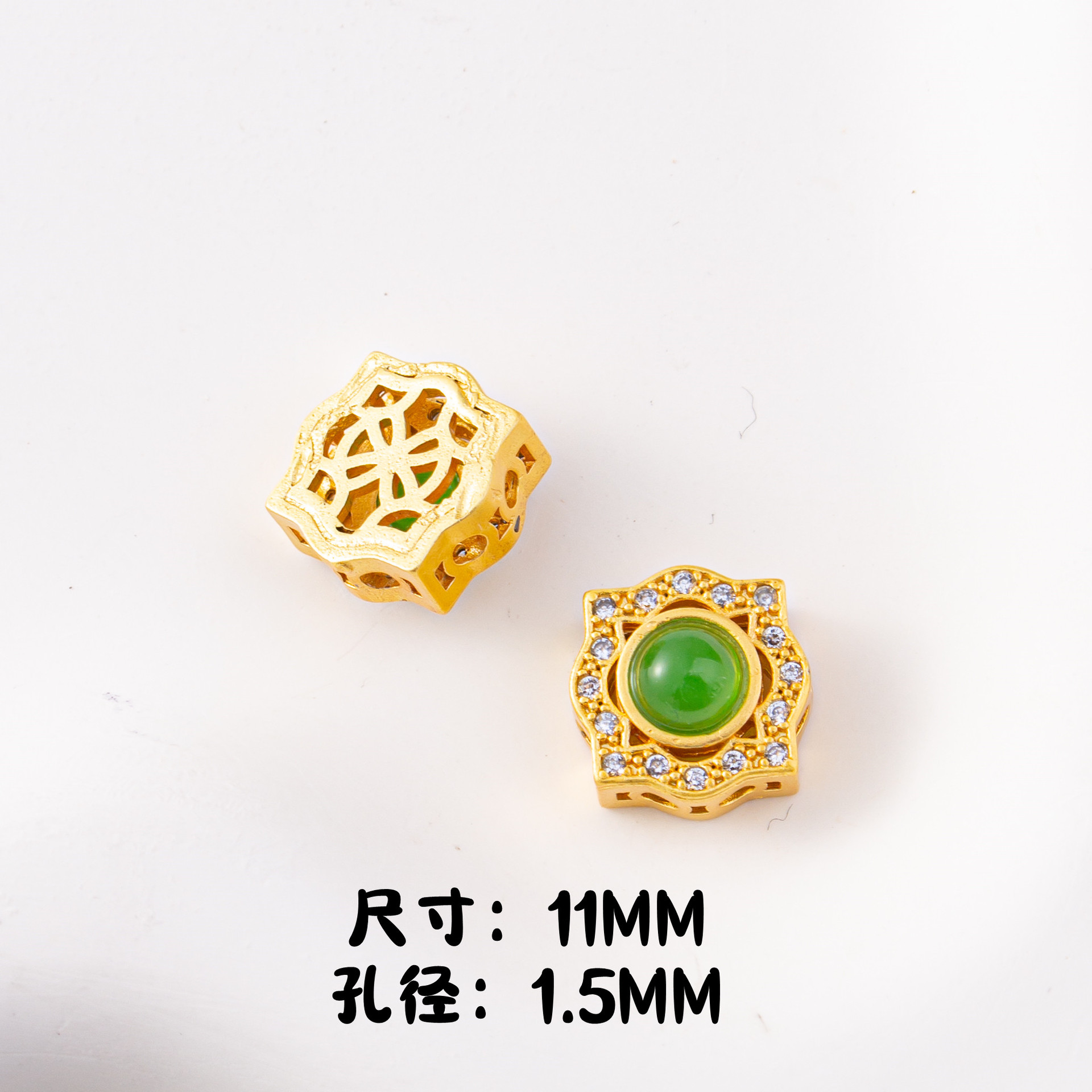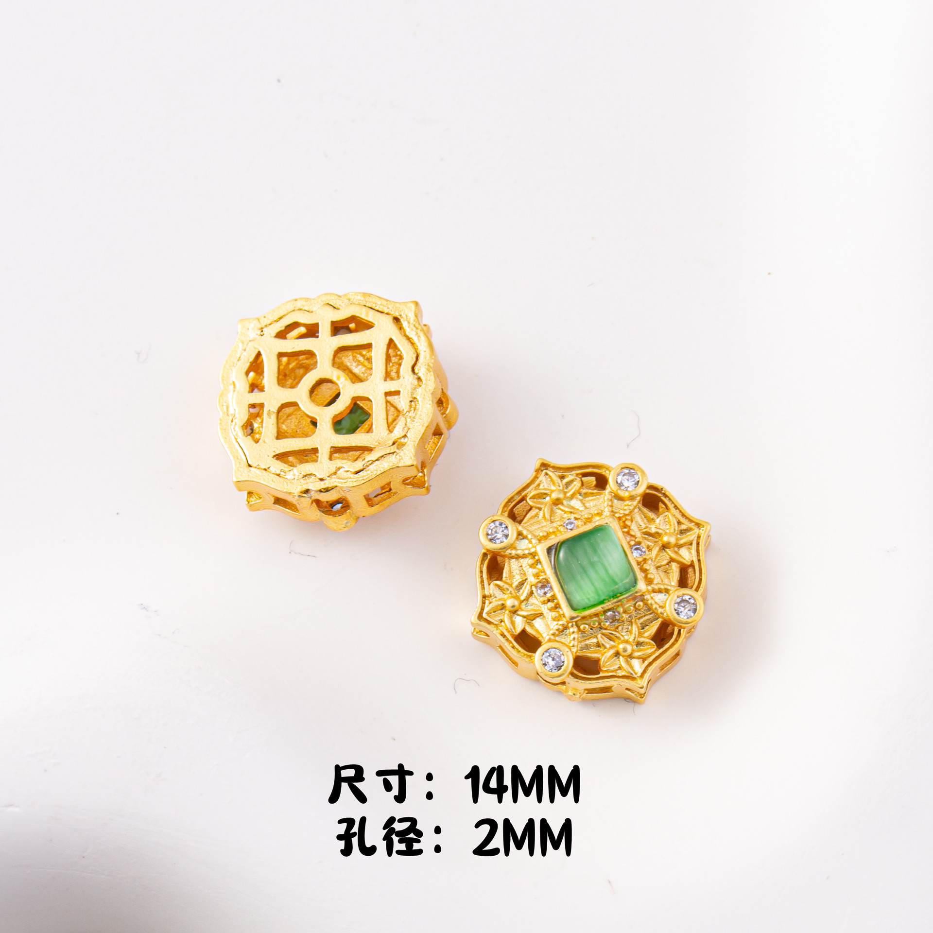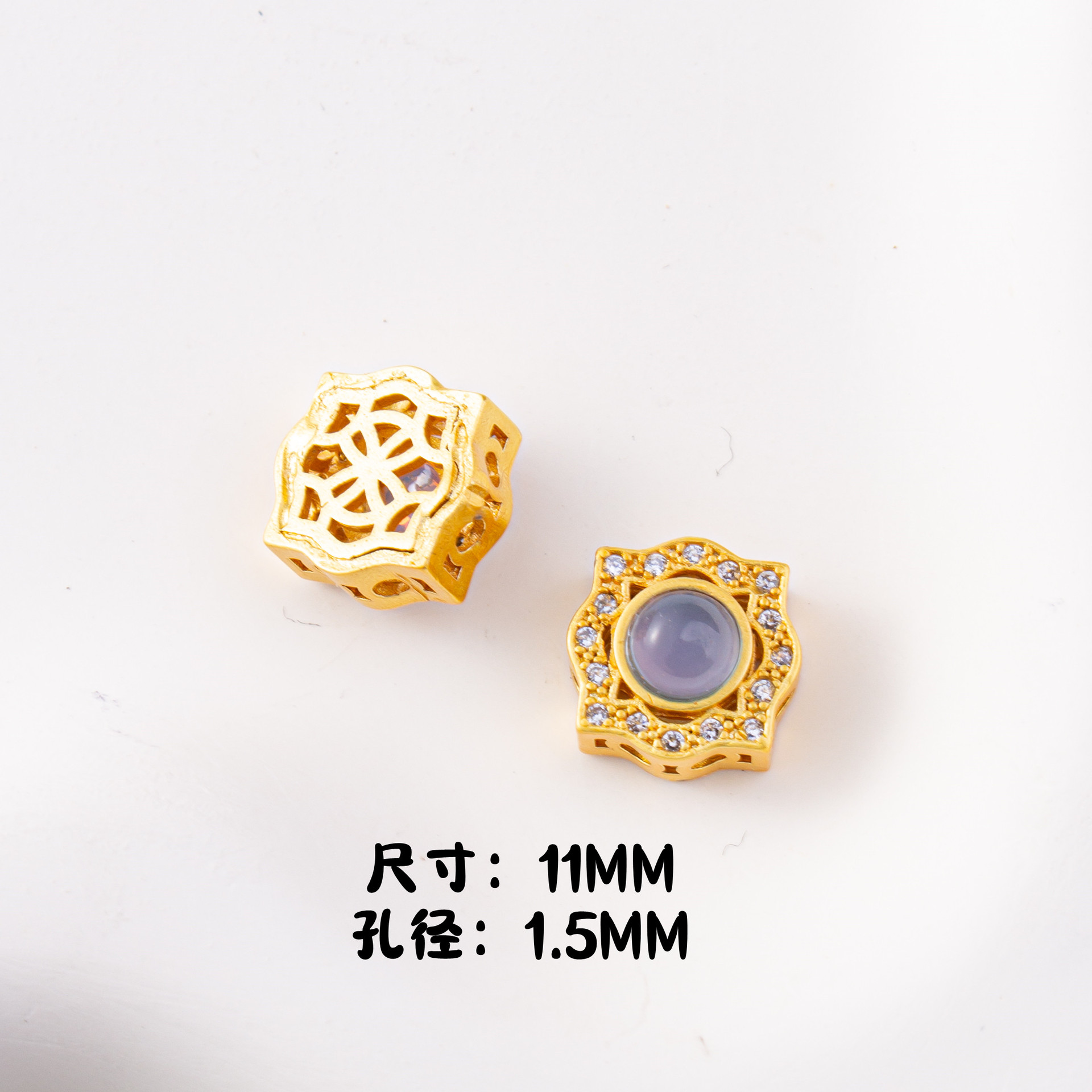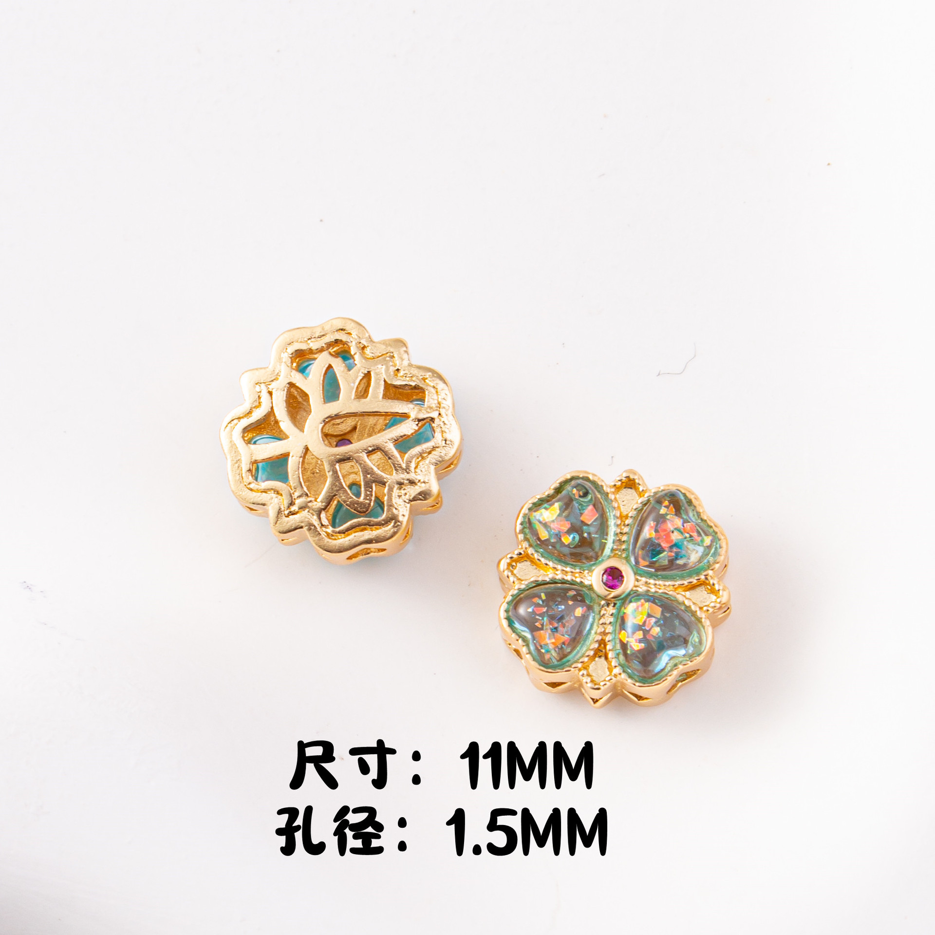 18K古法金戒面镶嵌锆石四叶草镂空隔珠串珠diy手链项链饰品配件