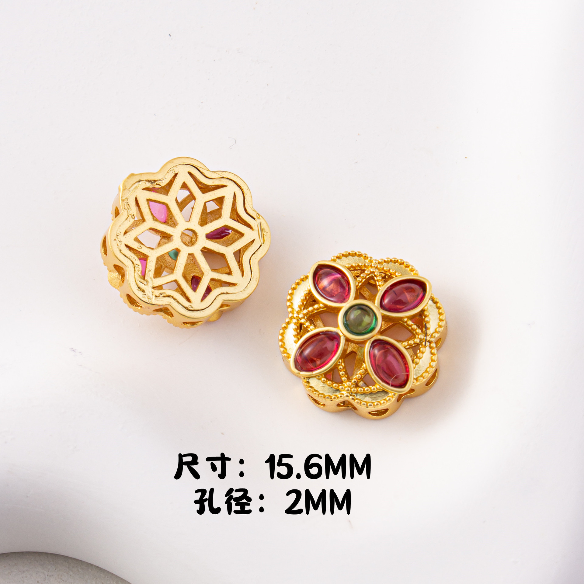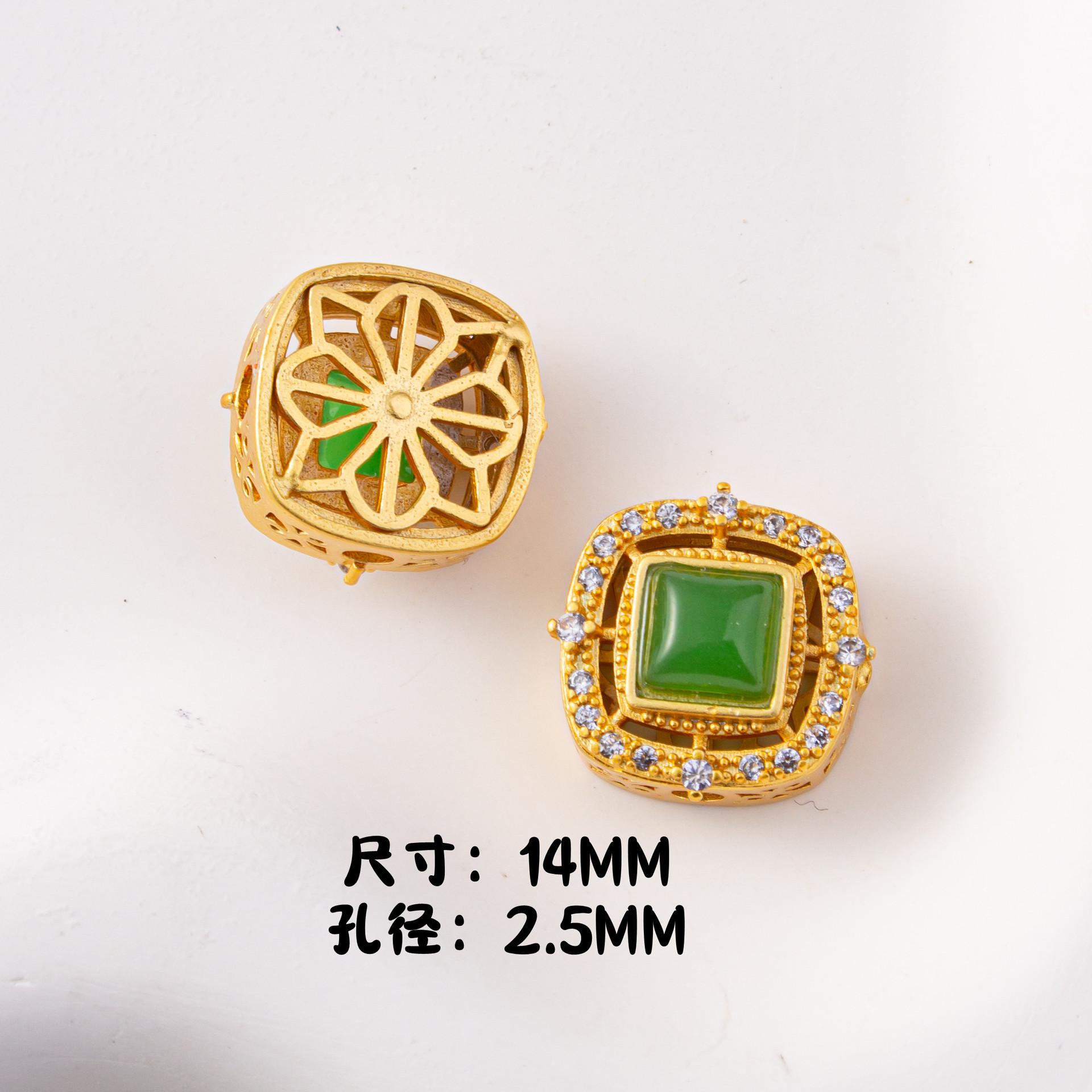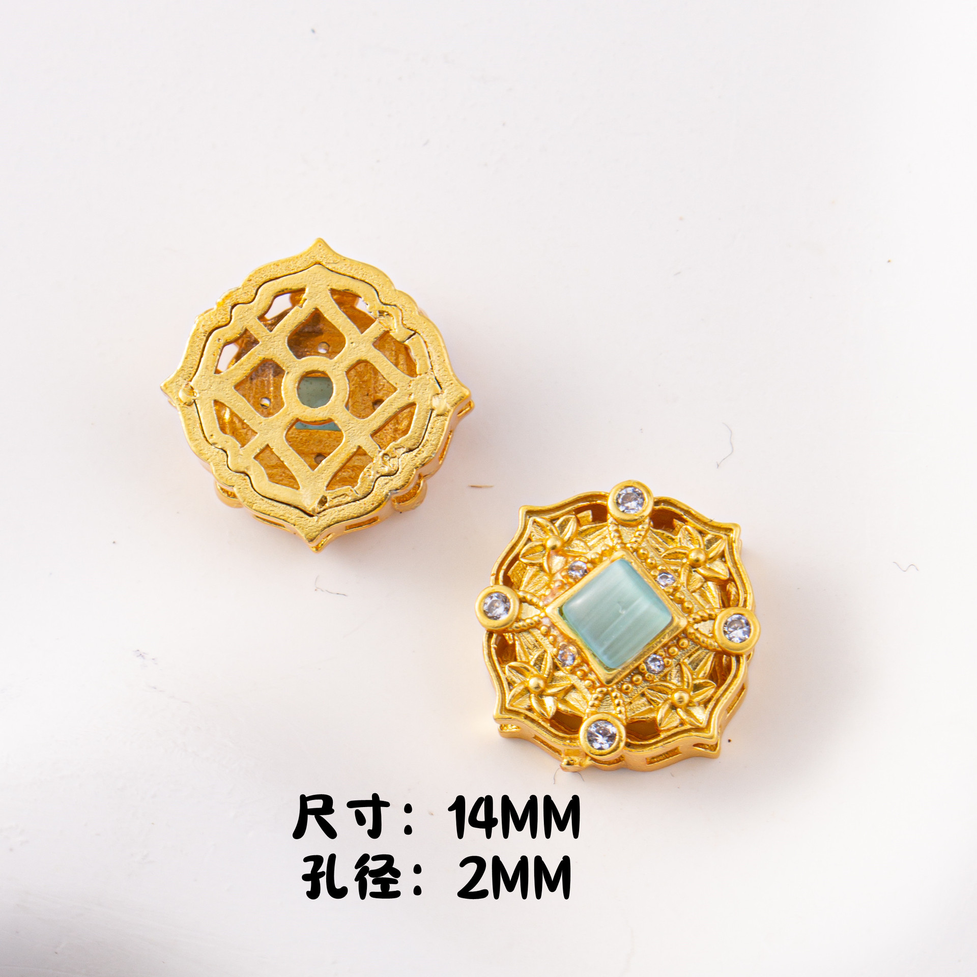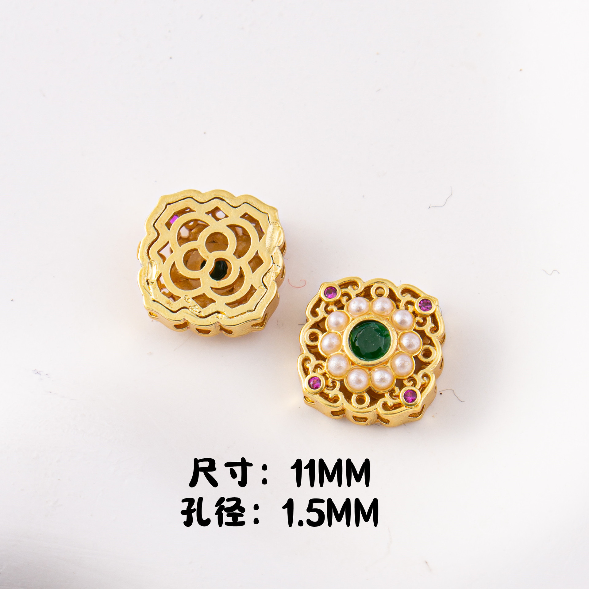 18K古法金戒面镶嵌锆石四叶草镂空隔珠串珠diy手链项链饰品配件