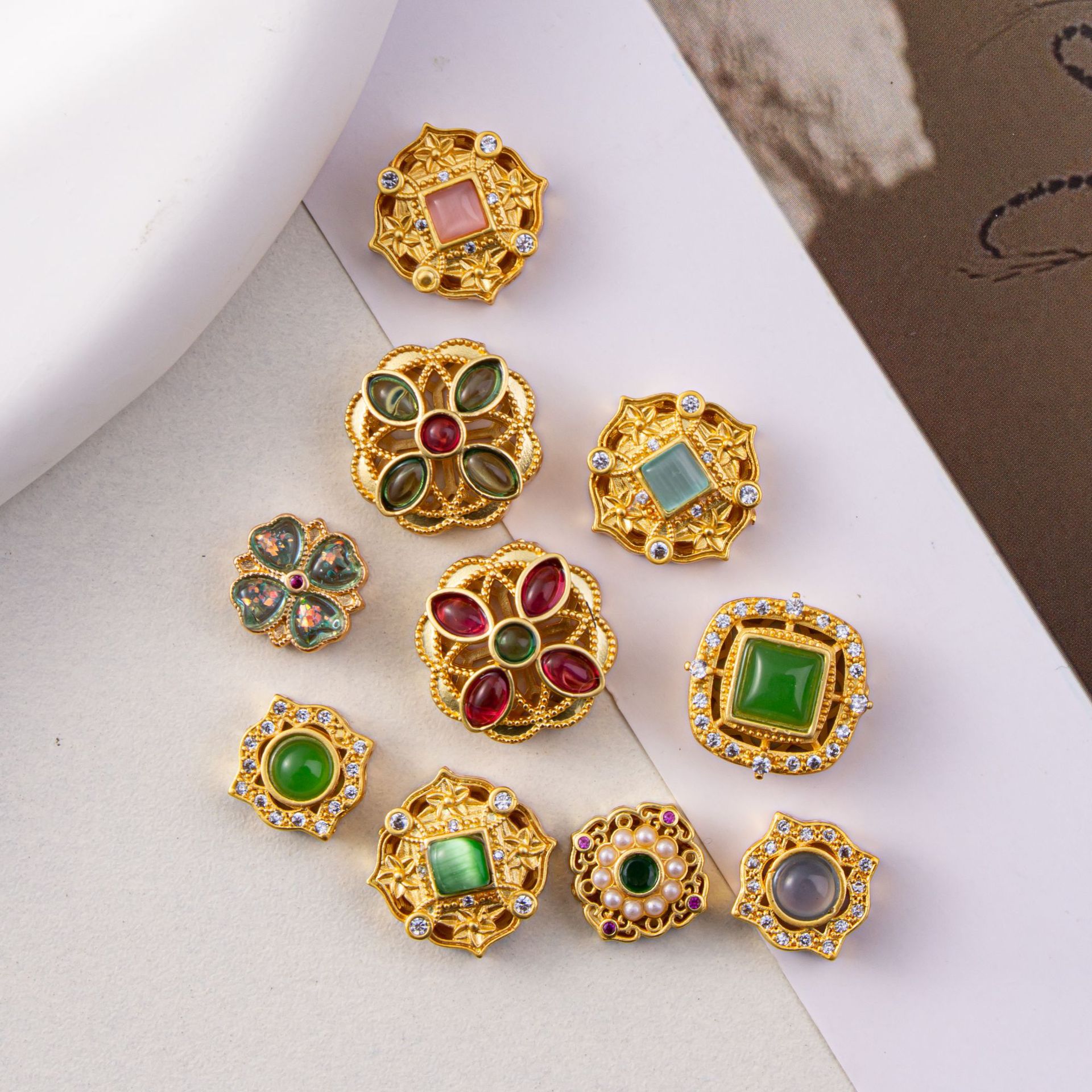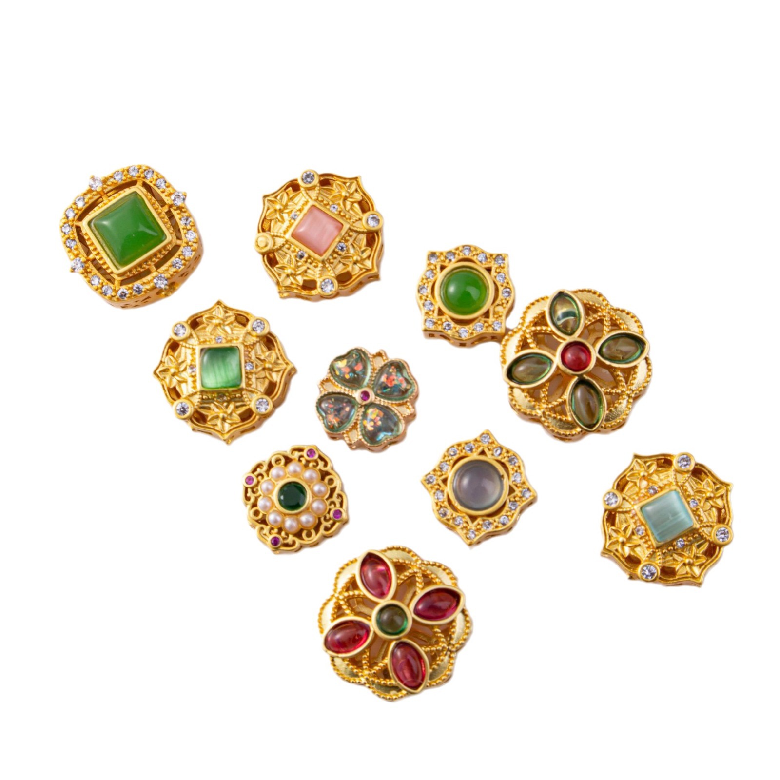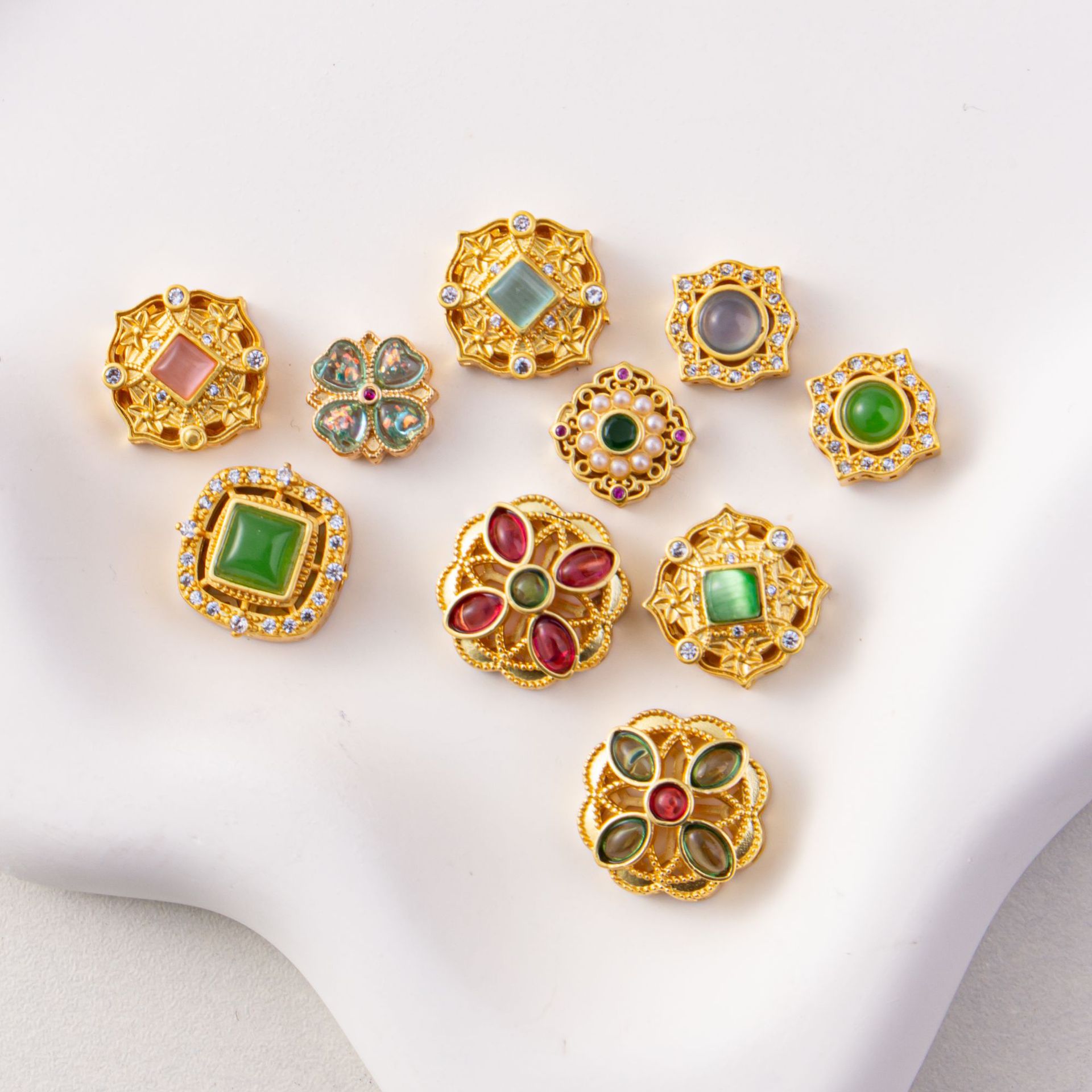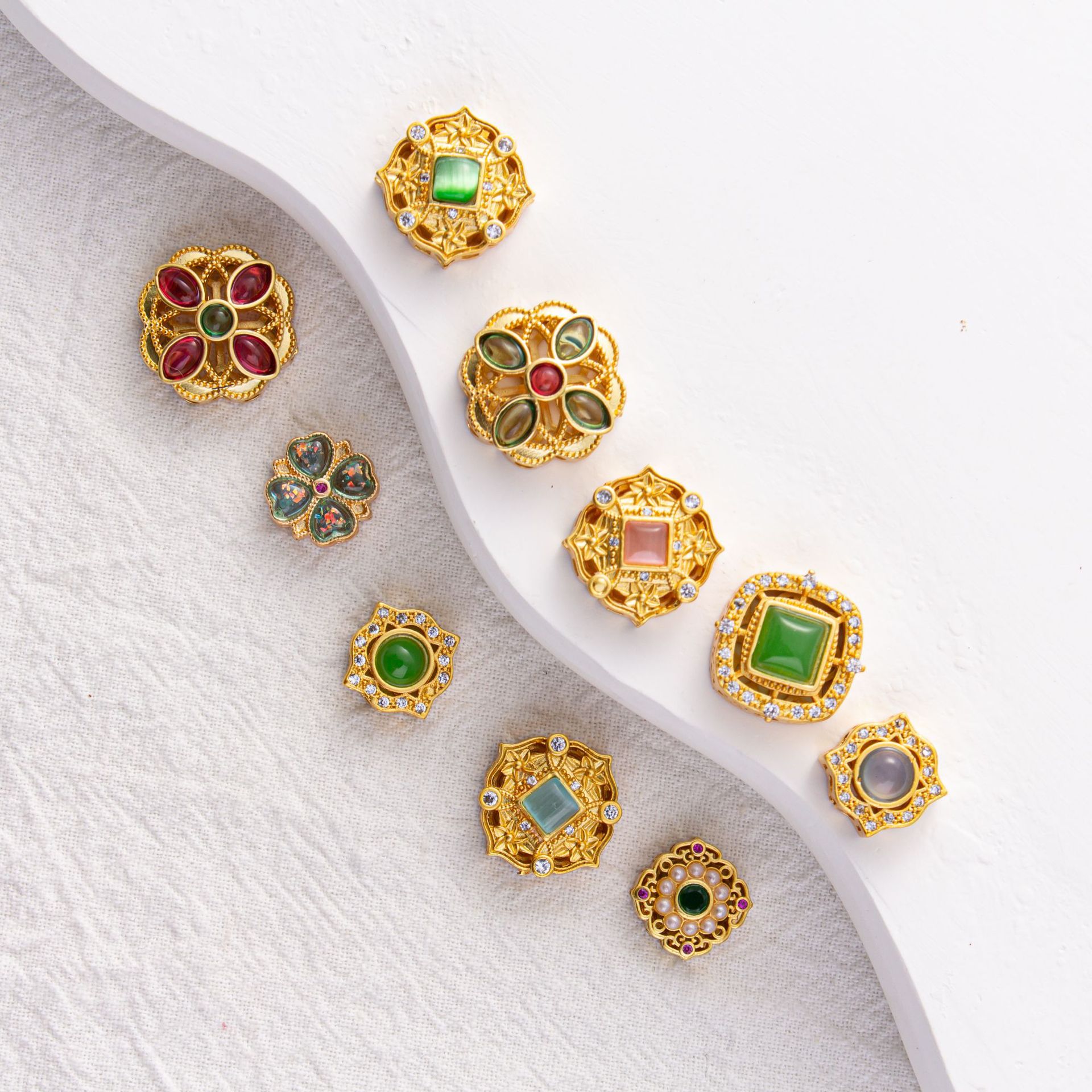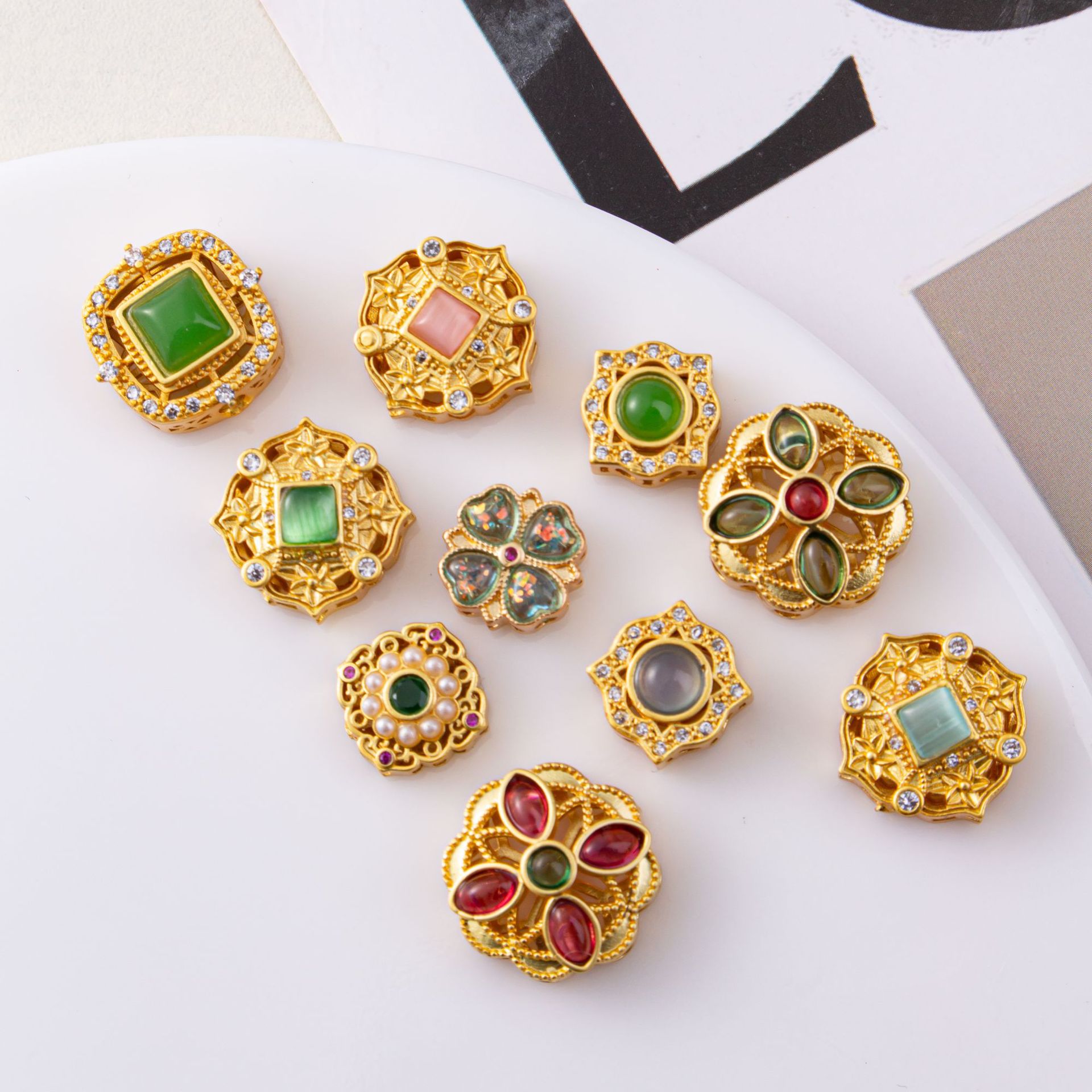 18K古法金戒面镶嵌锆石四叶草镂空隔珠串珠diy手链项链饰品配件