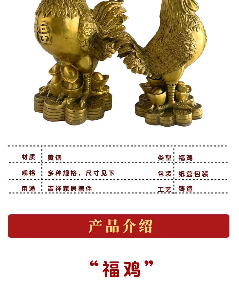 | 10 cm3-inch high copper chicken(高10cm3寸铜福鸡) | USD $4.55 | 46581 piece available |