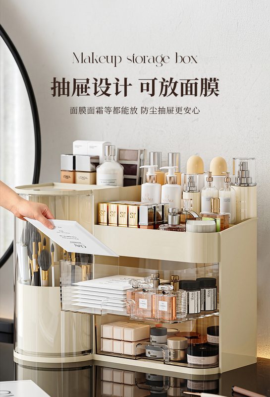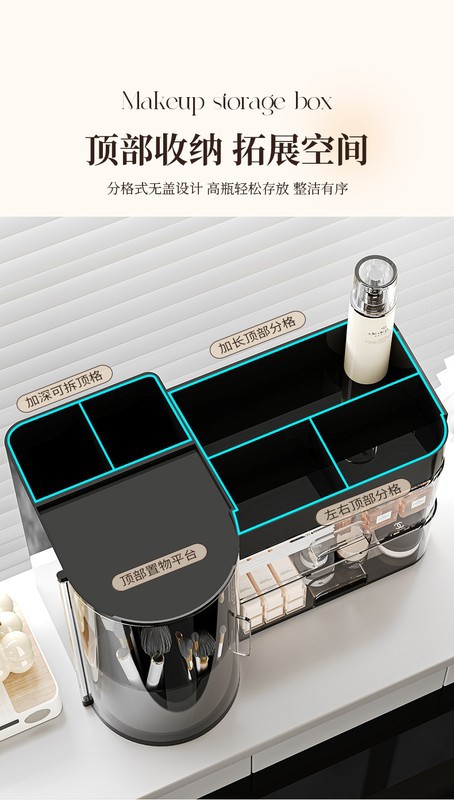 化妆品收纳盒桌面大容量梳妆台护肤品口红香水化妆刷置物架化妆箱