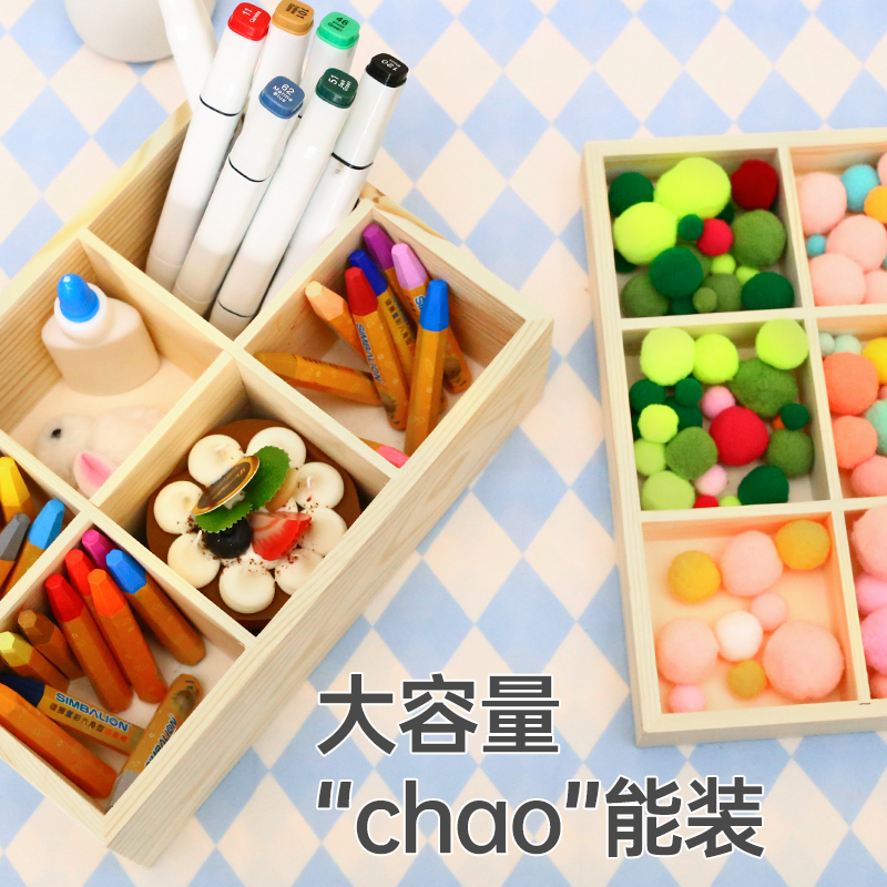 桌面格子木质纳长方形实木盒子办公幼儿园物九宫格多格美区