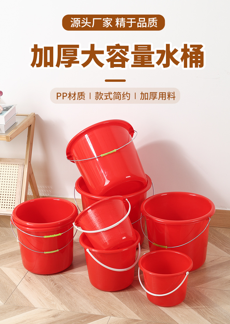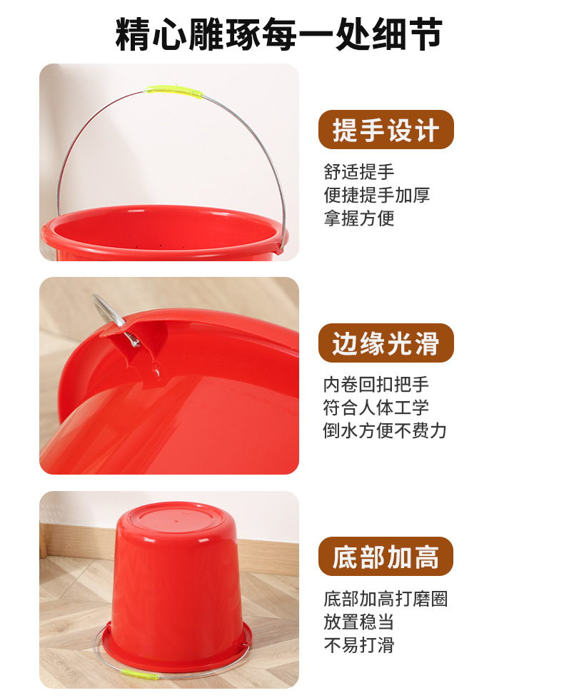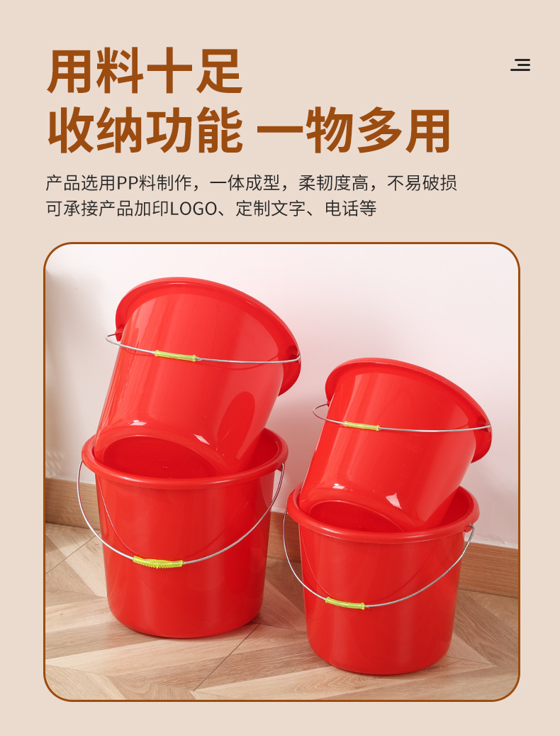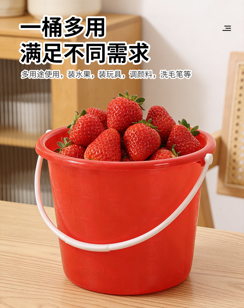 加厚塑料水桶大号清洁桶家用洗衣手提红水桶学生宿舍桶草莓采摘桶