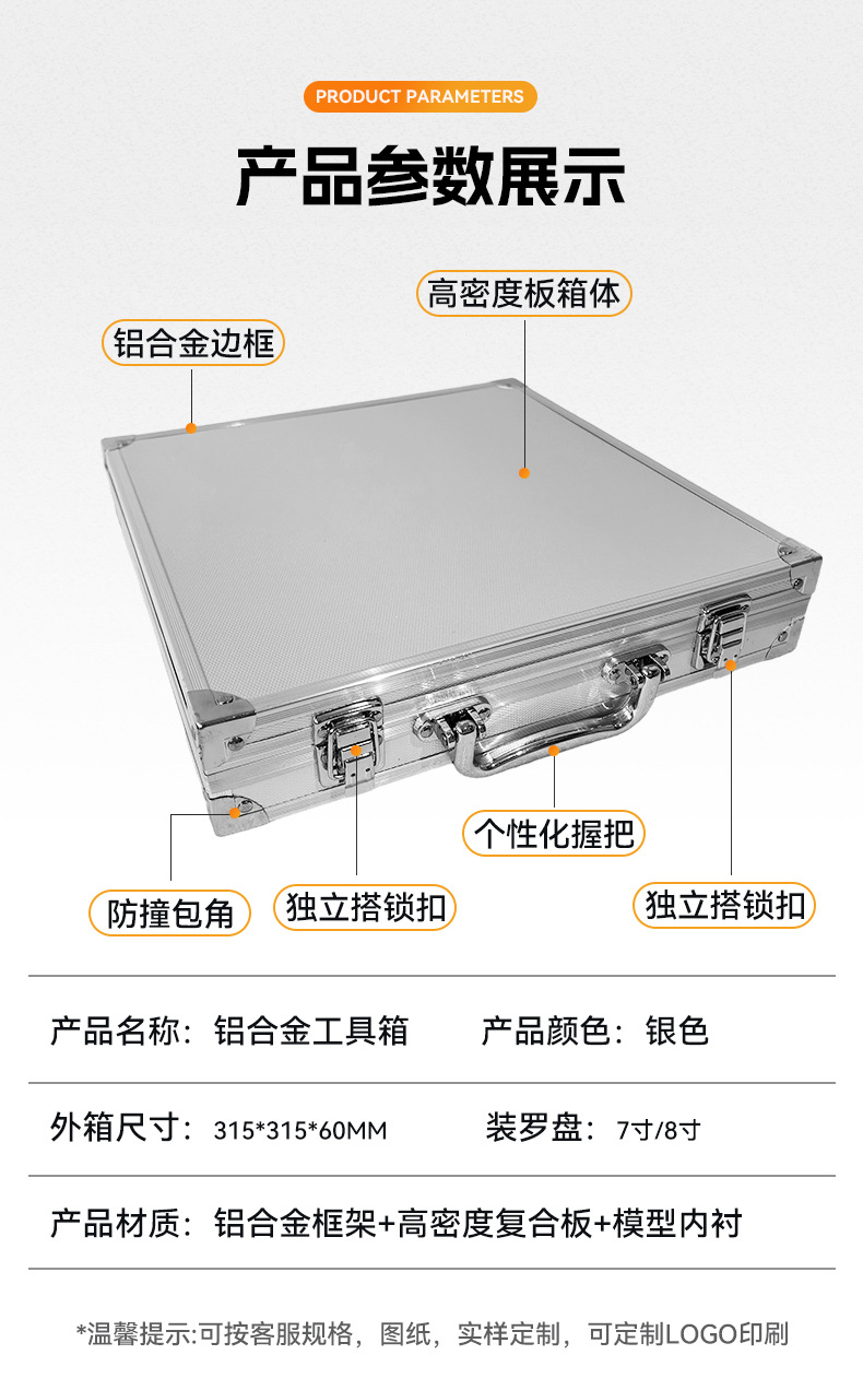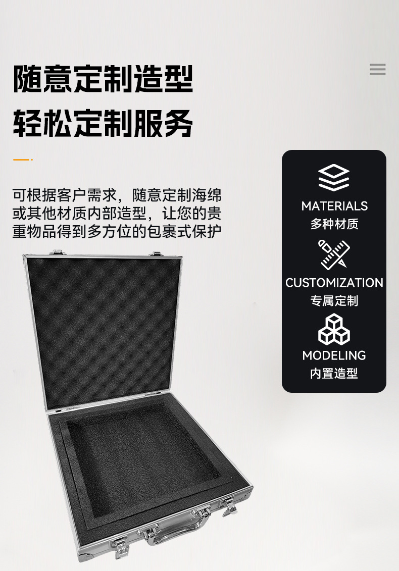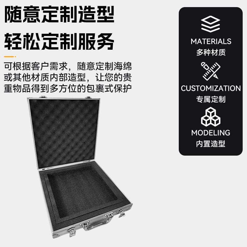 手提铝合金工具箱罗盘盒正方形收纳箱工具箱铝箱定制海绵EVA内衬