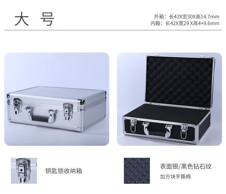 | 空箱-大号银 43*30*14.7cm 钥匙锁 | USD $15.48 | 3257 piece available |